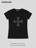 Camiseta de Manga Corta con Estampado de Cruz Retro Americano con Cintura Ajustada y Capa Base para Mujer