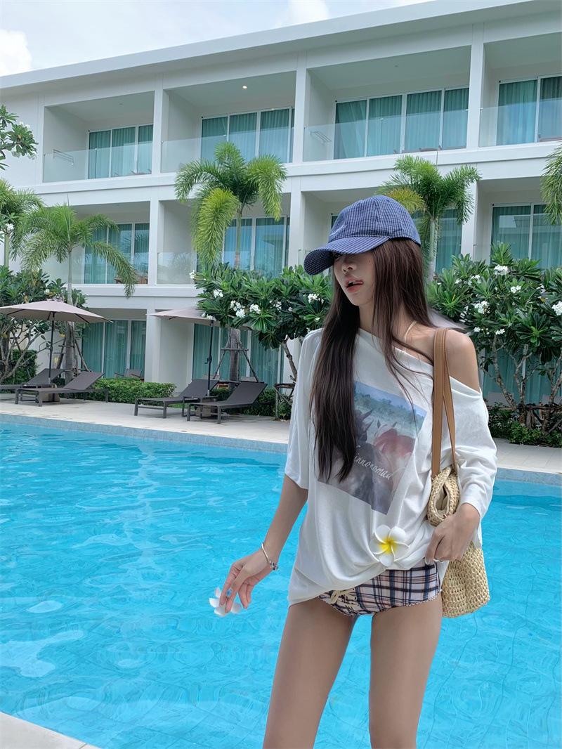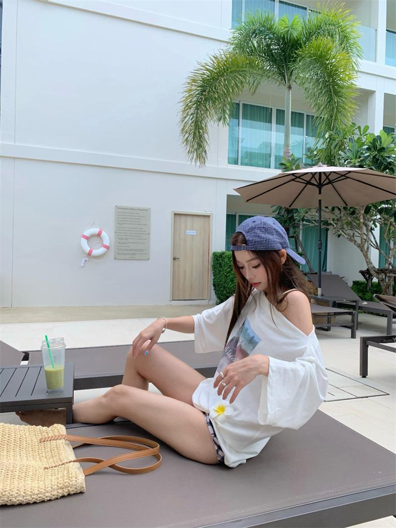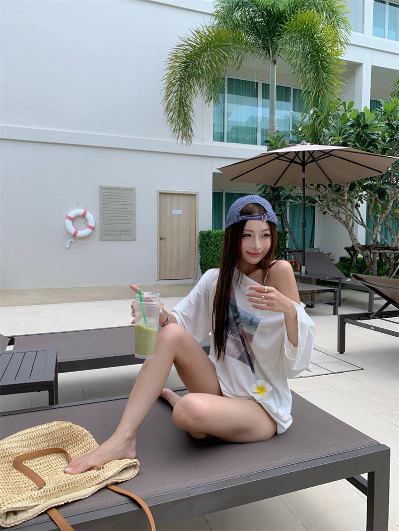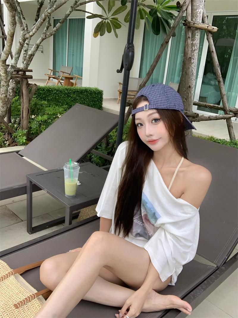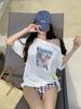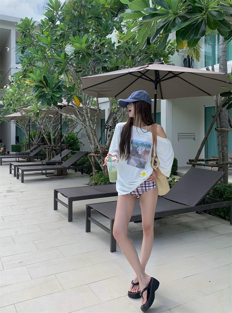 Camiseta Blanca de Manga Corta Estilo Perezoso para Mujer en Verano Largo Medio Holgada Aspecto Adelgazante Casual Relajada Estampada Hombro Inclinado Top