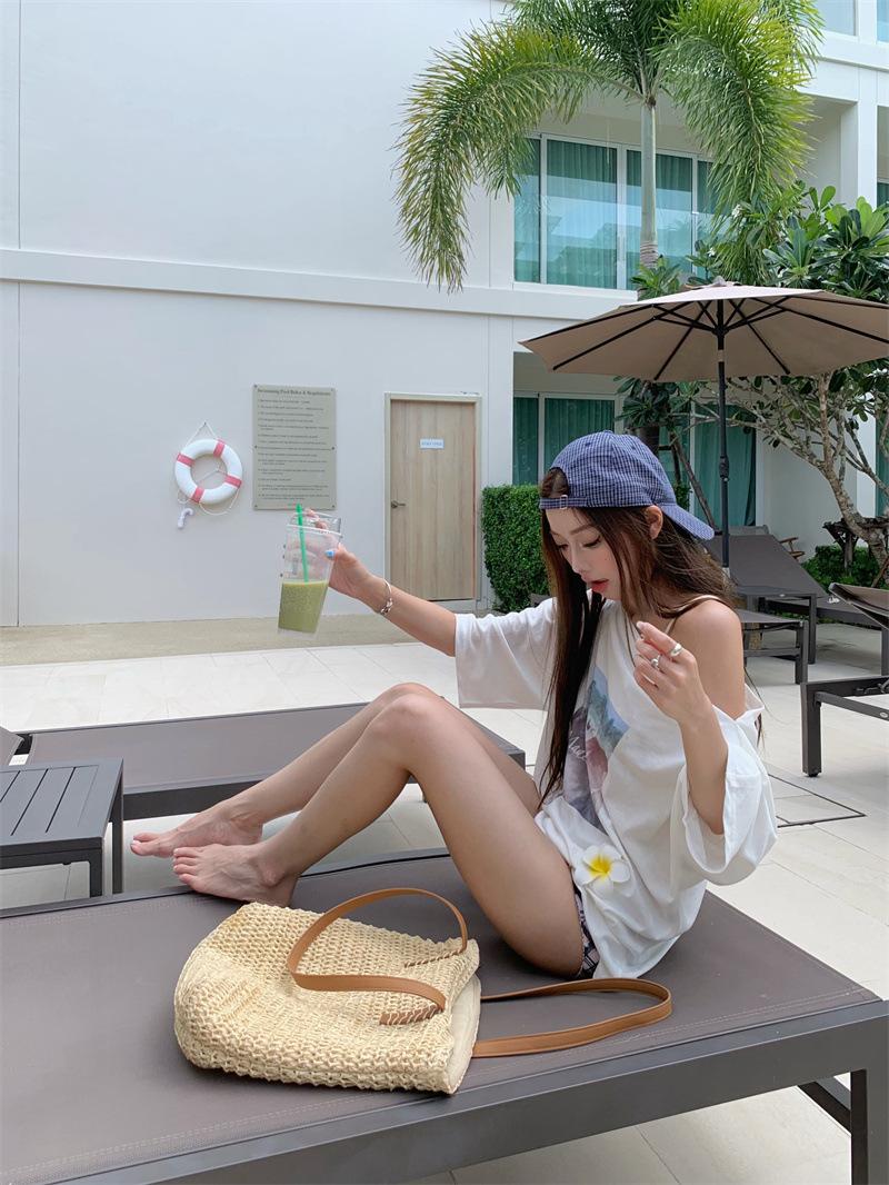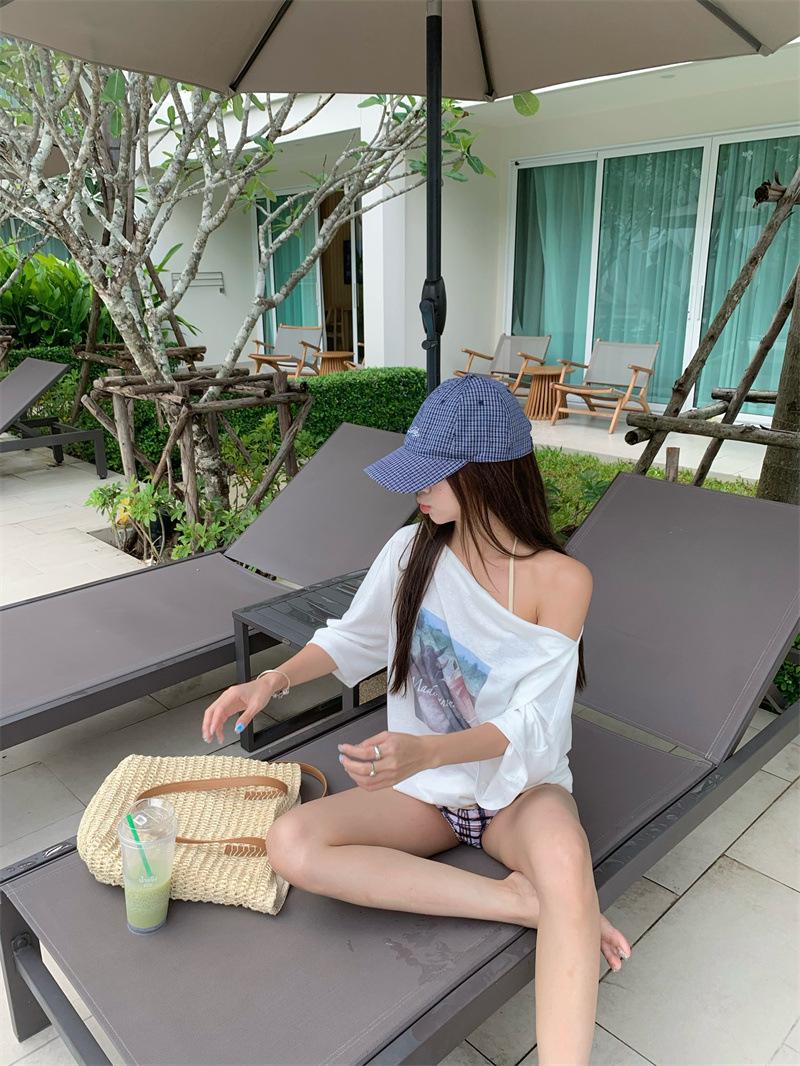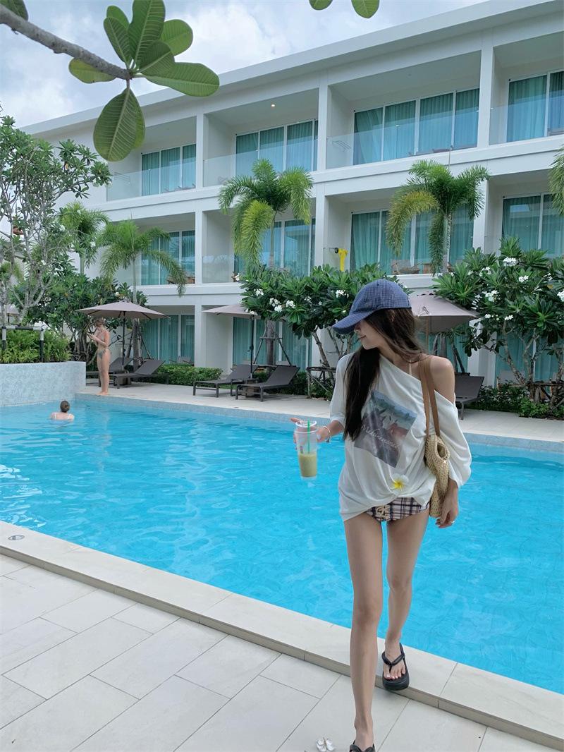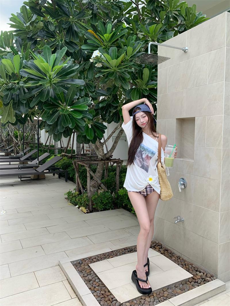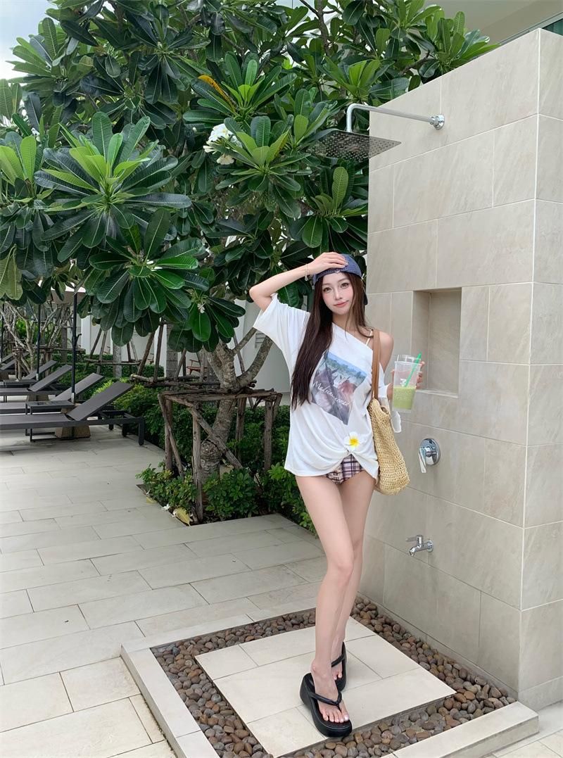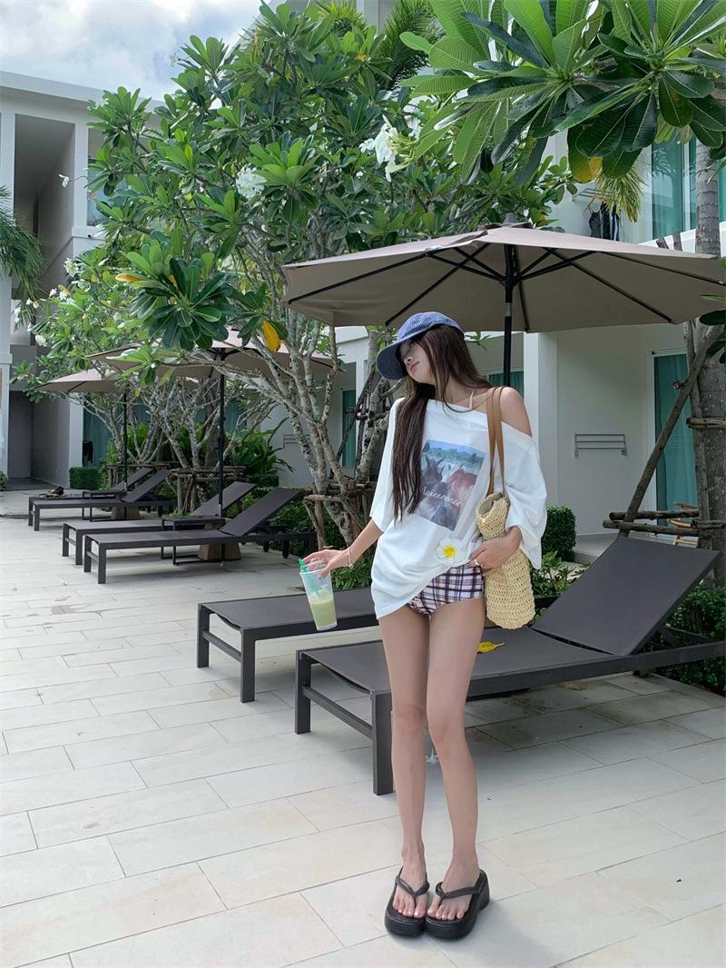 Camiseta Blanca de Manga Corta Estilo Perezoso para Mujer en Verano Largo Medio Holgada Aspecto Adelgazante Casual Relajada Estampada Hombro Inclinado Top