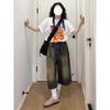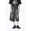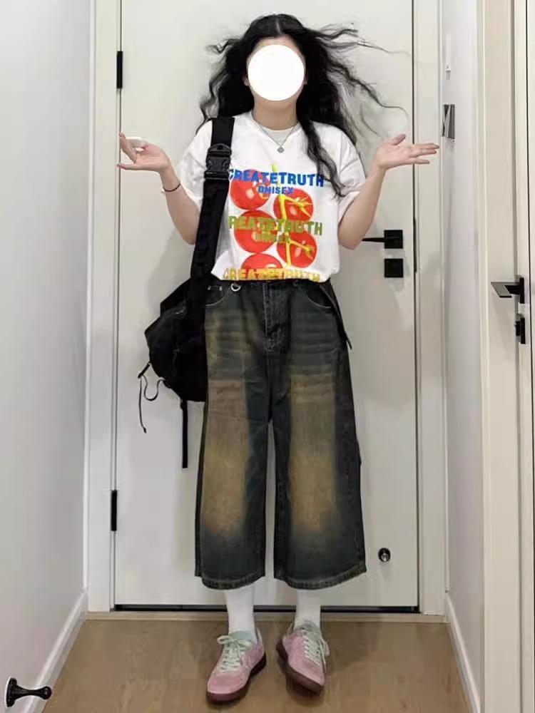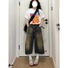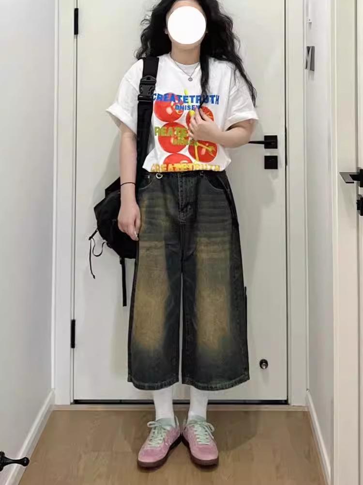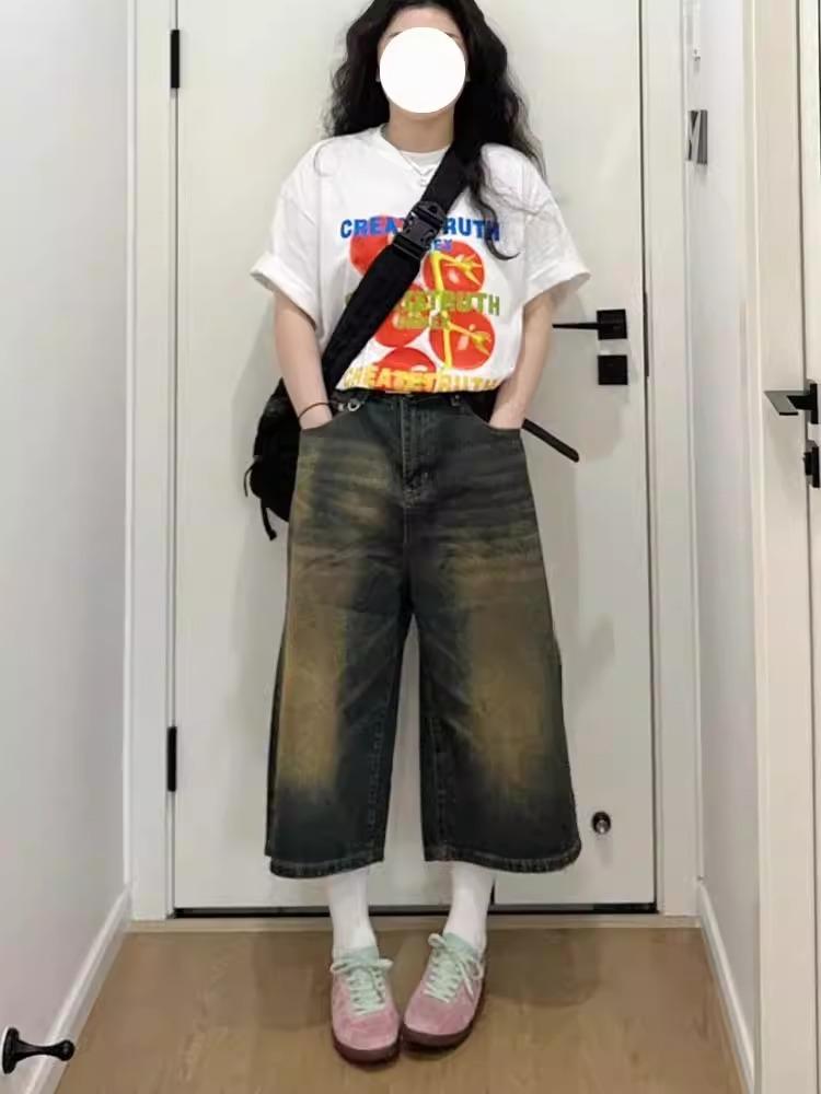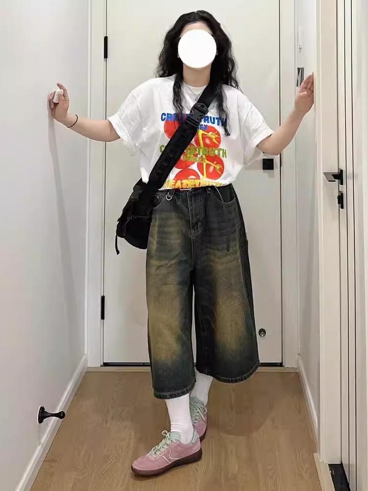 Jeans Capri Americanos Retro Desgastados de Pierna Ancha para Mujer Talla Grande 2025 Verano Nuevo Fat mm Shorts de Mezclilla Rectos