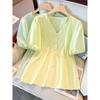 Talla grande Estilo francés Camisa blanca de lunares tipo polo para mujer Verano Casual Encaje de alta gama Camisa para chica gordita Cubre la carne Adelgazante Top
