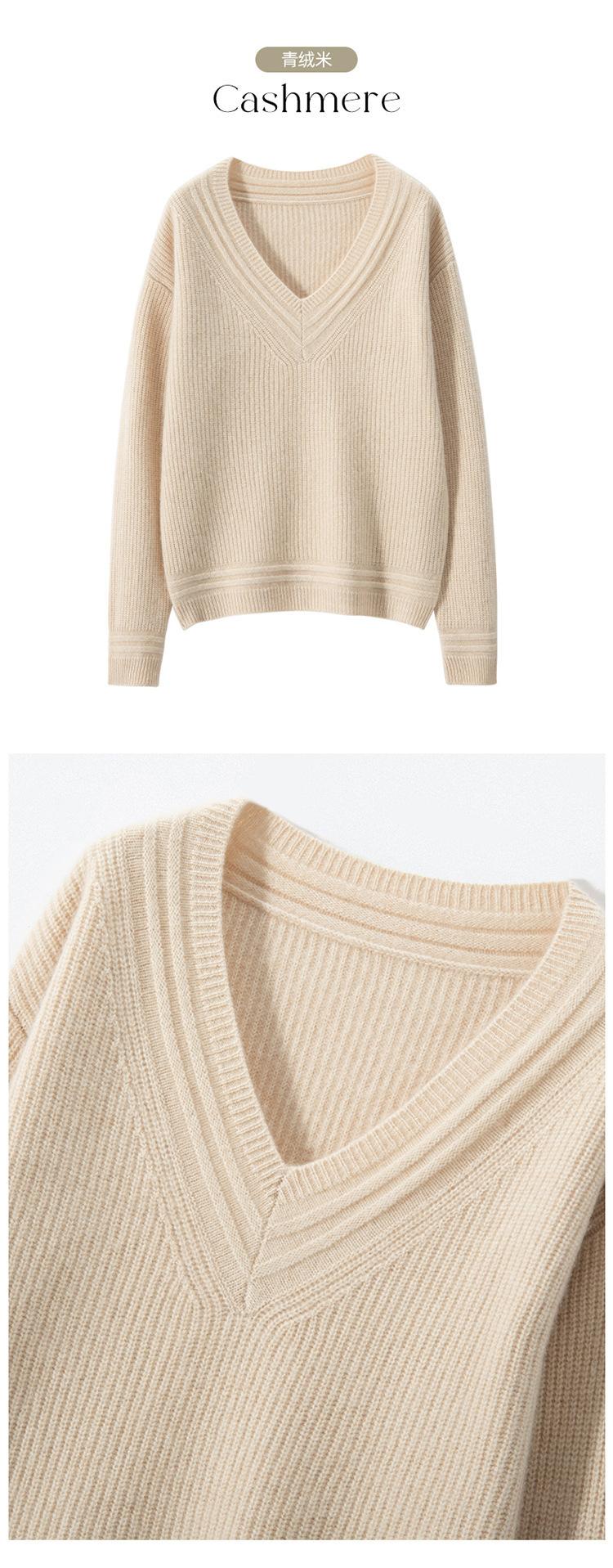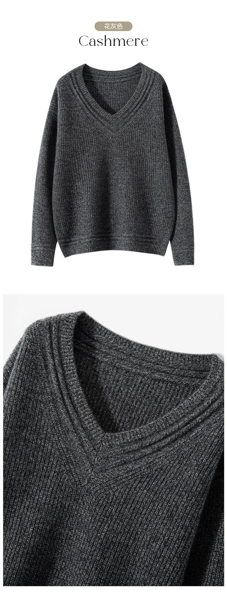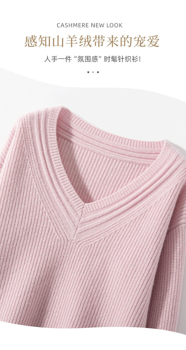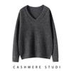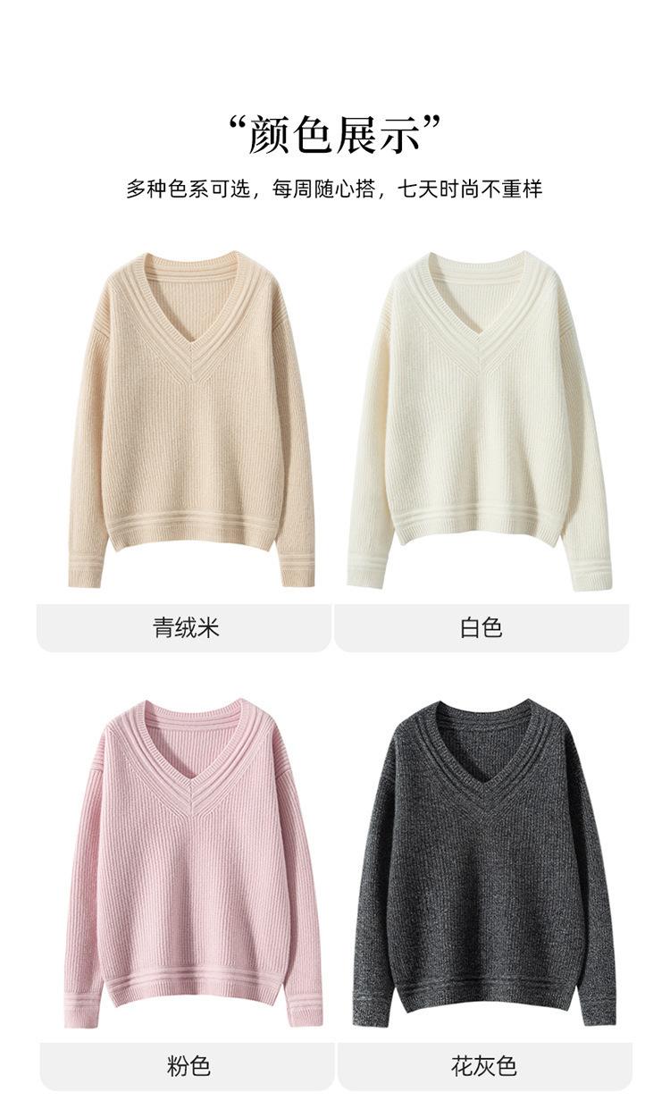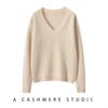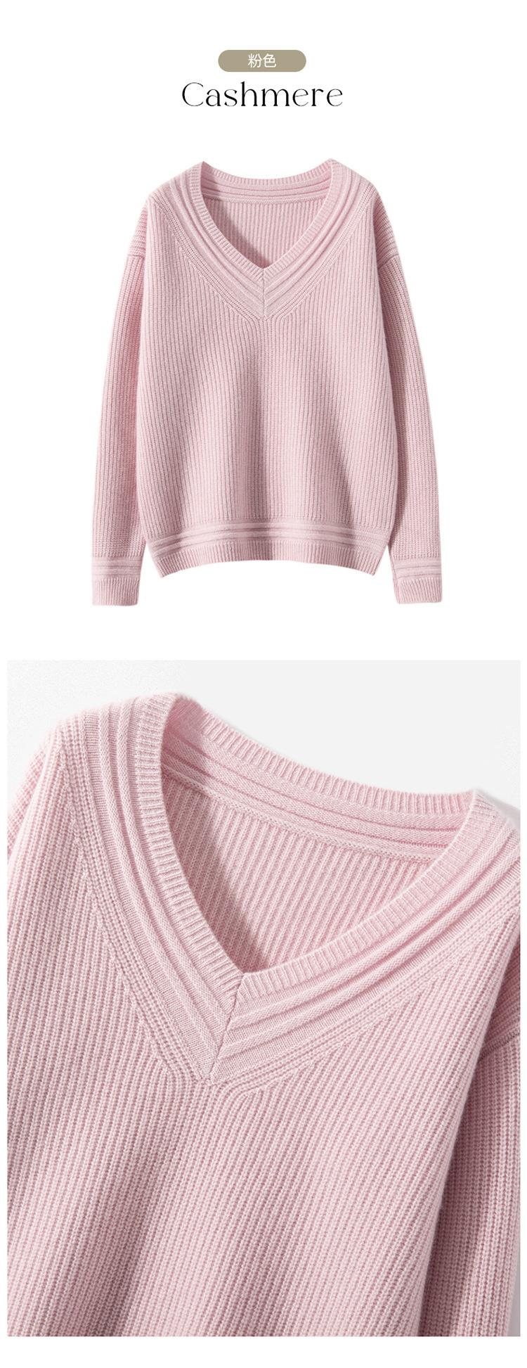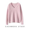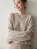 Suéter de Cachemira de Color Sólido Nuevo Otoño/Invierno para Mujer Camiseta Base Tejida Holgada Adelgazante Gruesa Cuello en V Jersey Manga Larga