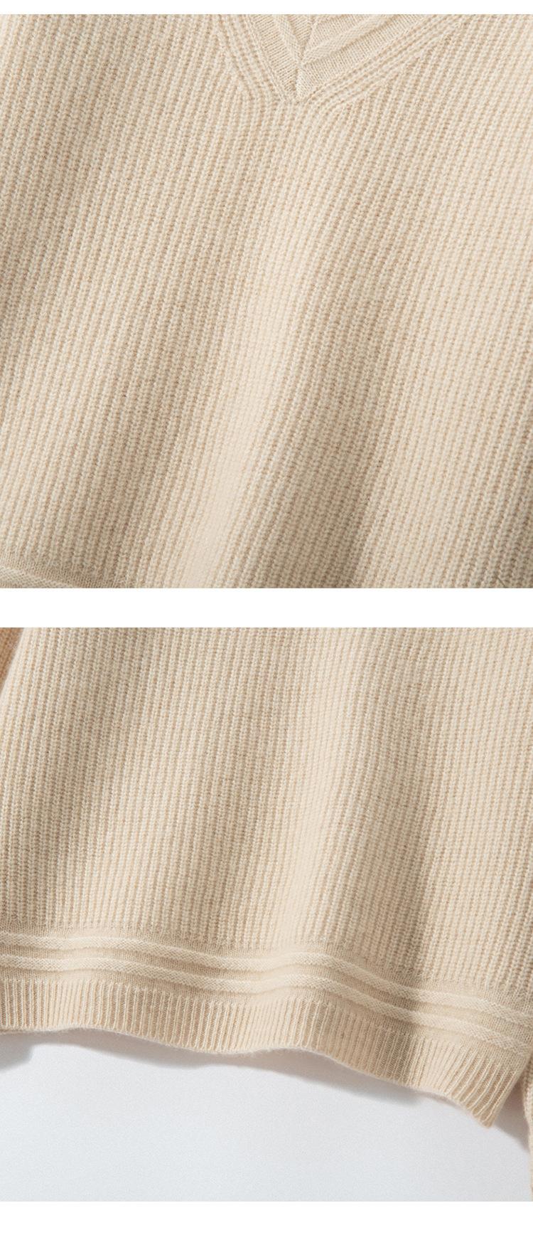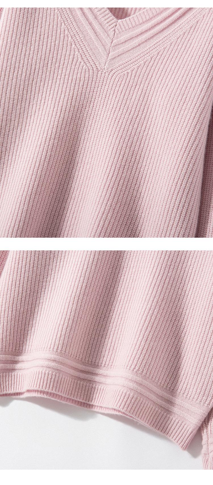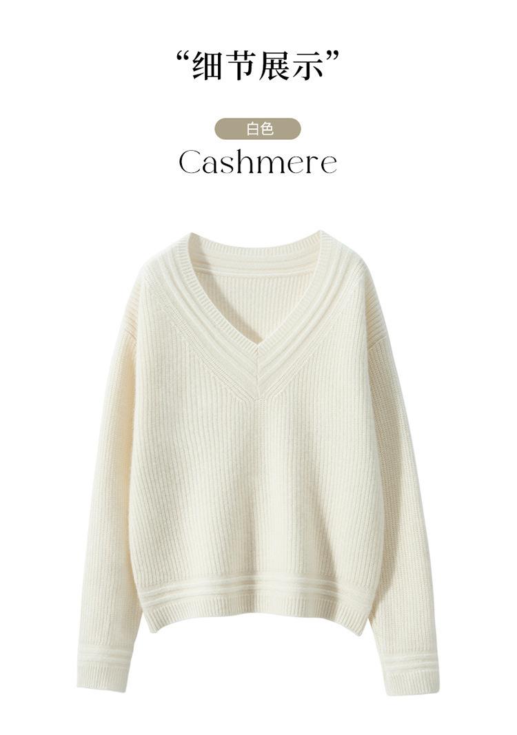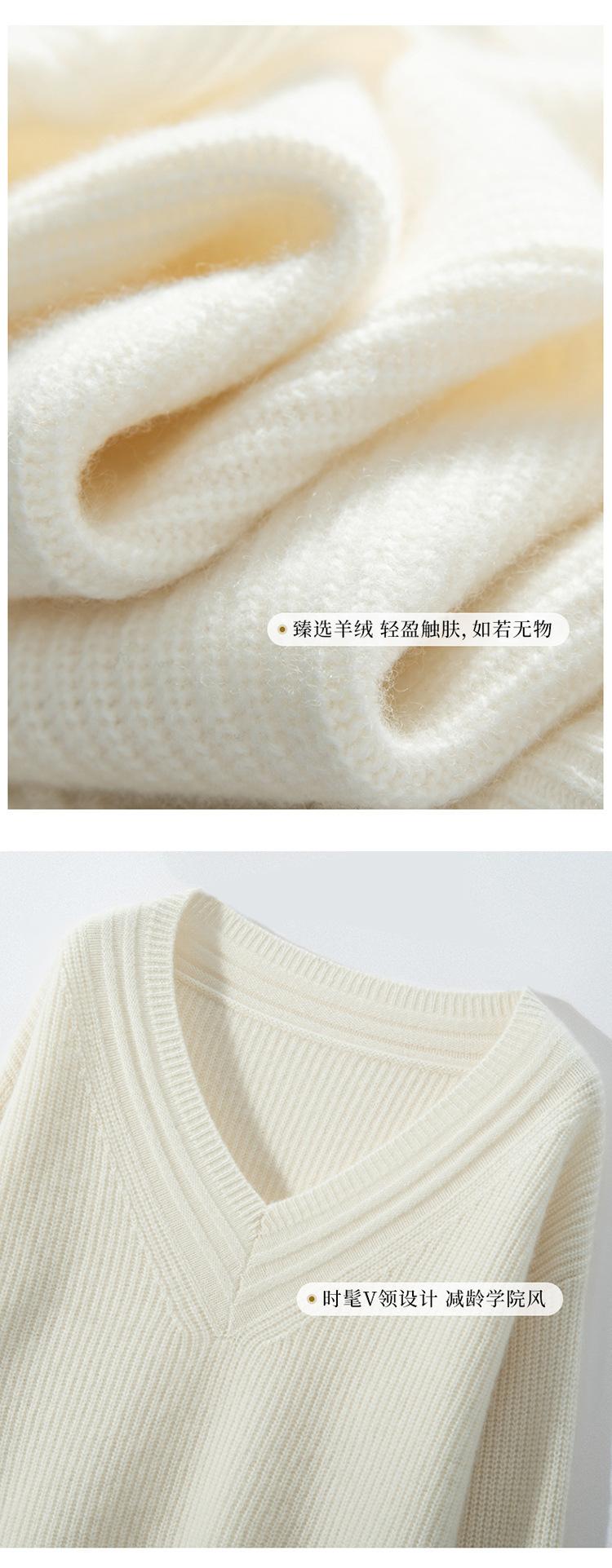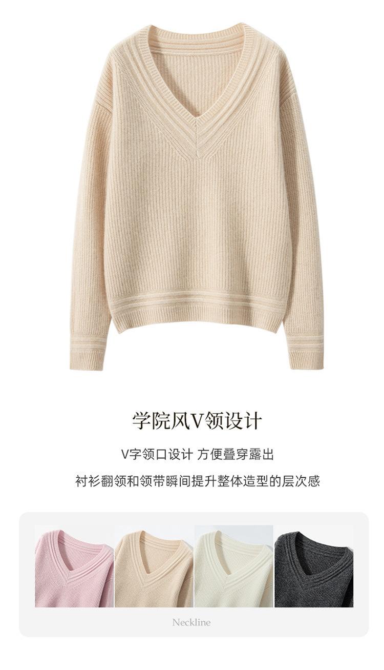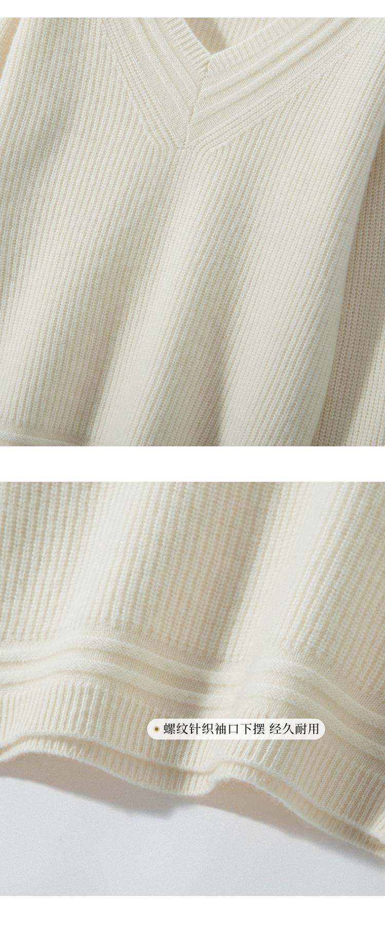 Suéter de Cachemira de Color Sólido Nuevo Otoño/Invierno para Mujer Camiseta Base Tejida Holgada Adelgazante Gruesa Cuello en V Jersey Manga Larga