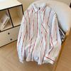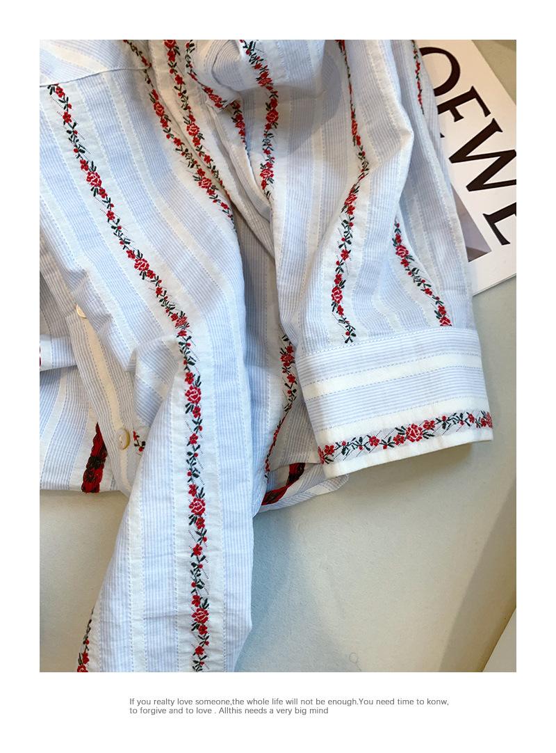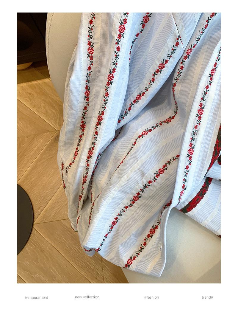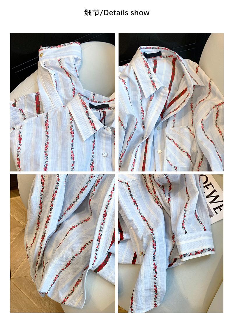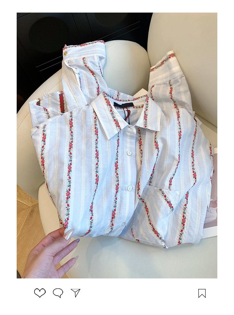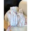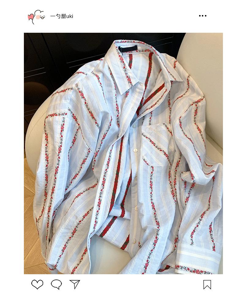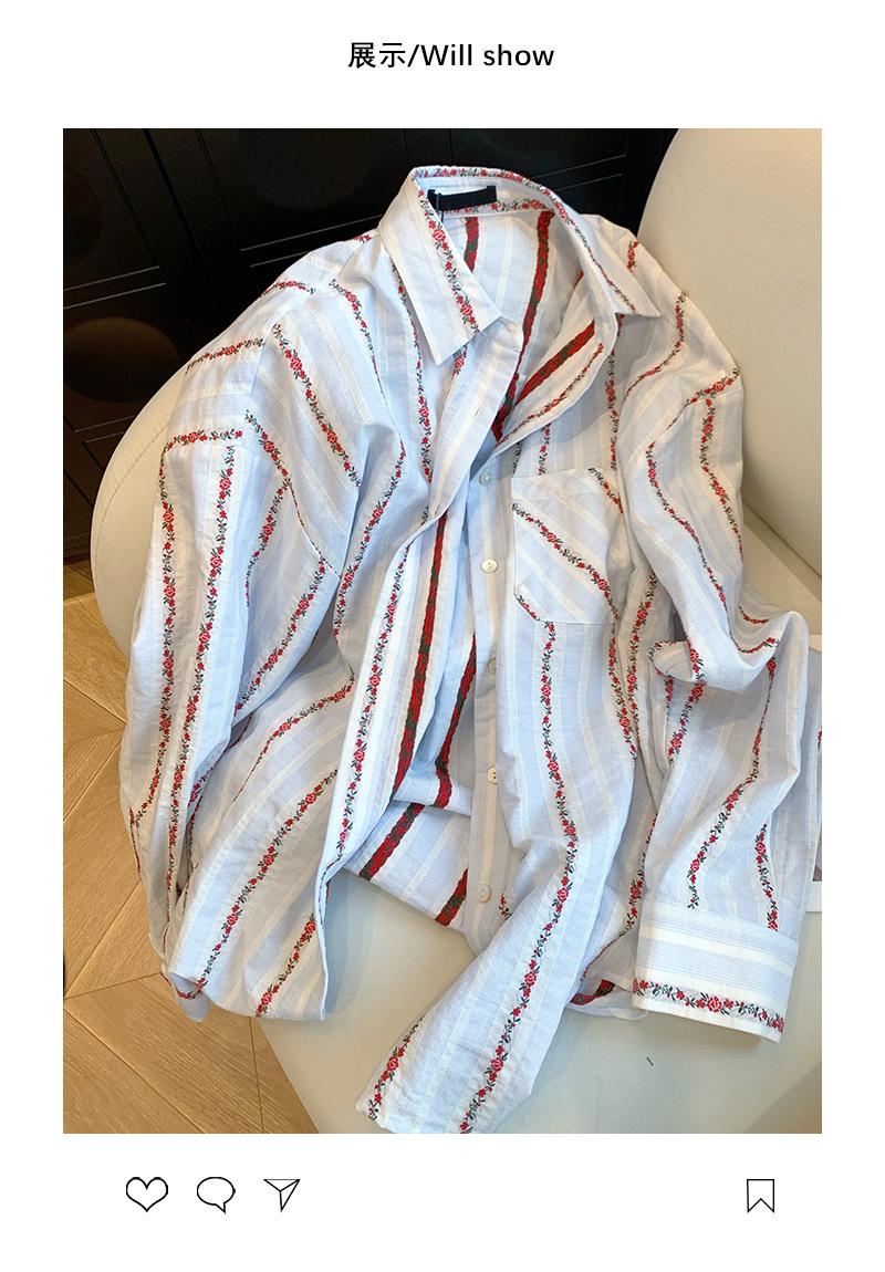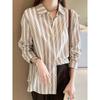 Camisa de manga larga con cuello polo floral a rayas con sentido del diseño para mujer, nueva moda casual versátil con temperamento para primavera y otoño