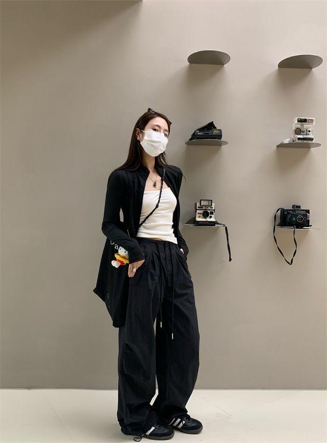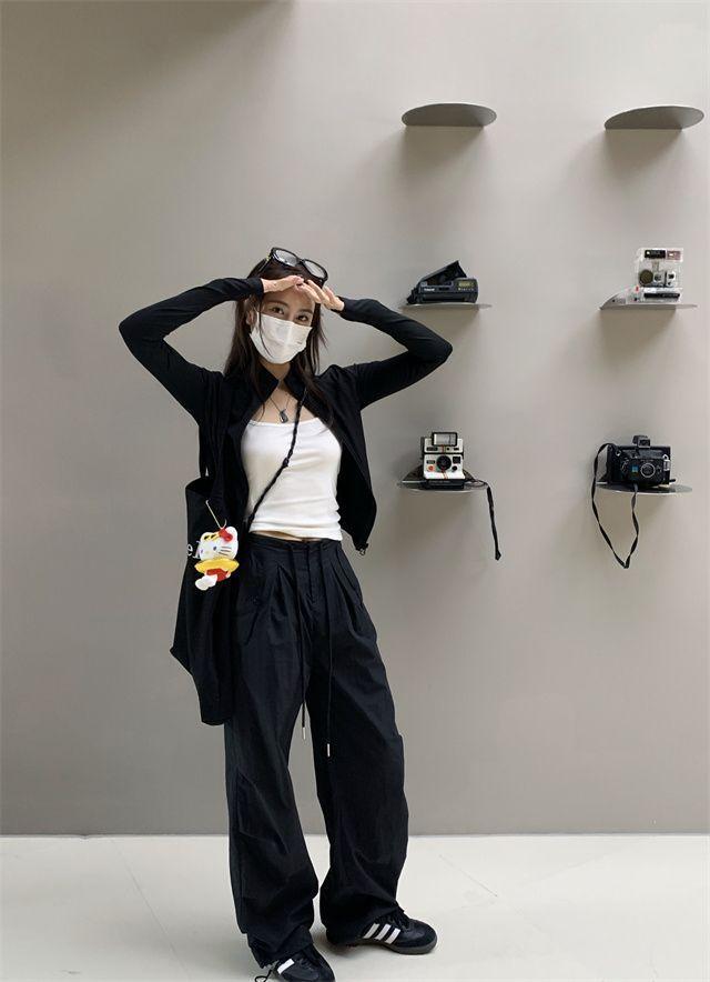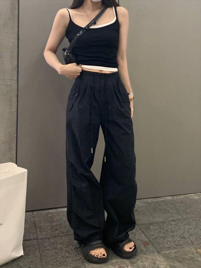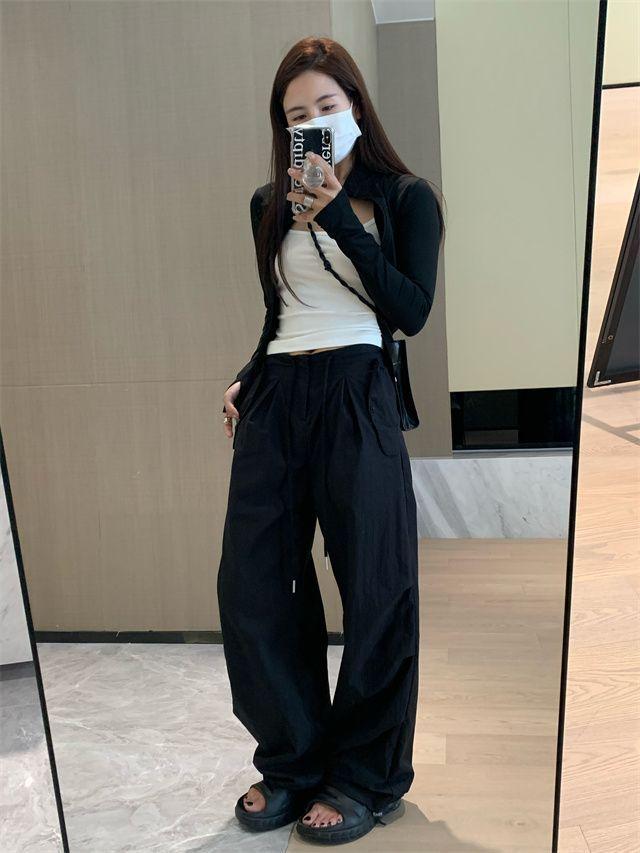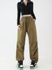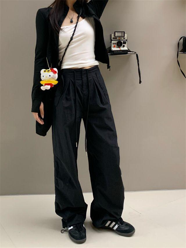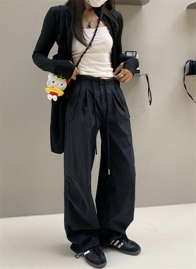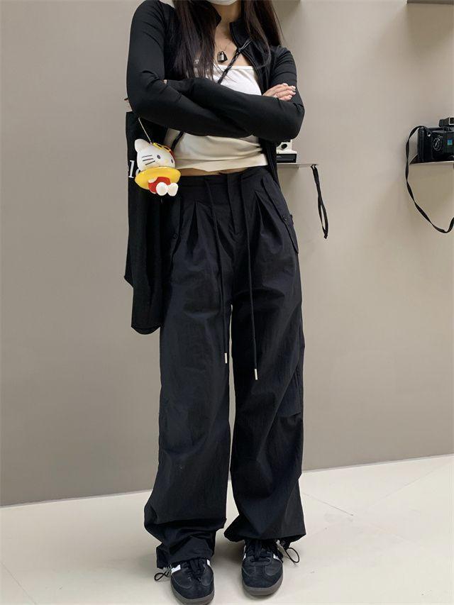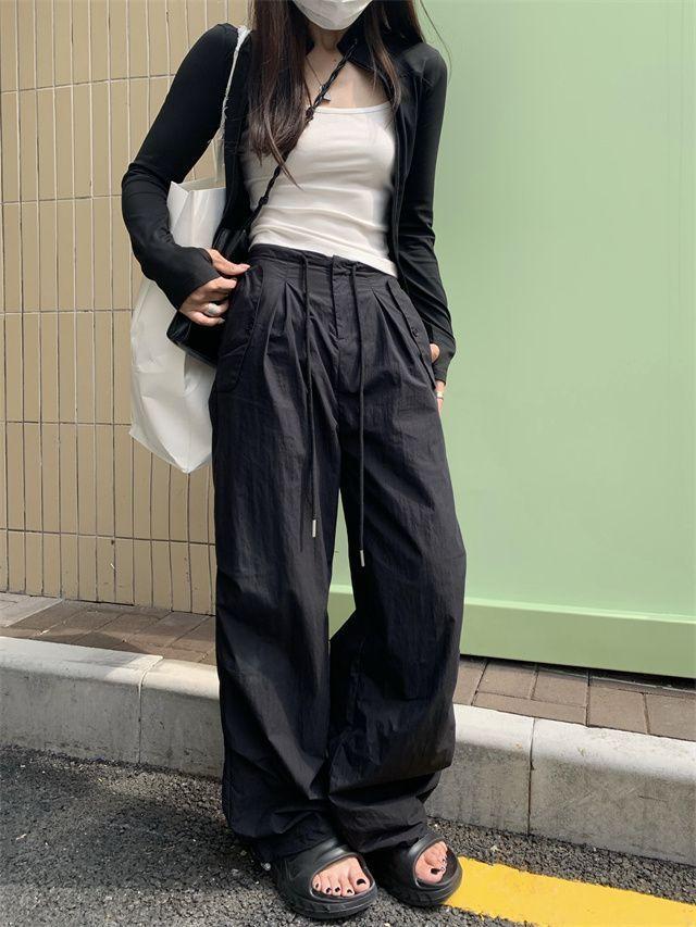 Pantalones Cargo de Verano 2025 Estilo Americano Nuevo para Mujer Cintura Alta Casual Paracaídas Cordón Ajustable Dos Formas de Usar Rectos Largos hasta el Piso
