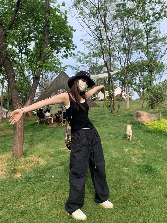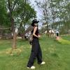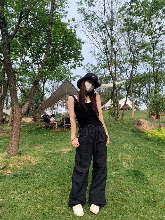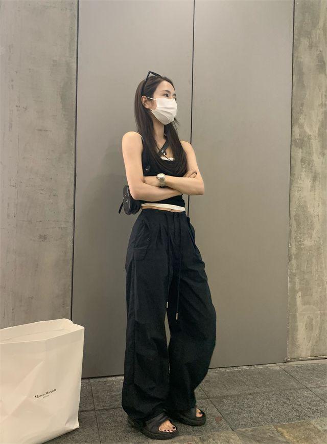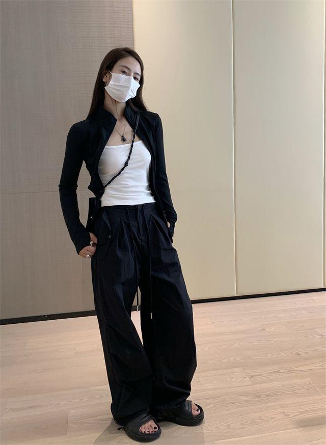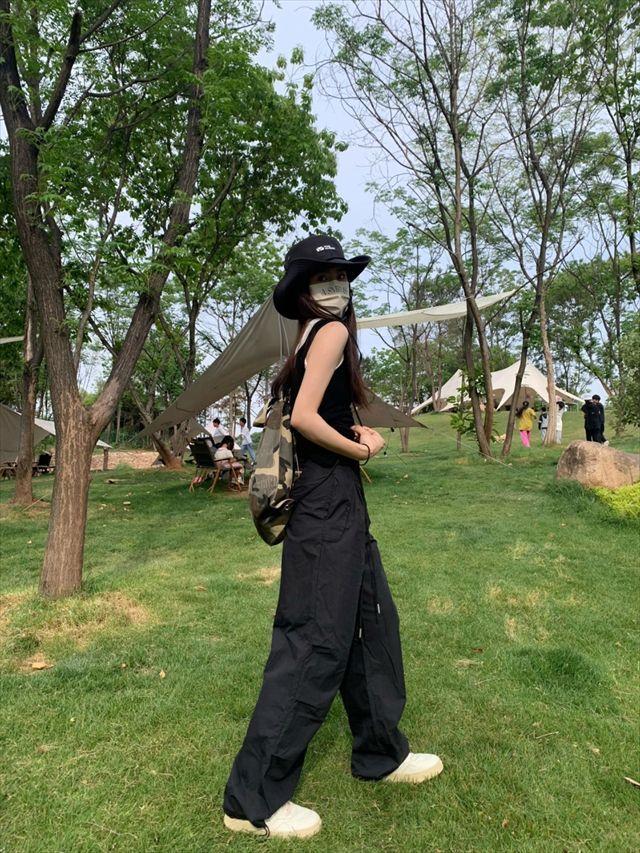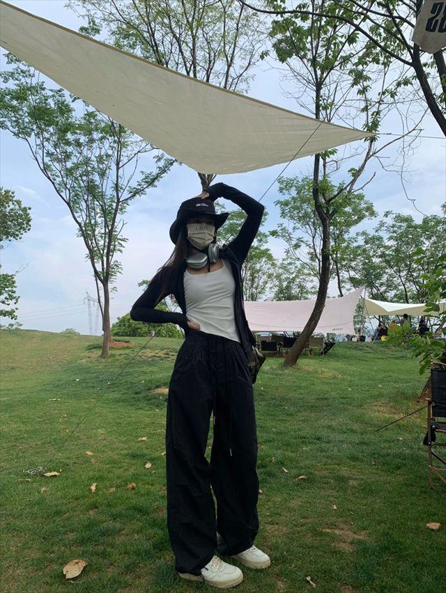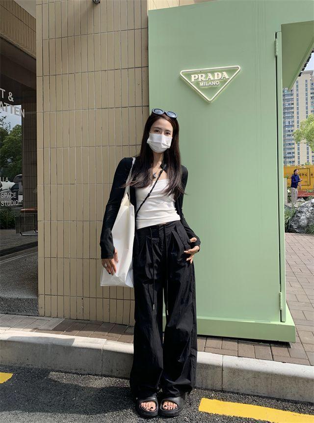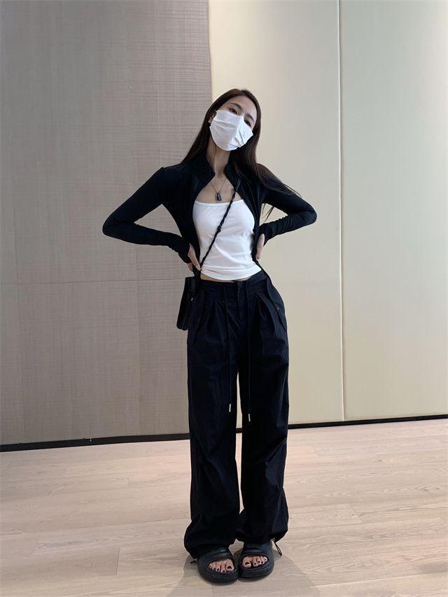 Pantalones Cargo de Verano 2025 Estilo Americano Nuevo para Mujer Cintura Alta Casual Paracaídas Cordón Ajustable Dos Formas de Usar Rectos Largos hasta el Piso