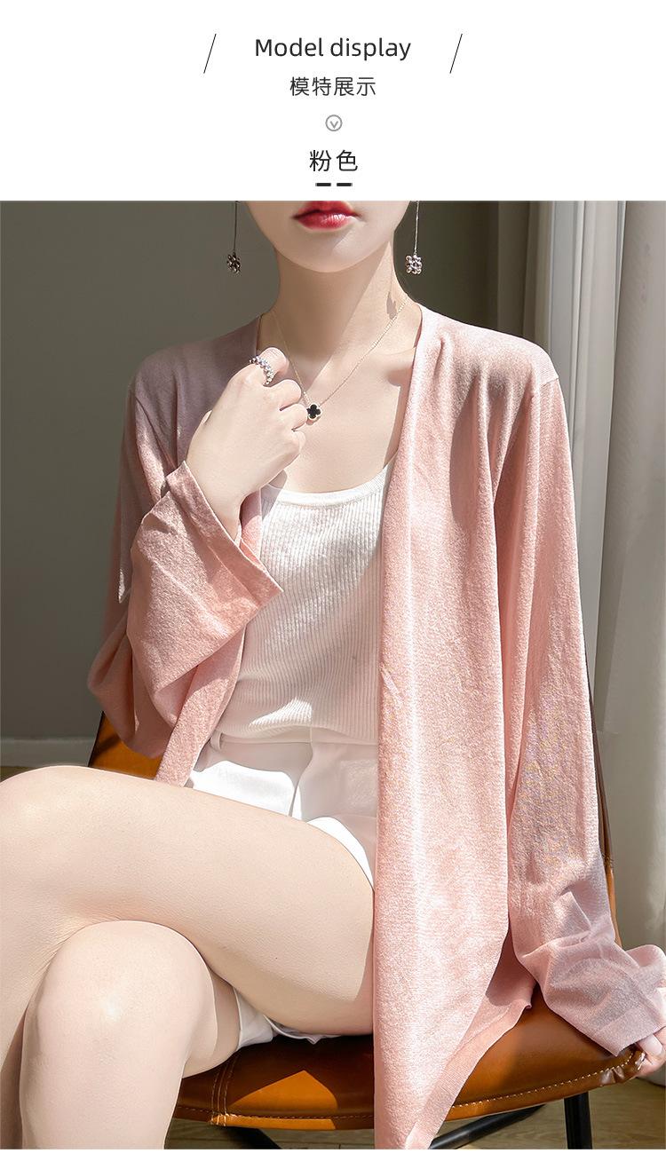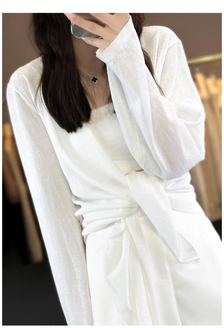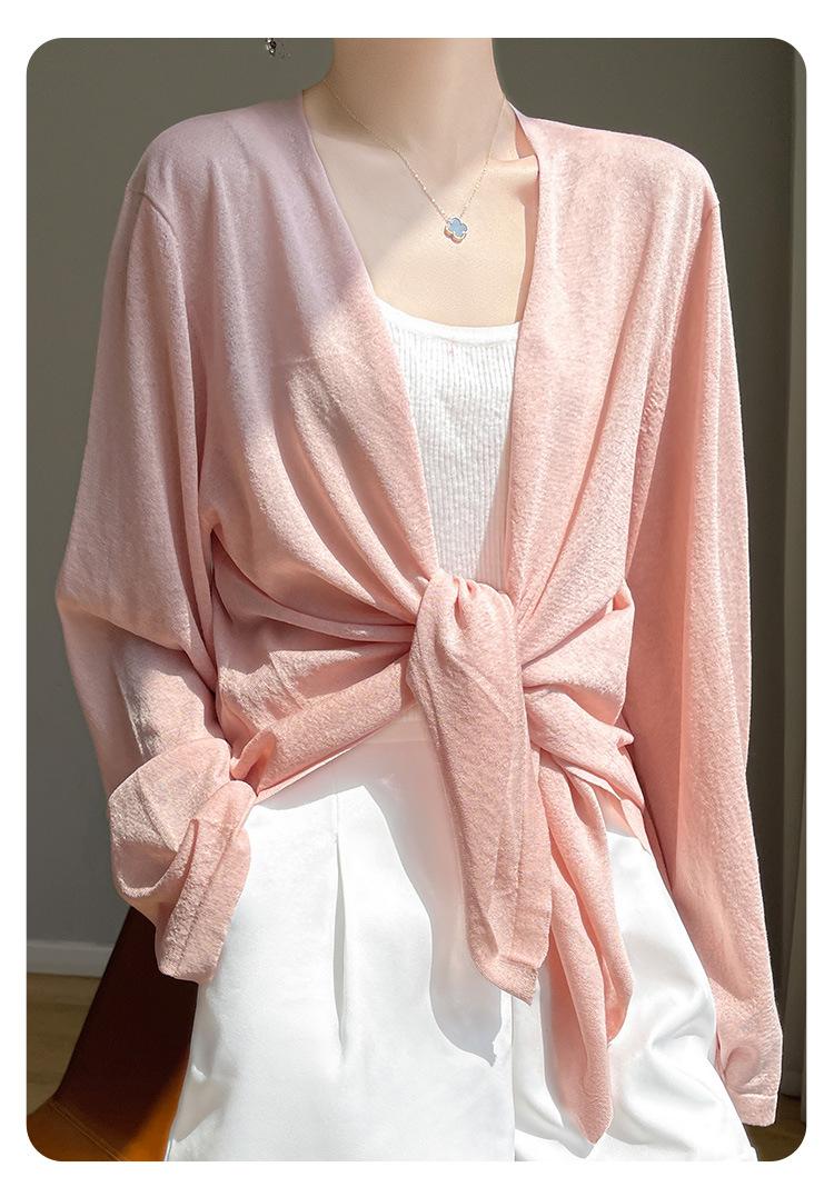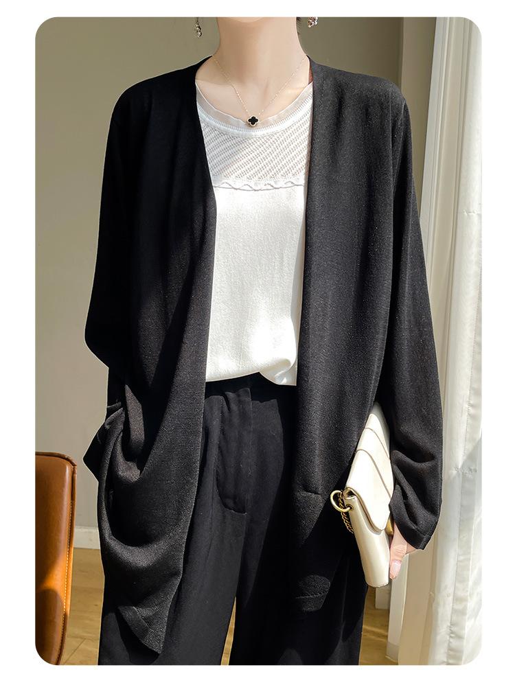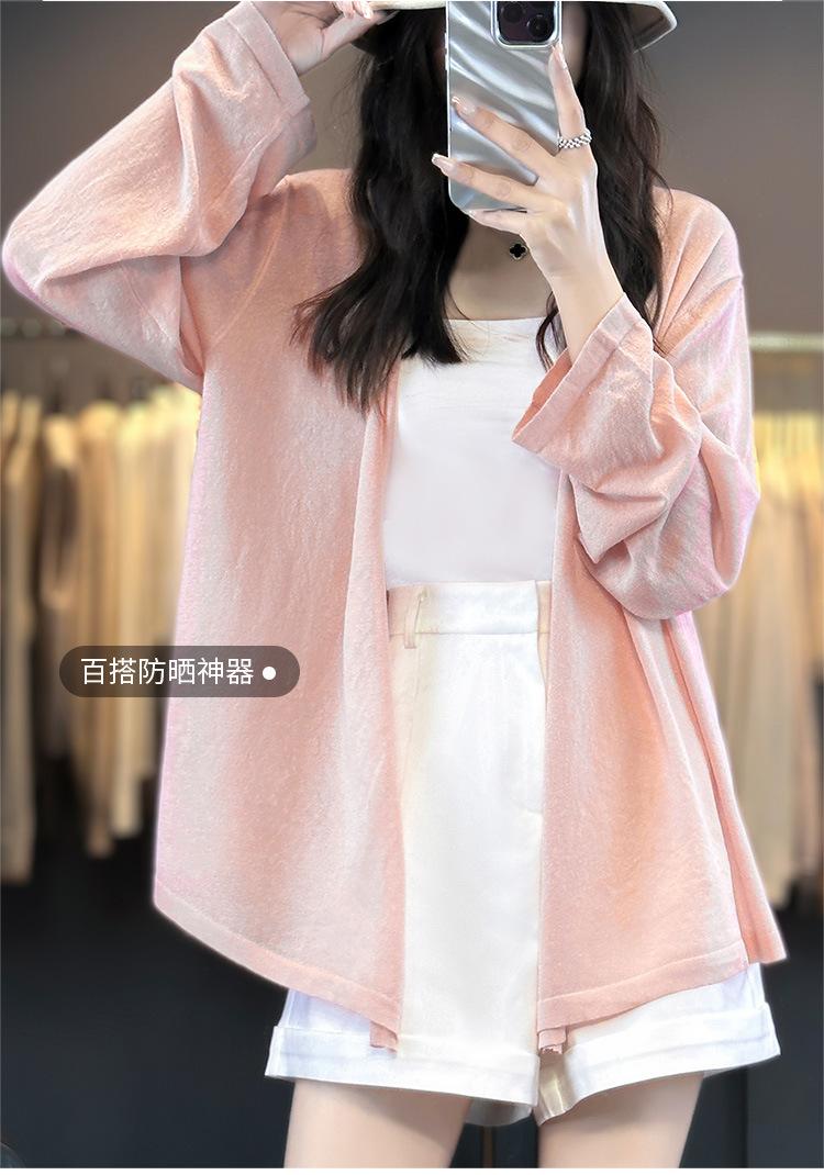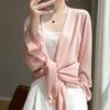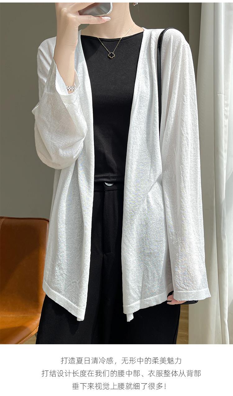 Cárdigan de punto de tencel de longitud media para mujer, protector solar, cuello en V, holgado, informal, fino, con aire acondicionado, novedad de verano de 24 años