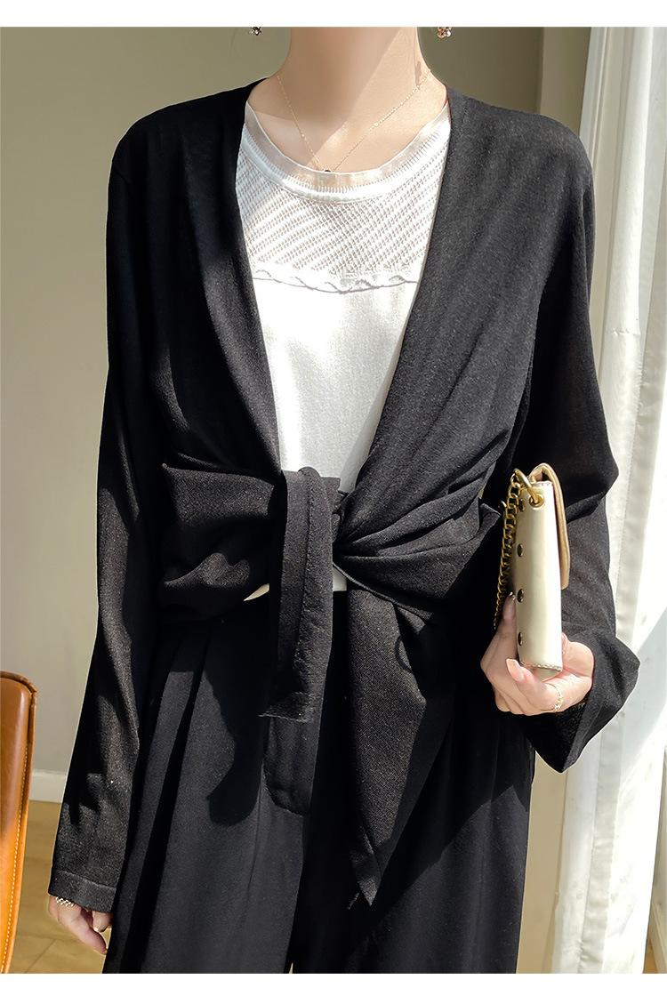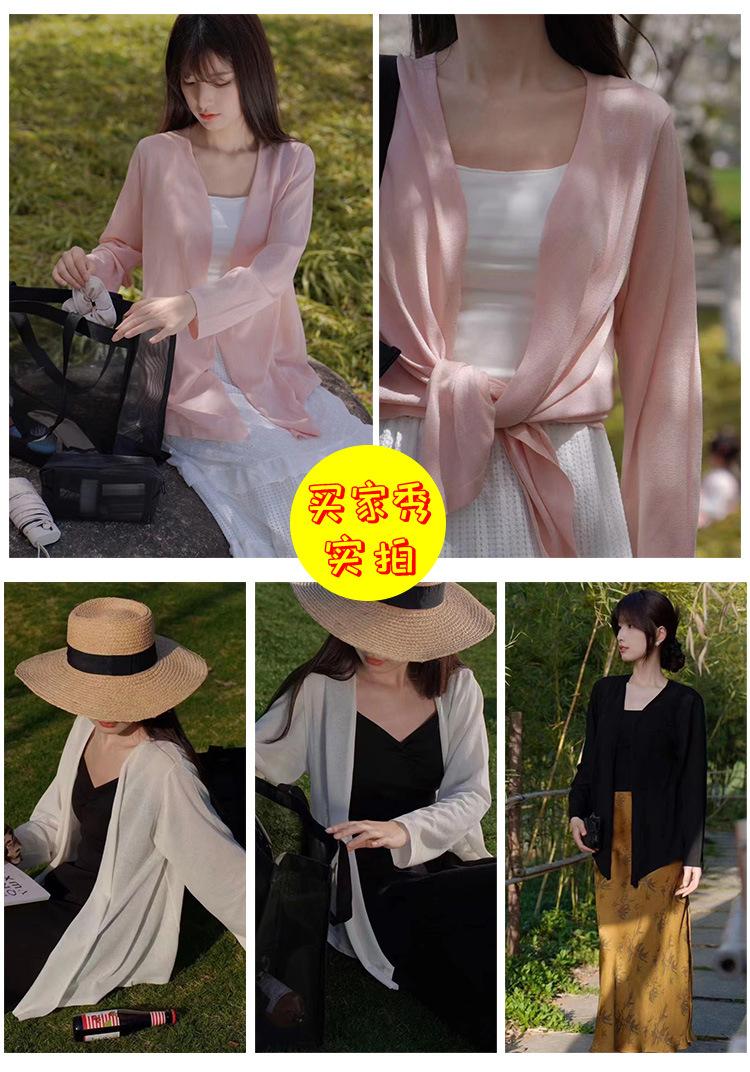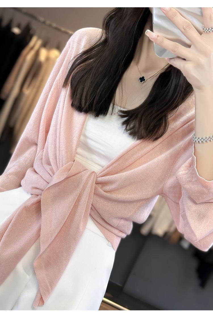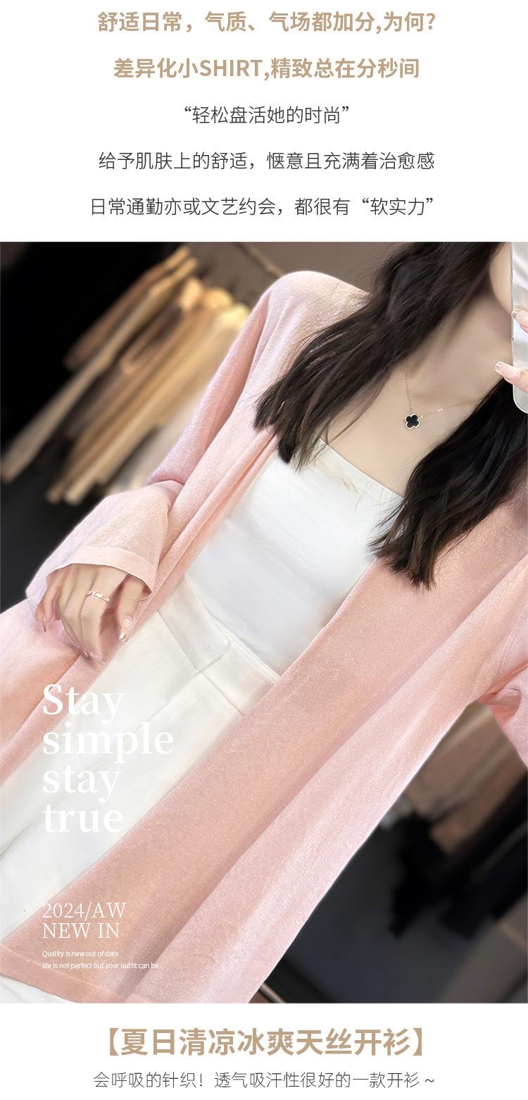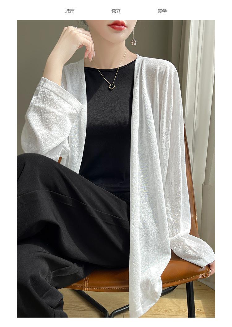 Cárdigan de punto de tencel de longitud media para mujer, protector solar, cuello en V, holgado, informal, fino, con aire acondicionado, novedad de verano de 24 años