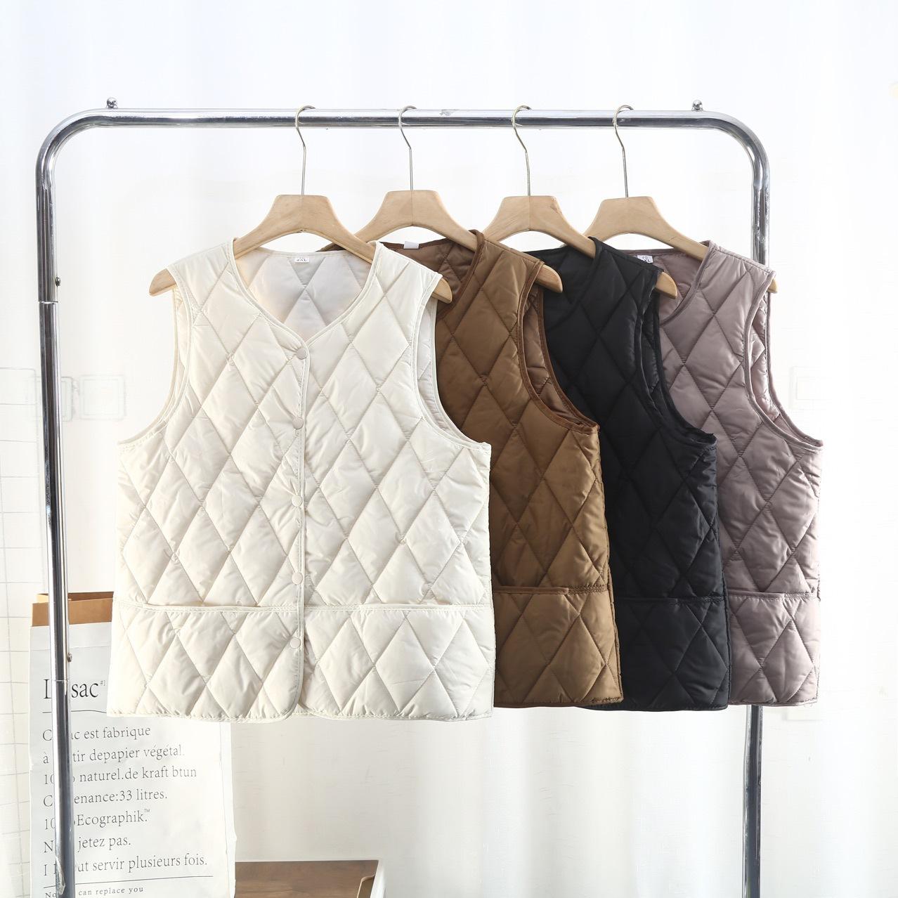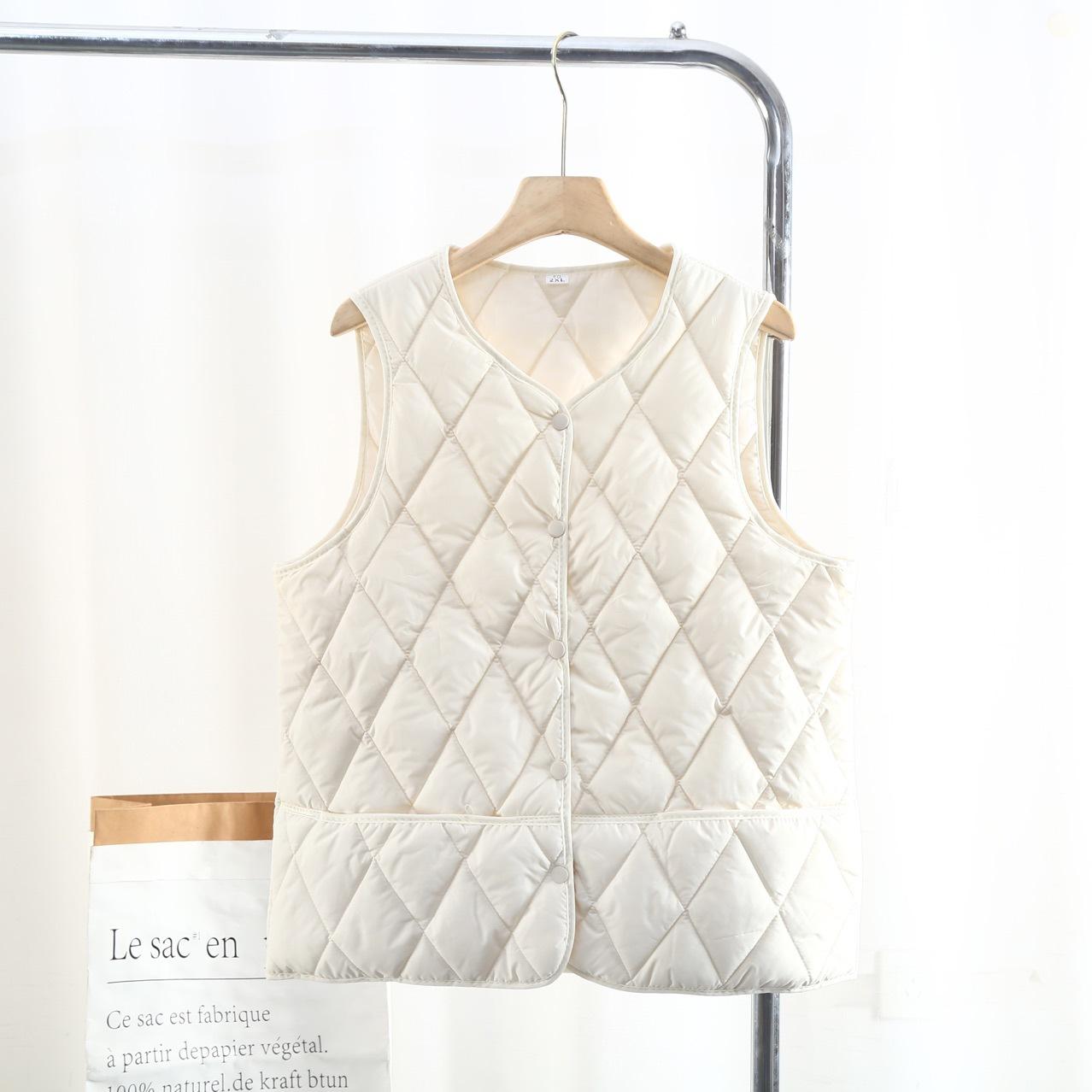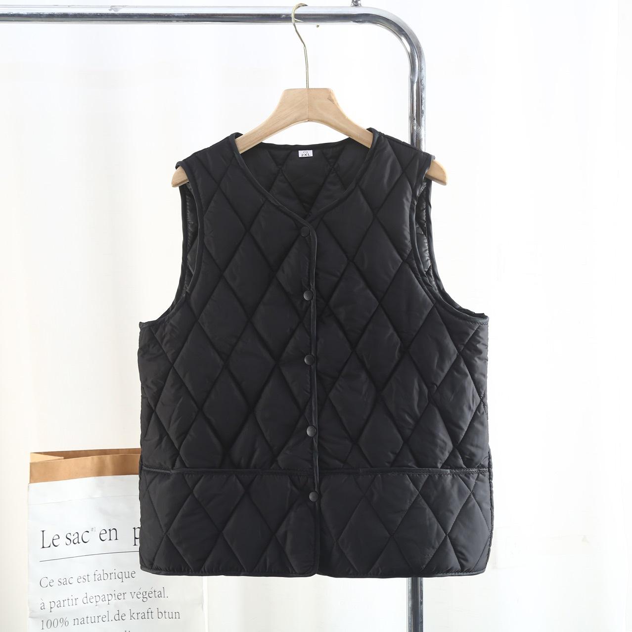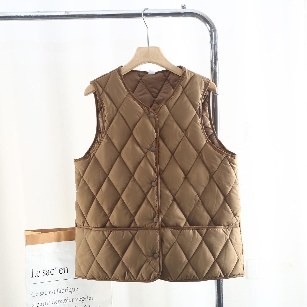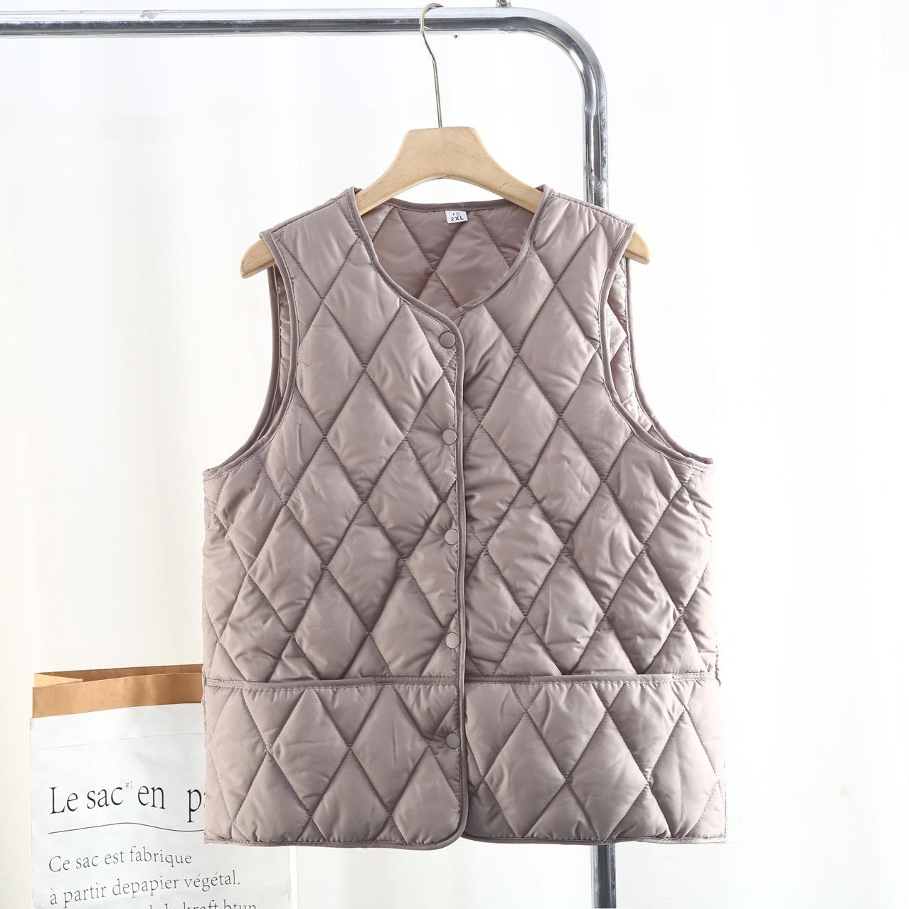 Chaleco de Algodón Talla Grande para Mujer Estampado de Diamantes Otoño e Invierno 2025 Chaleco Chaleco de Algodón Ligero y Delgado 514