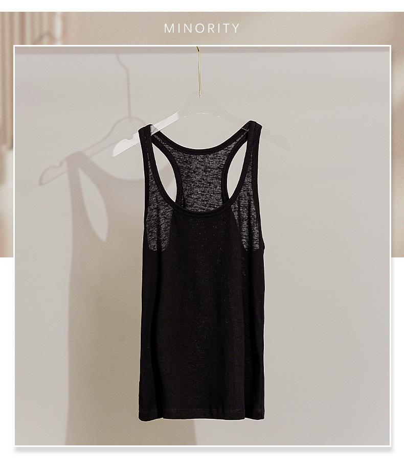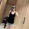 Ahora 2024 Primavera y Verano Nuevo Pulóver Delgado Negro Fuera del Hombro Sin Mangas Top Algodón Camiseta sin Espalda Chaleco para Mujer Trendy