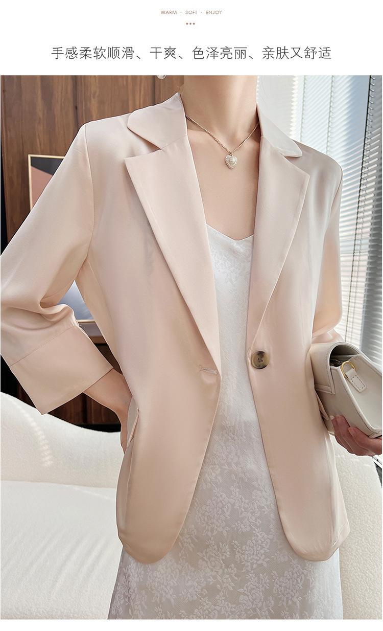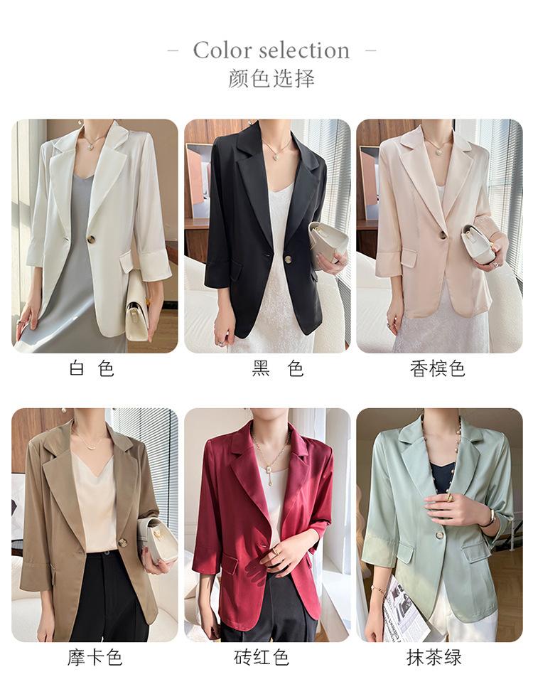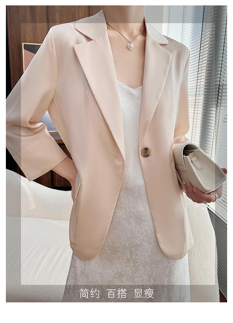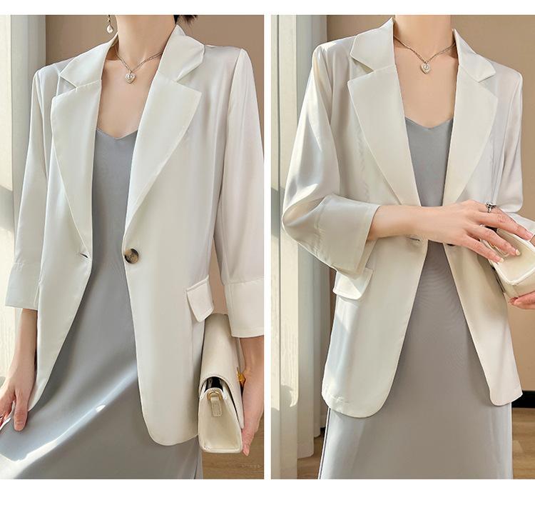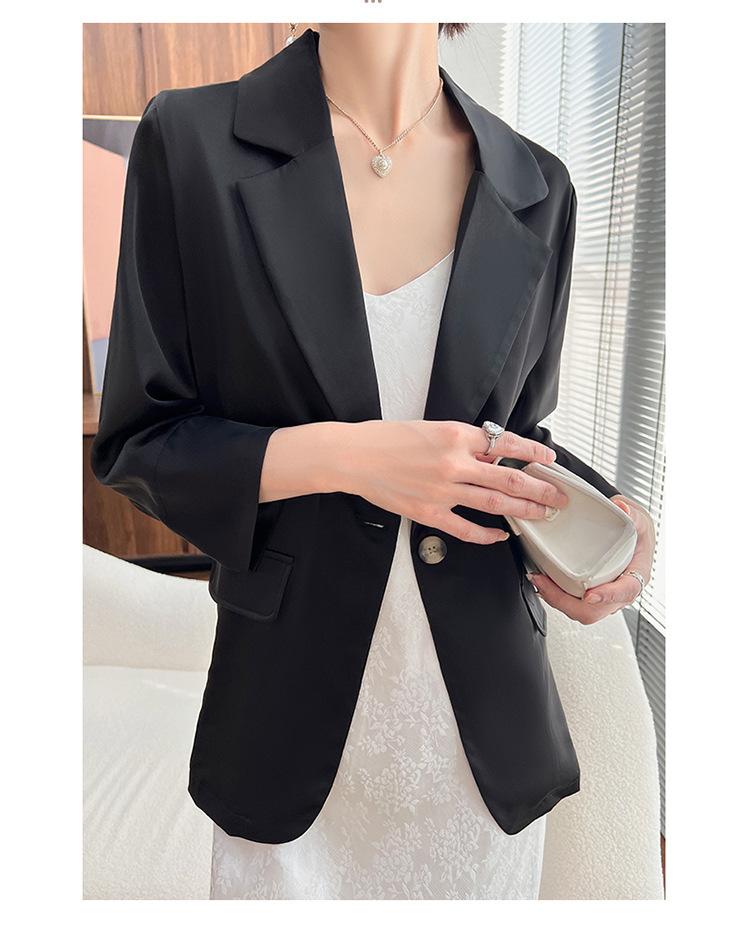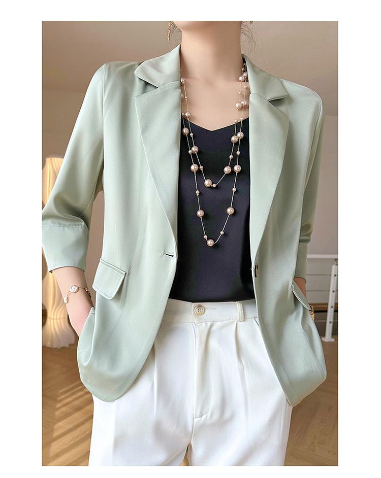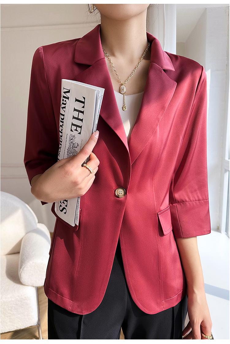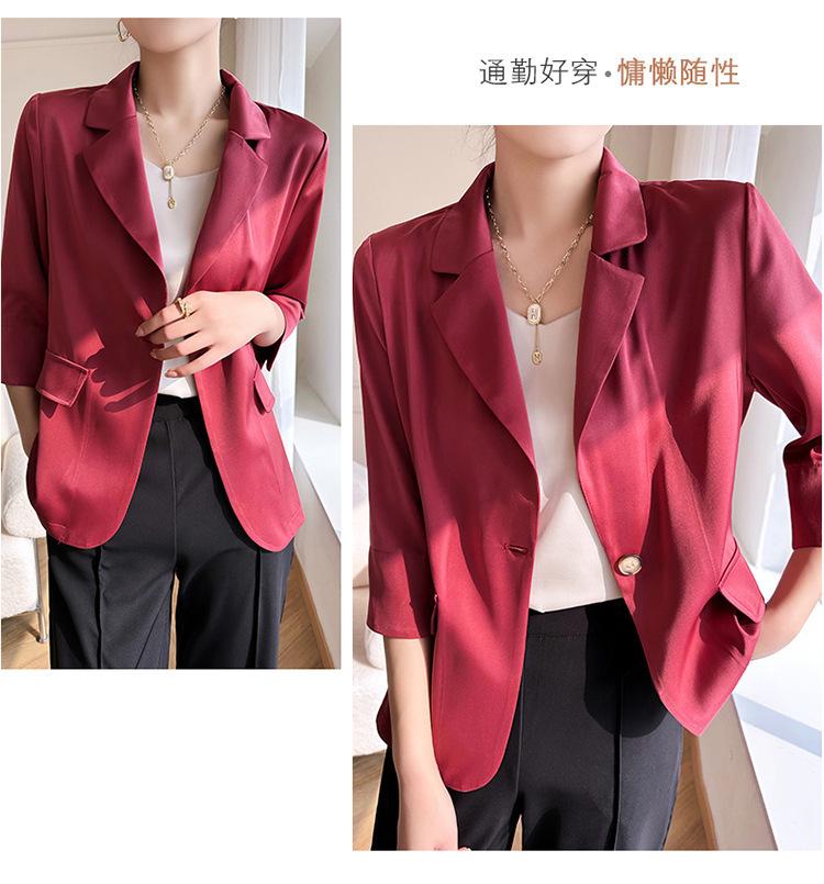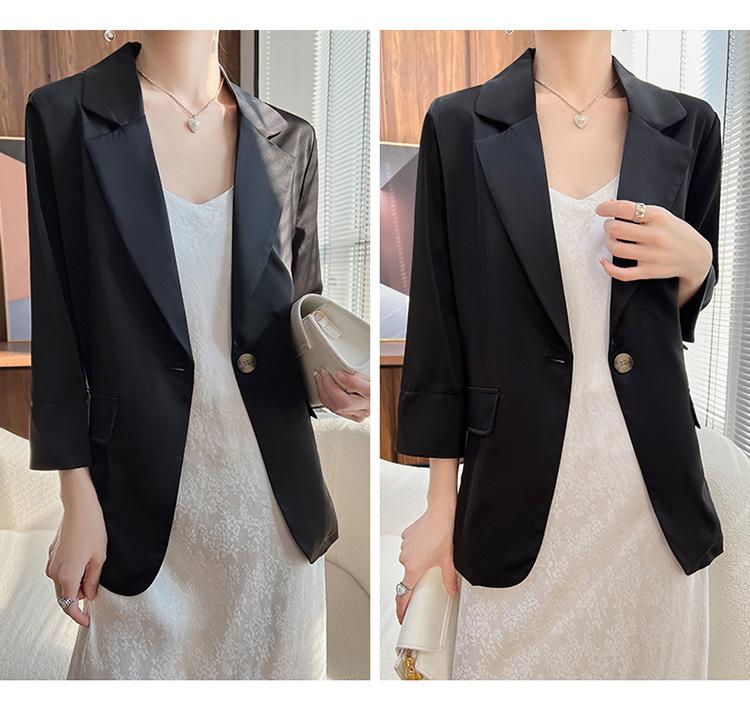 2025 Primavera y Verano Nuevo Traje Pequeño de Satén Sedoso Manga Tres Cuartos para Mujer Color Sólido Un Botón Color Sólido Chaqueta Holgada