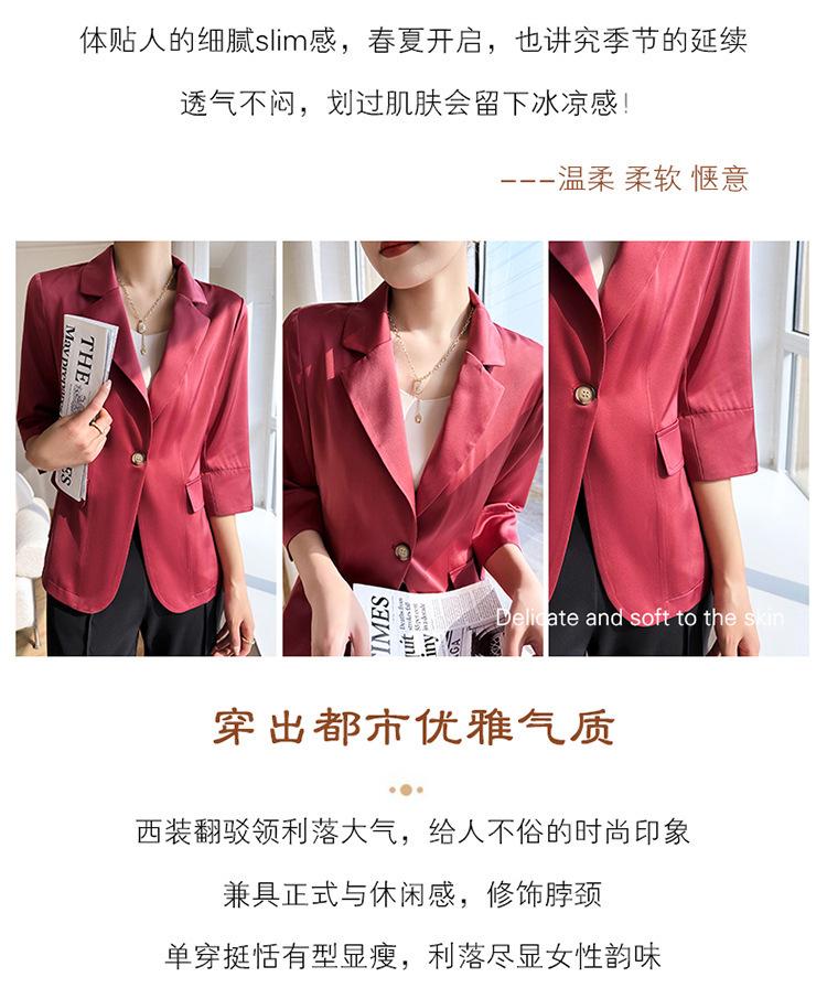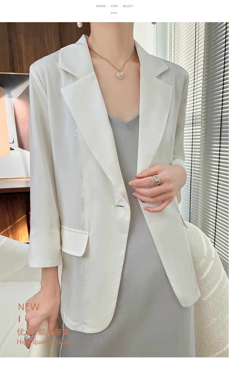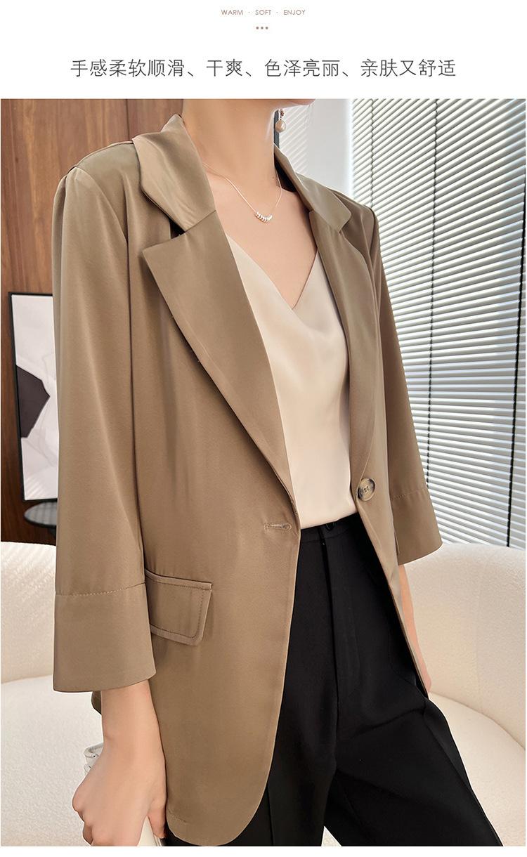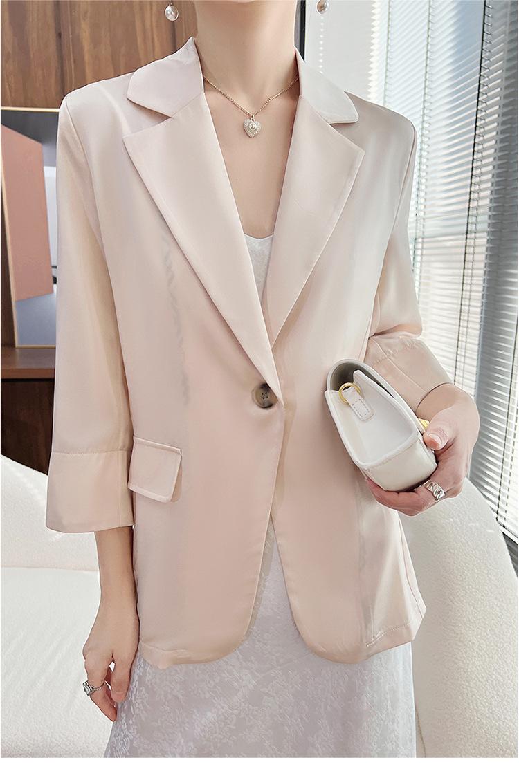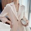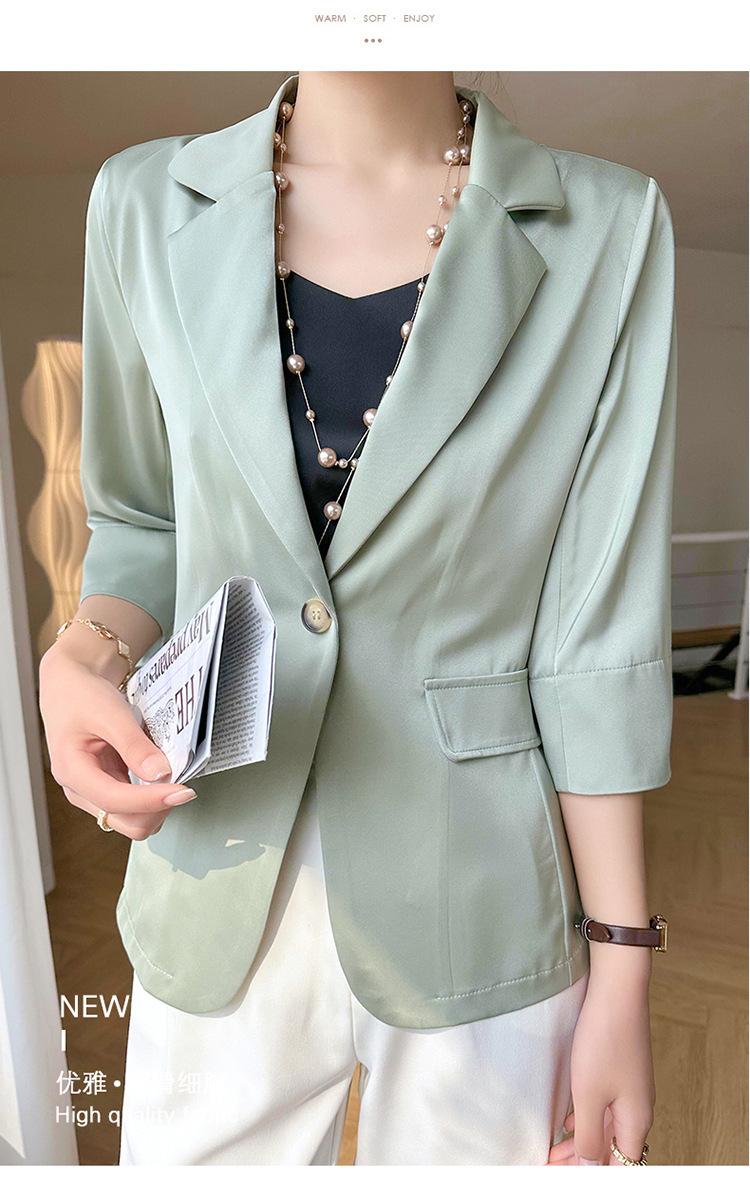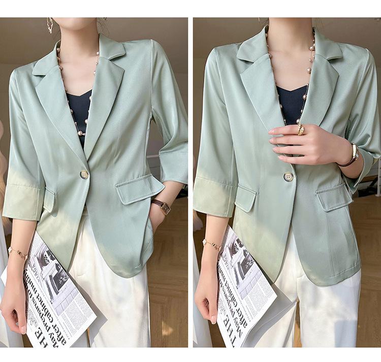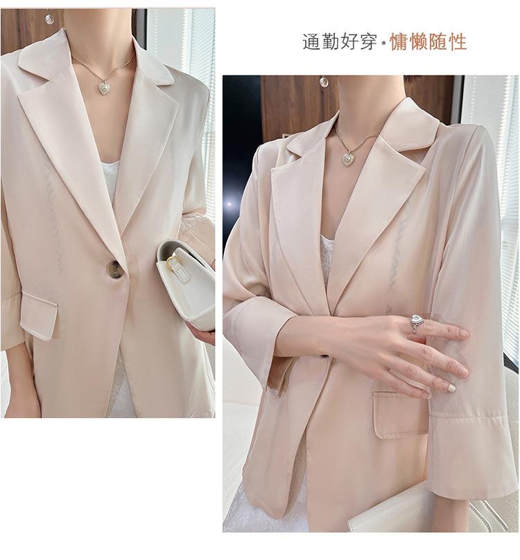 2025 Primavera y Verano Nuevo Traje Pequeño de Satén Sedoso Manga Tres Cuartos para Mujer Color Sólido Un Botón Color Sólido Chaqueta Holgada