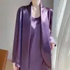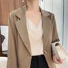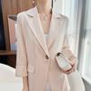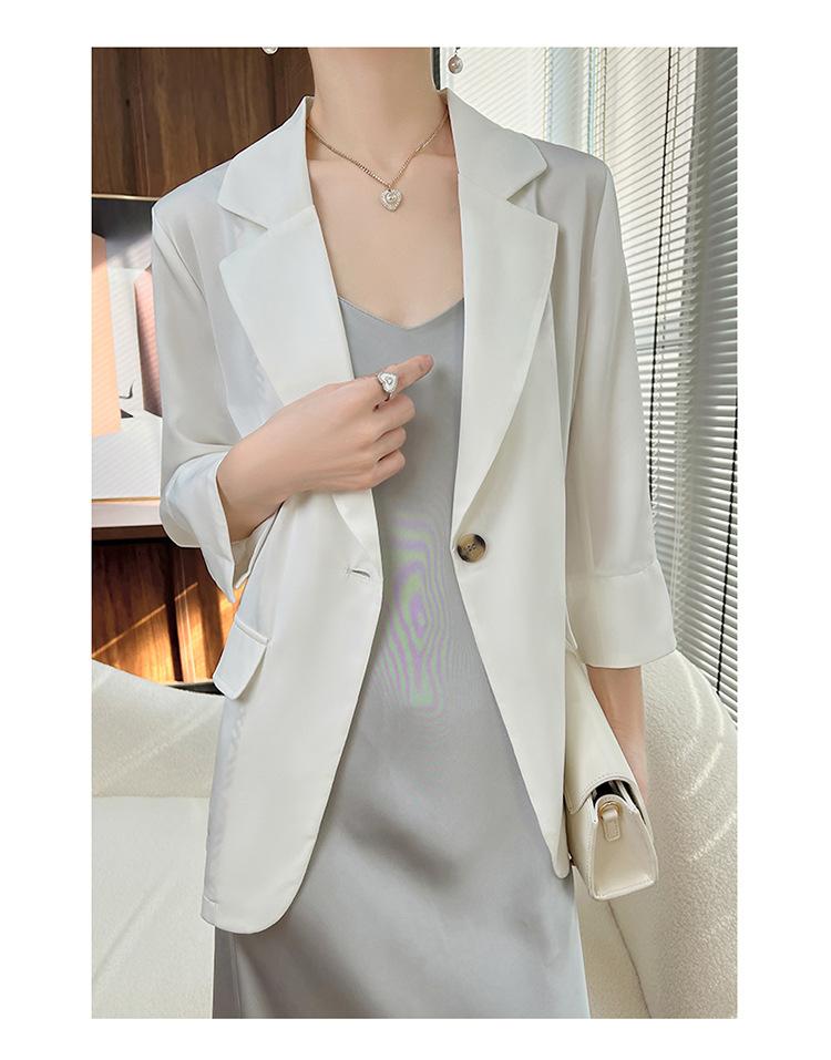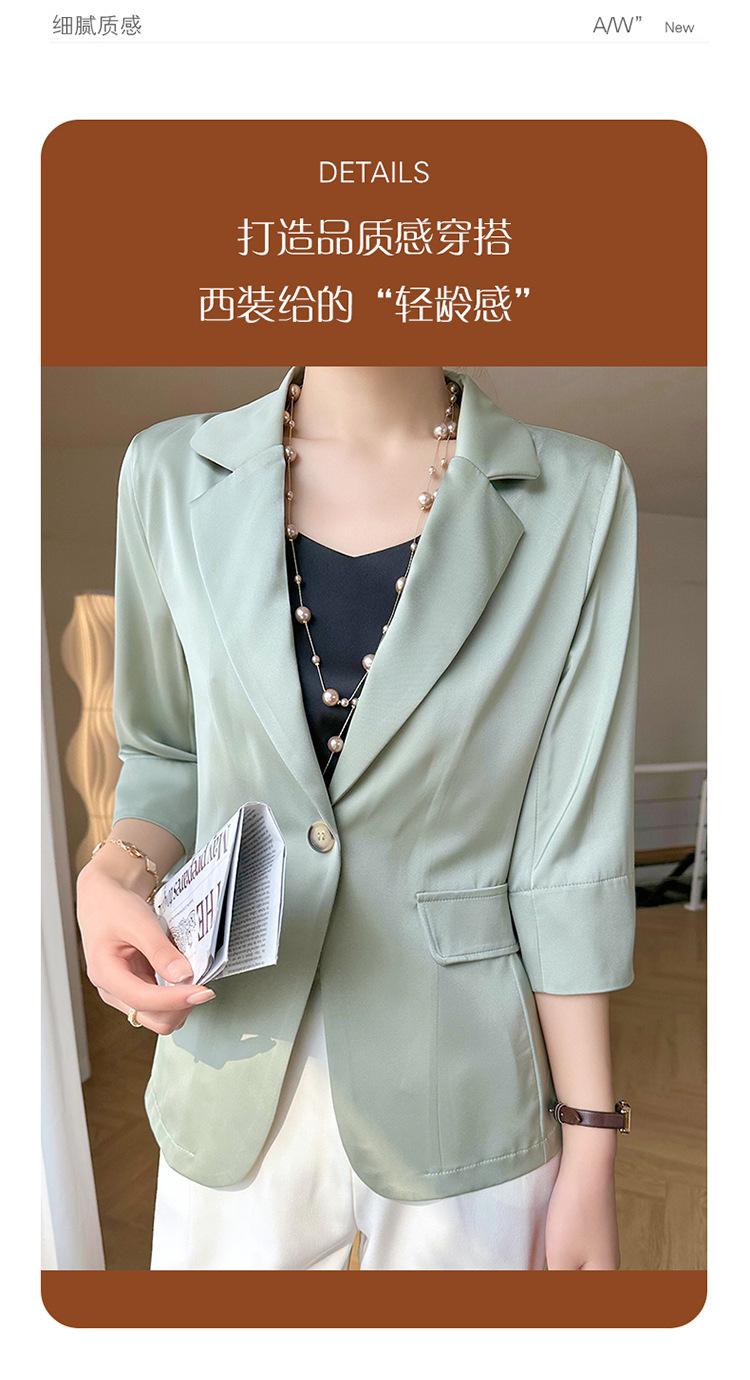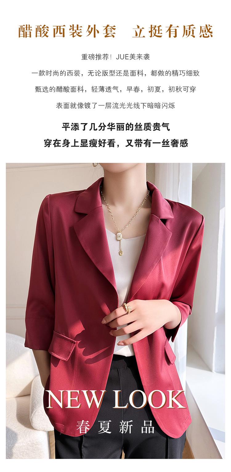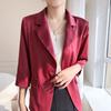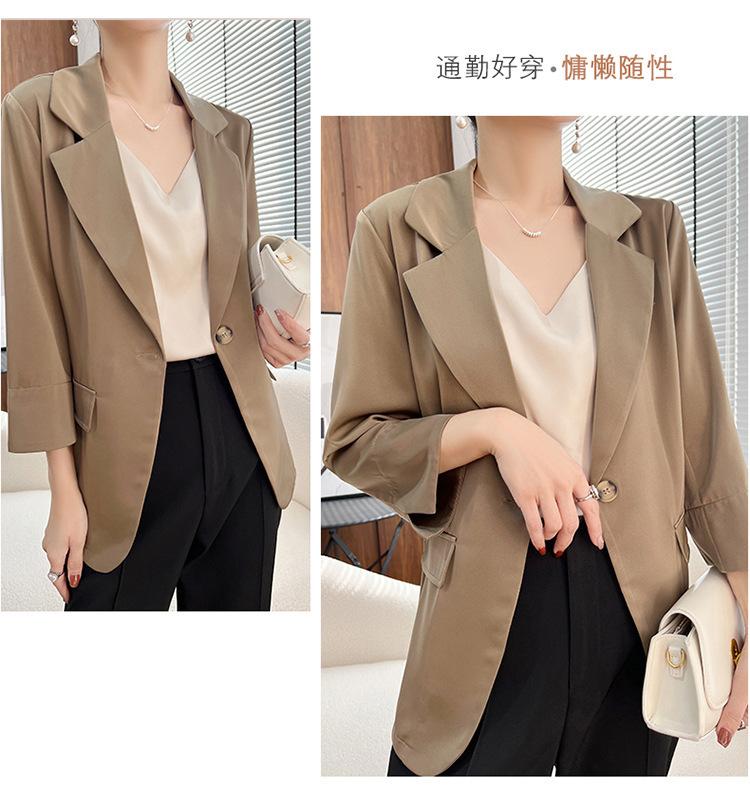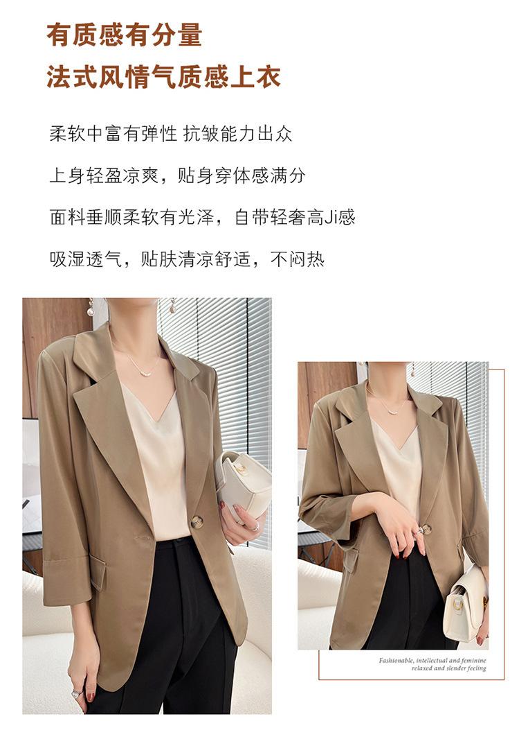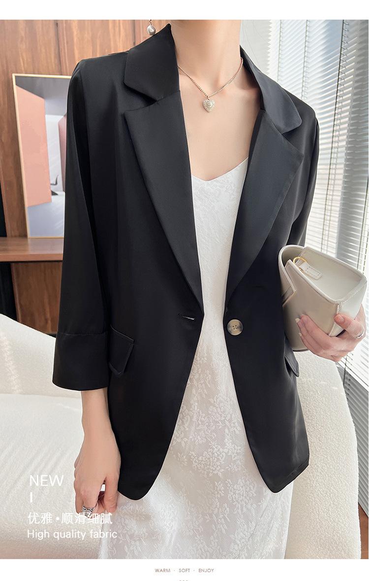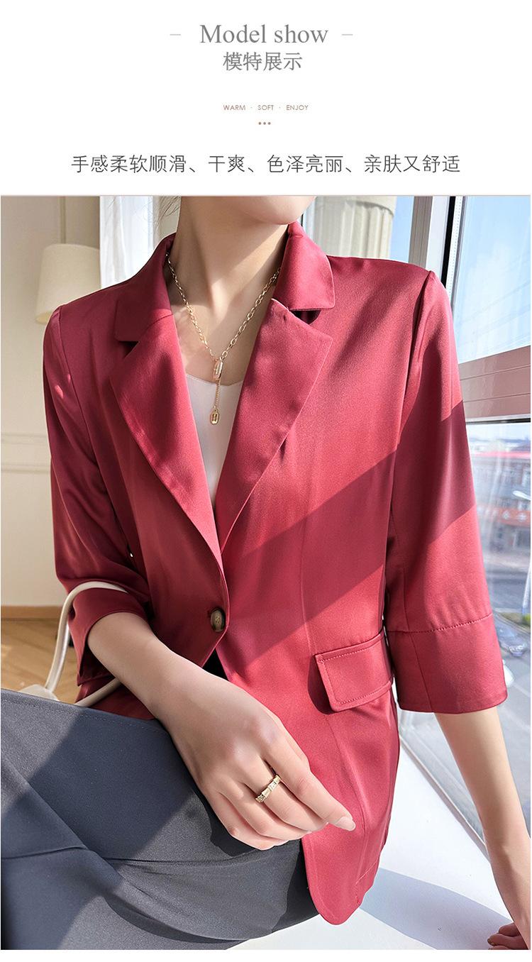 2025 Primavera y Verano Nuevo Traje Pequeño de Satén Sedoso Manga Tres Cuartos para Mujer Color Sólido Un Botón Color Sólido Chaqueta Holgada