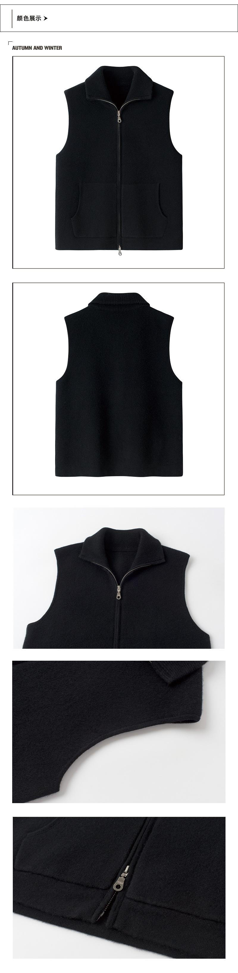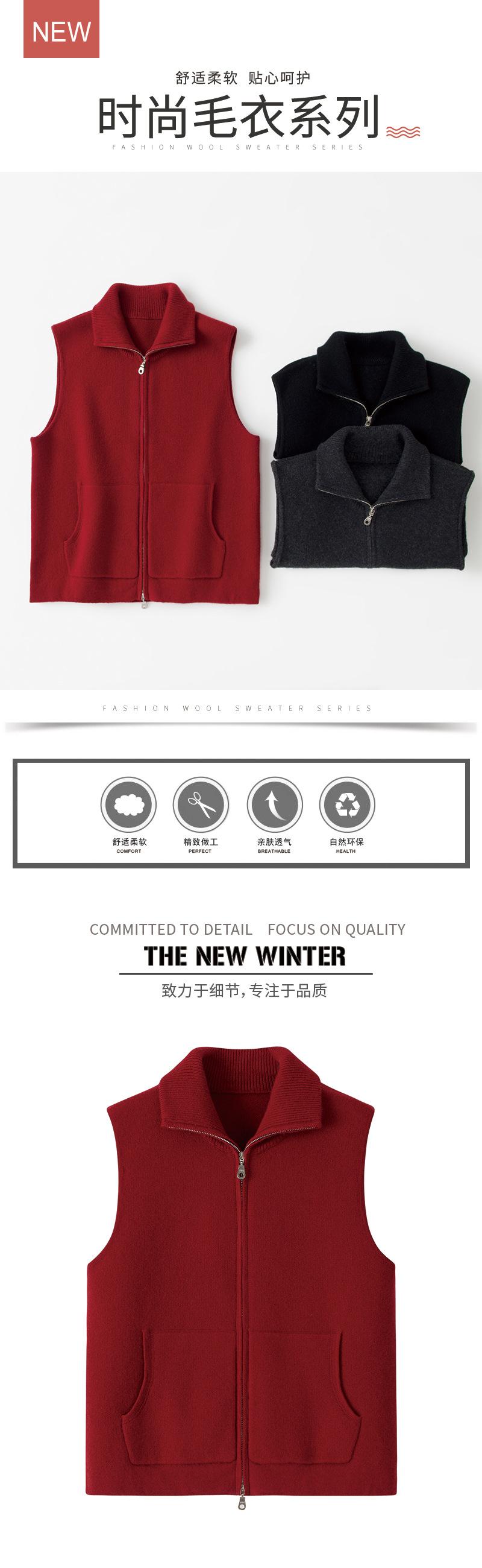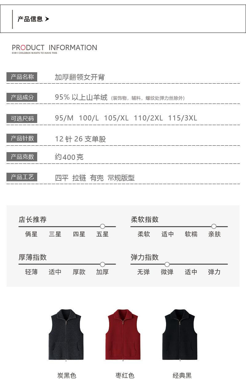 Chaleco de moda de punto de cachemira pura para mujer con solapa, cárdigan de punto grueso de 12 agujas, cuatro planos con cremallera y bolsillos, nuevo de invierno