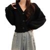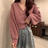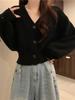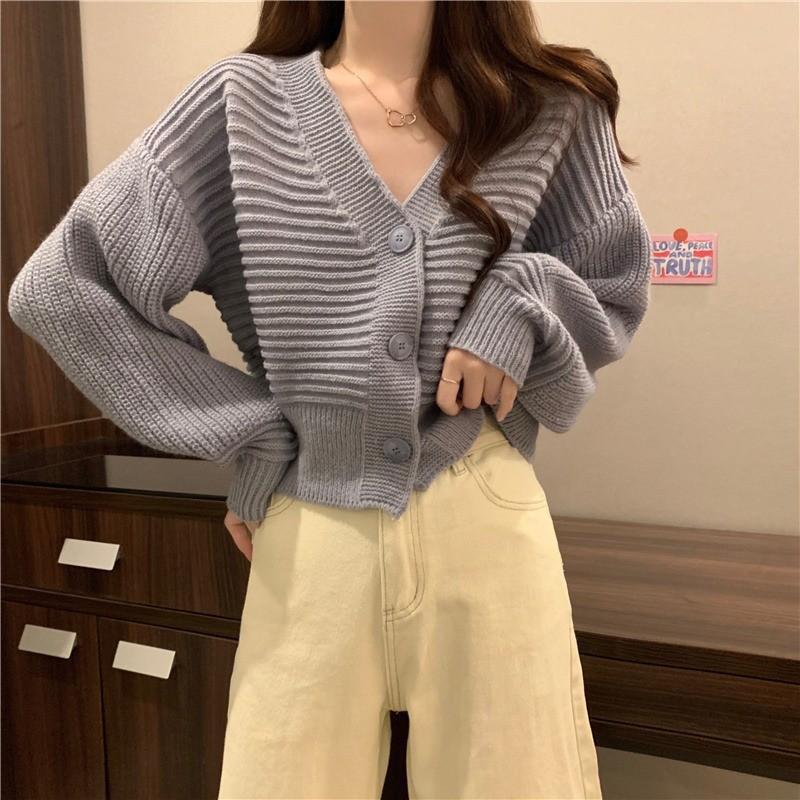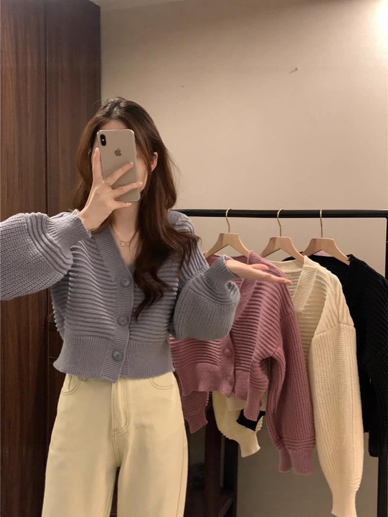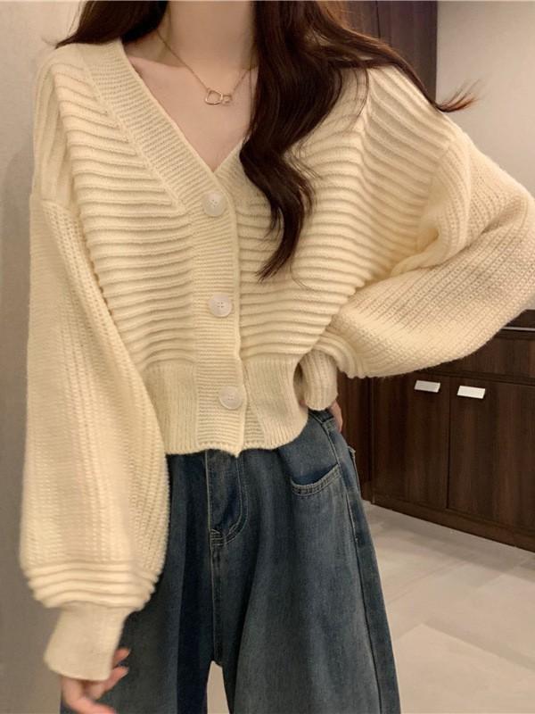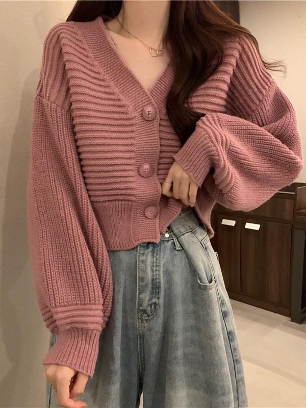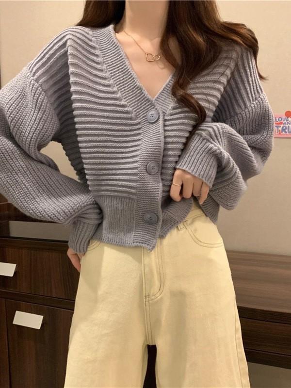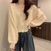 Cárdigan de Punto Corto con Cuello en V Estilo Coreano para Mujer Petite Ropa de Otoño 2025 Nuevo Suéter Holgado Estilo Perezoso Abrigo de Mujer