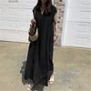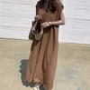 Verano 2025 Nuevo Talla Grande Vestido de Mujer Estilo Coreano Simple Holgado Estilo Perezoso Cuello en V Manga Larga Corta para Mujer