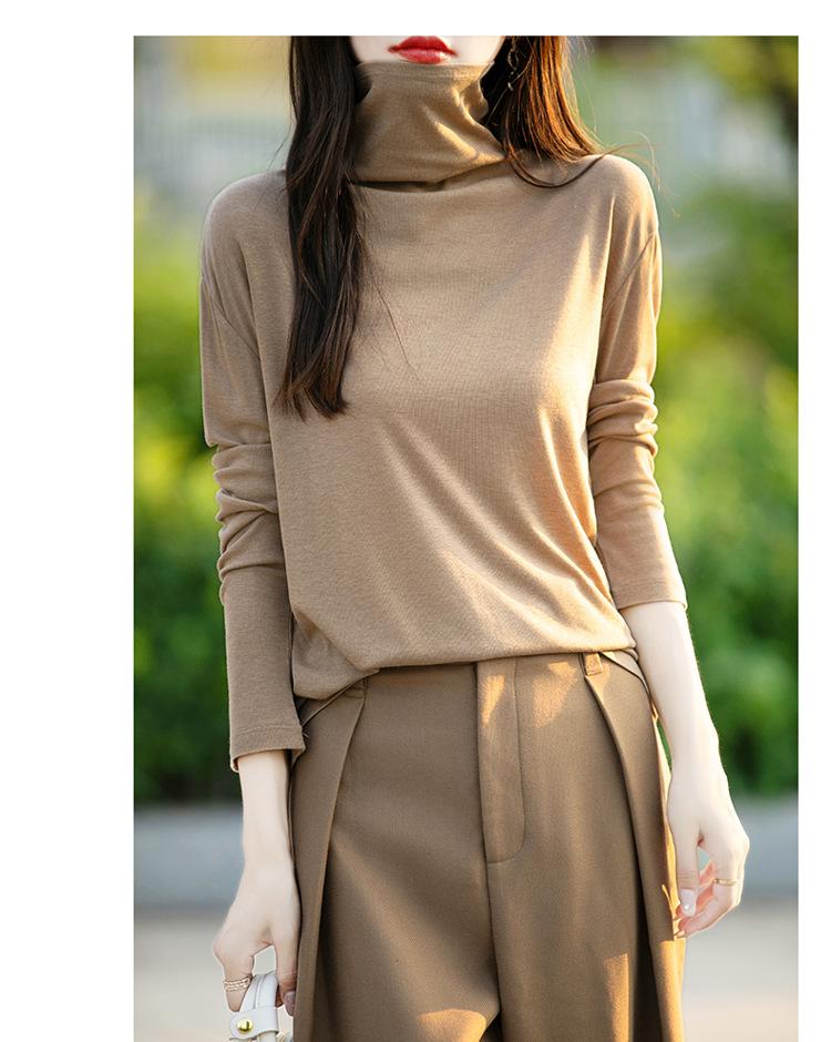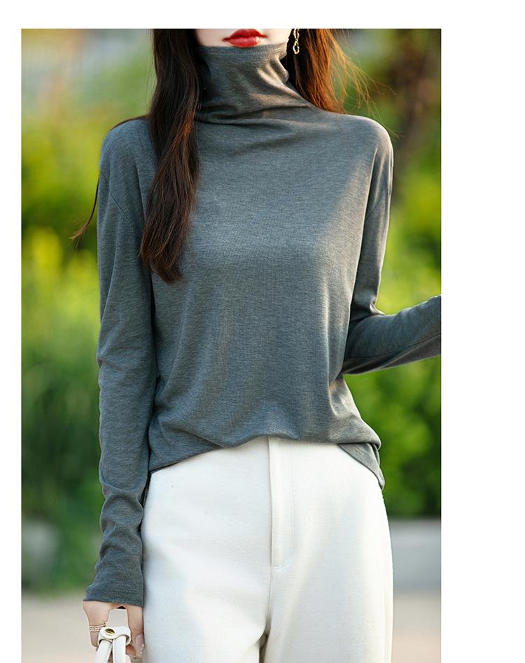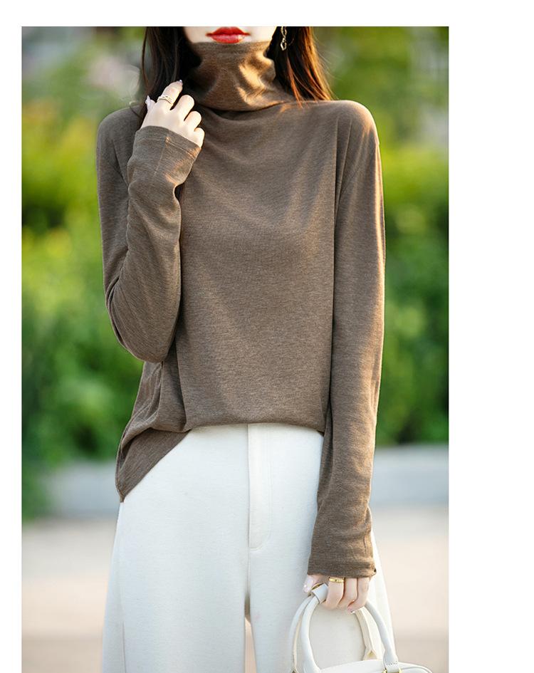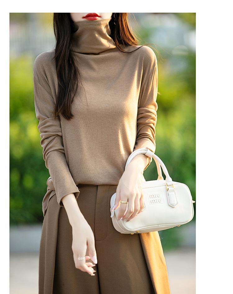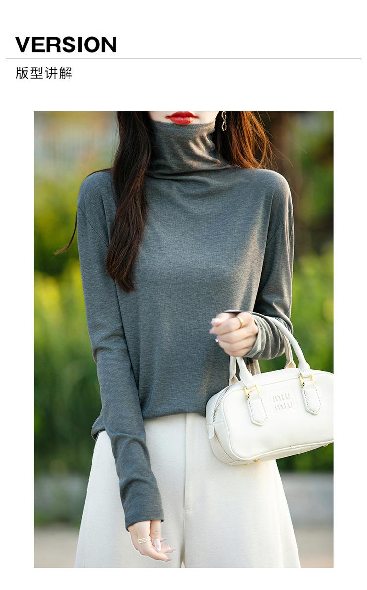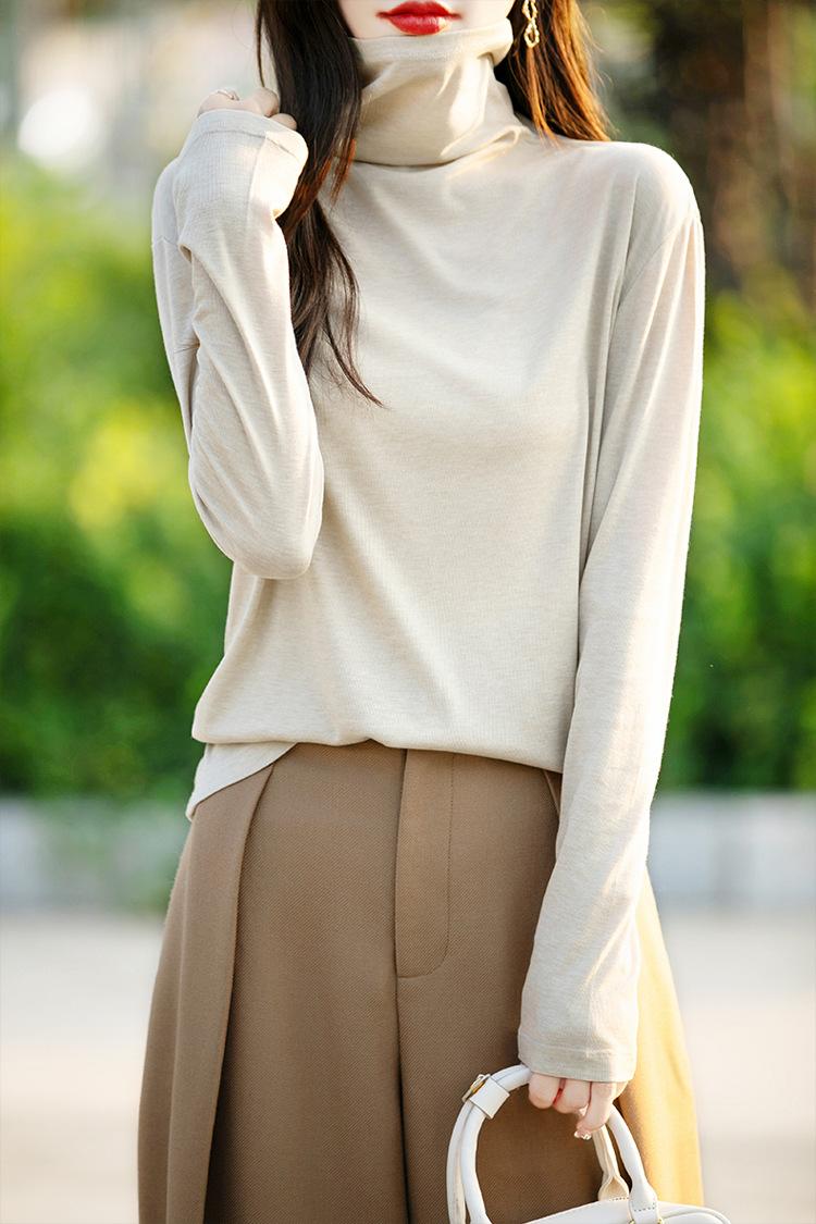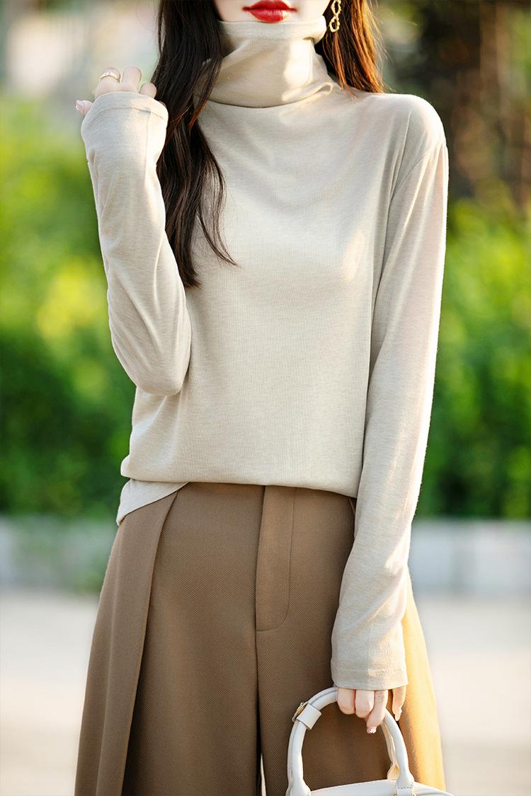 2024 Principios de Otoño Nuevo Tejido de Punto de Cuello Pile de Tencel Lyocell de Manga Larga para Mujer Color Puro Holgado Camiseta Base Top