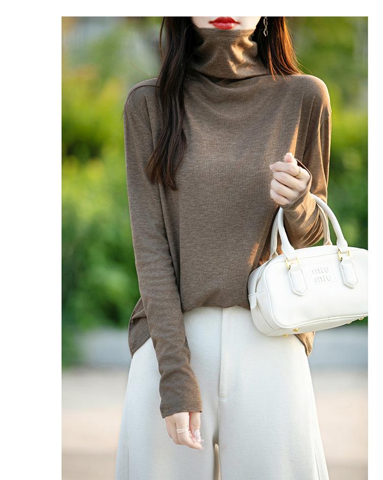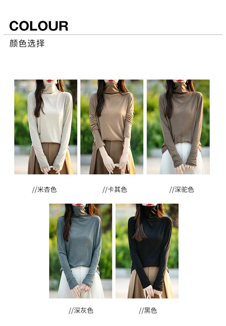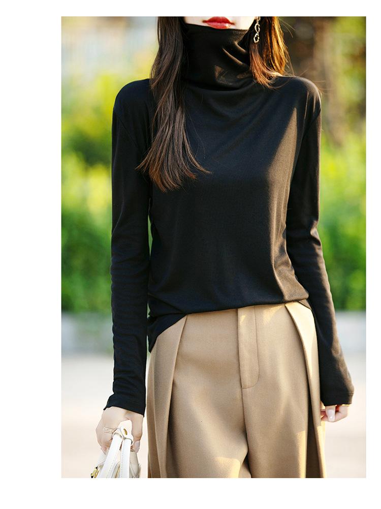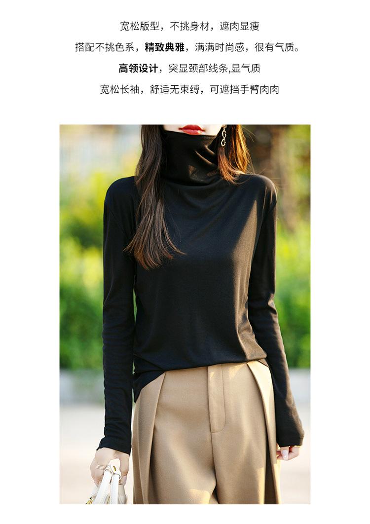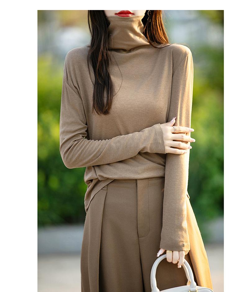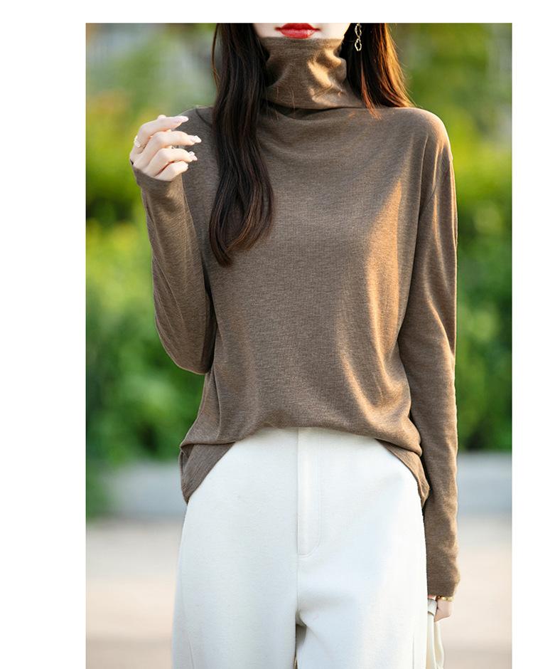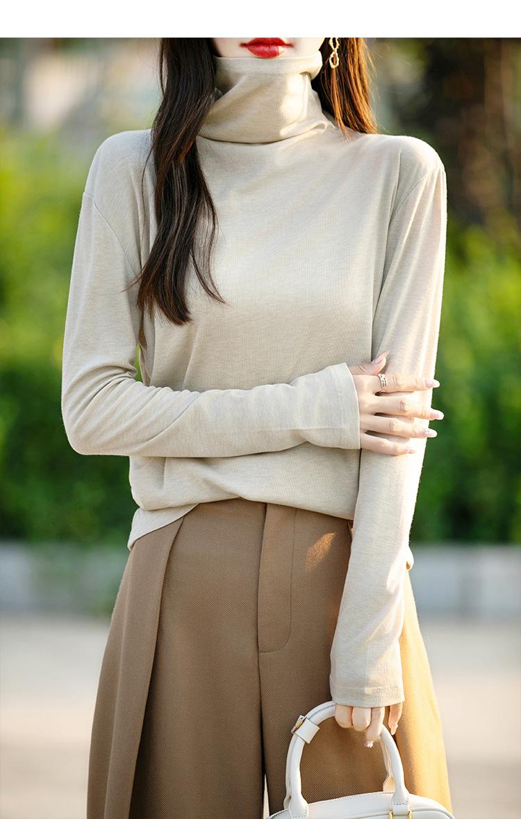 2024 Principios de Otoño Nuevo Tejido de Punto de Cuello Pile de Tencel Lyocell de Manga Larga para Mujer Color Puro Holgado Camiseta Base Top