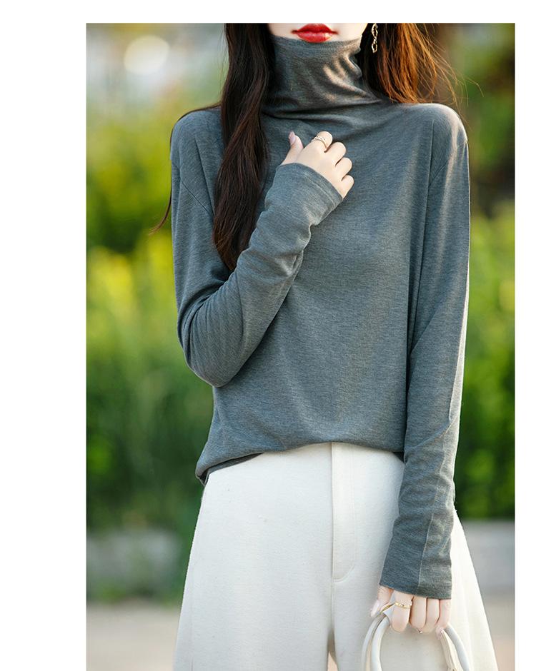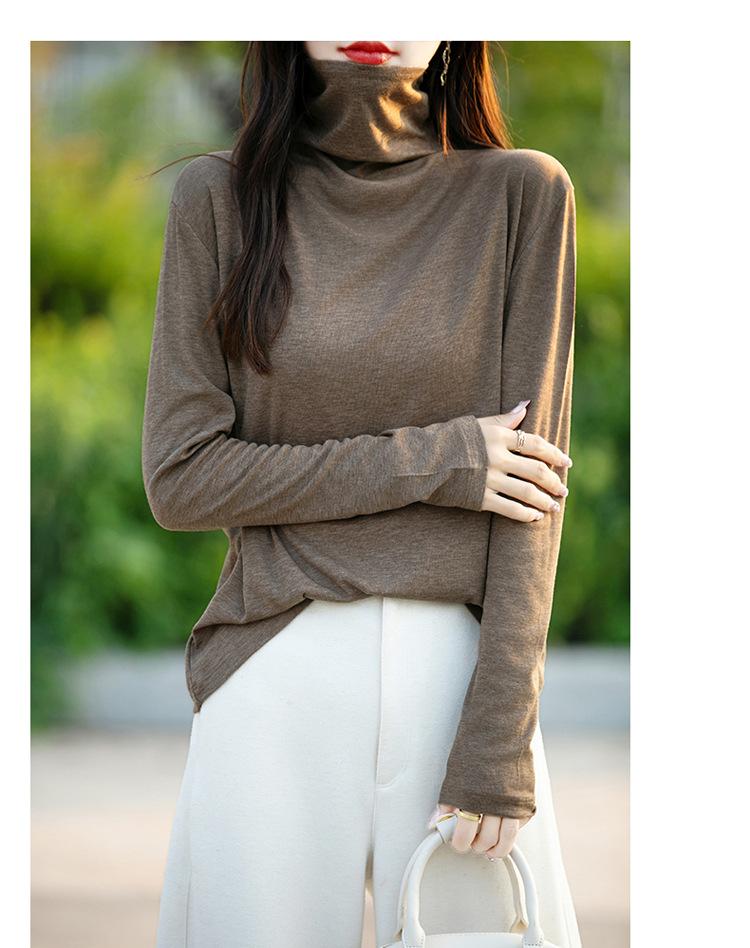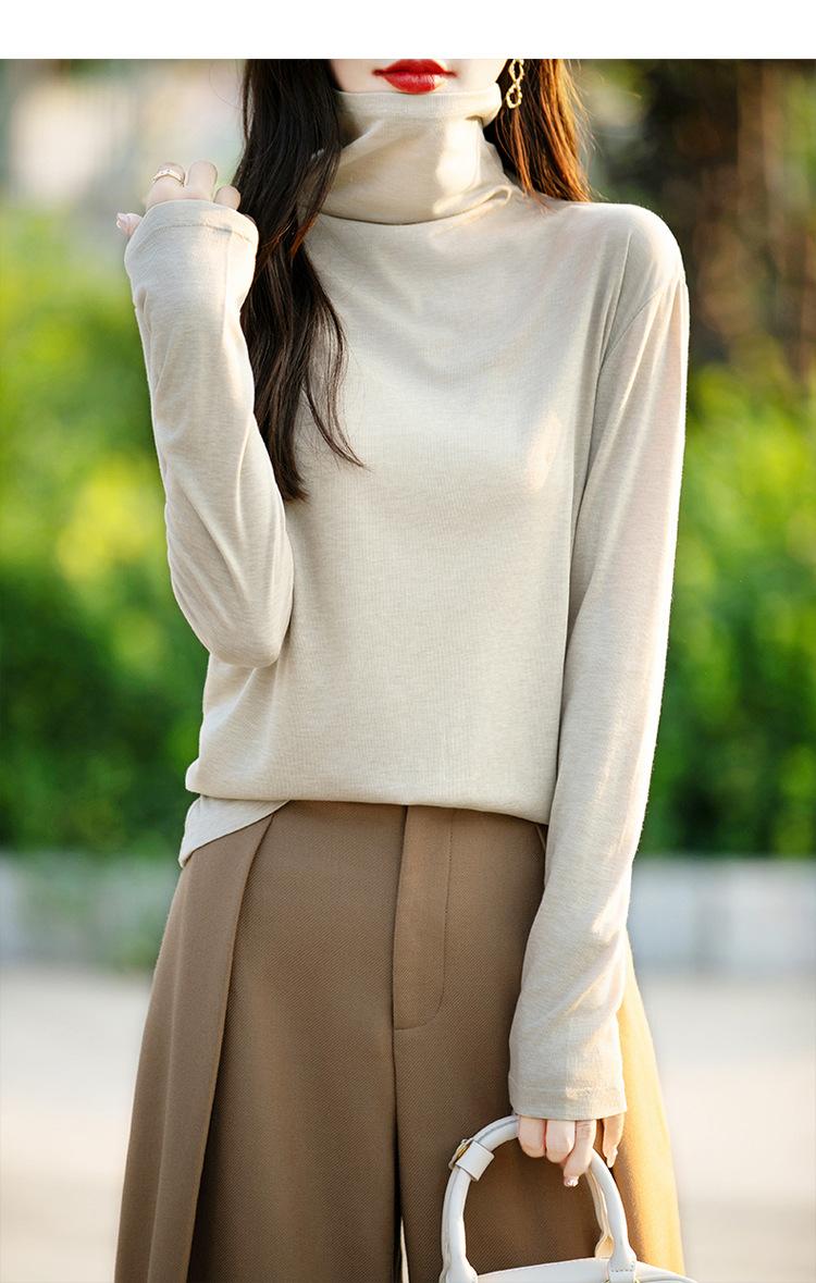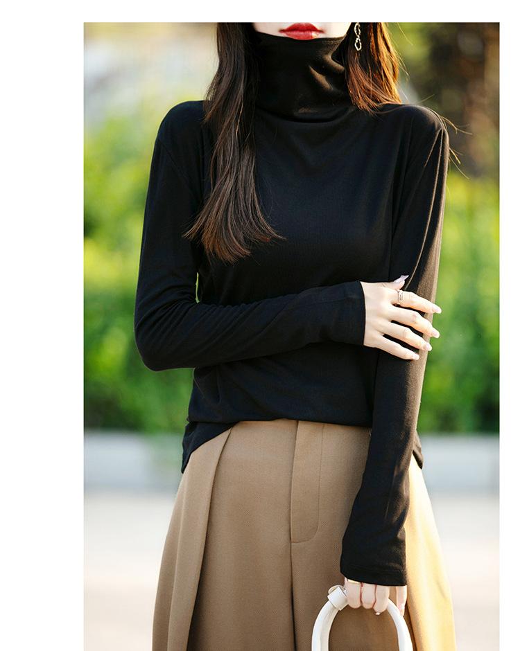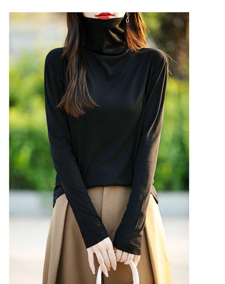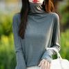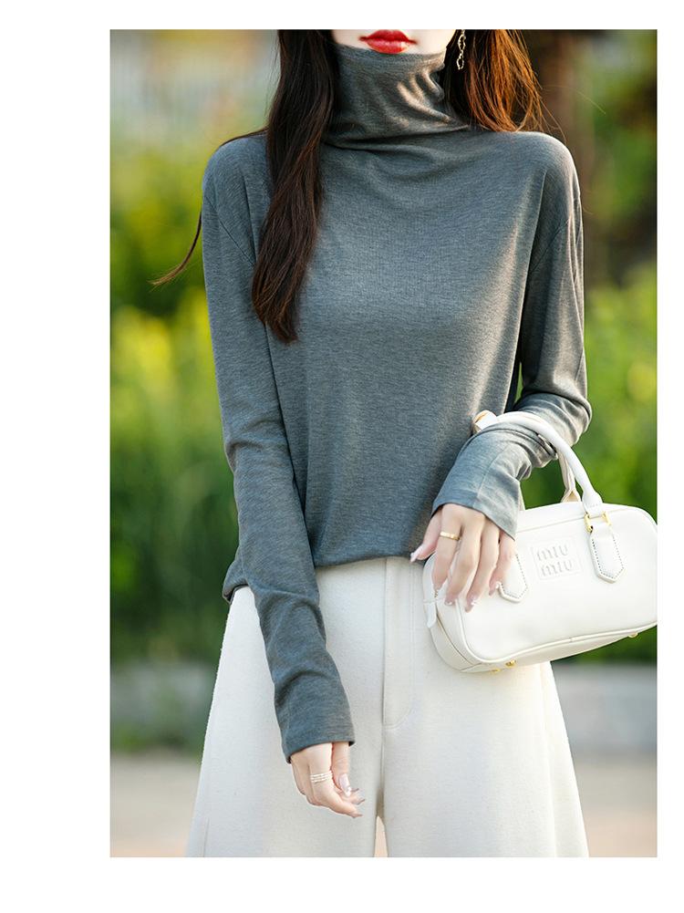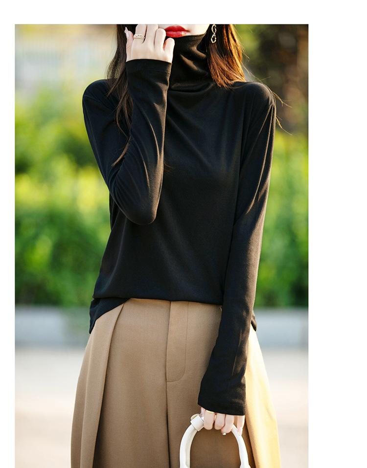 2024 Principios de Otoño Nuevo Tejido de Punto de Cuello Pile de Tencel Lyocell de Manga Larga para Mujer Color Puro Holgado Camiseta Base Top