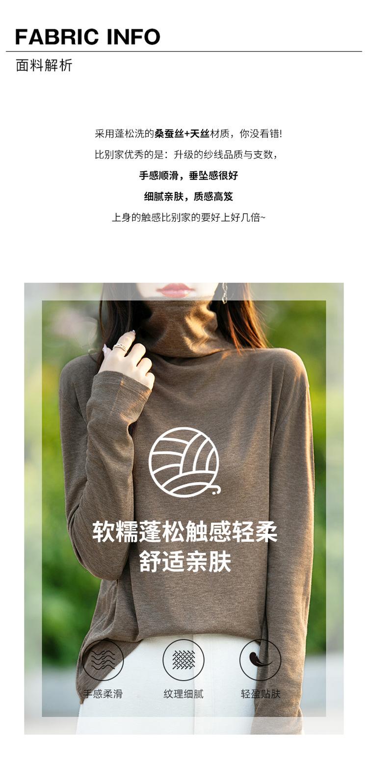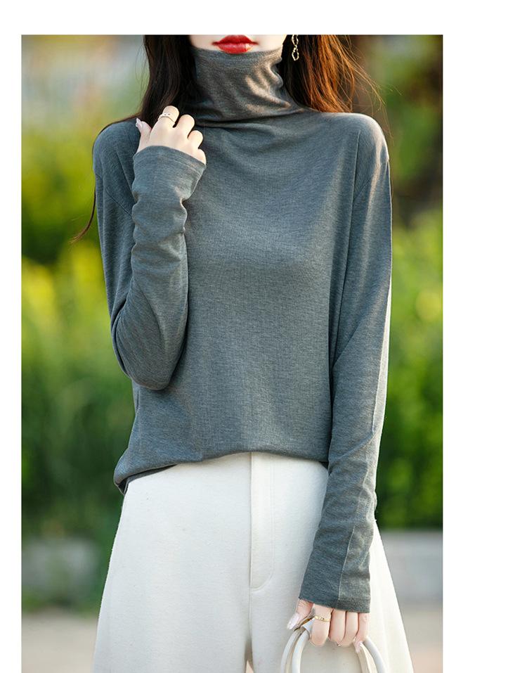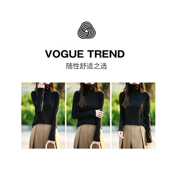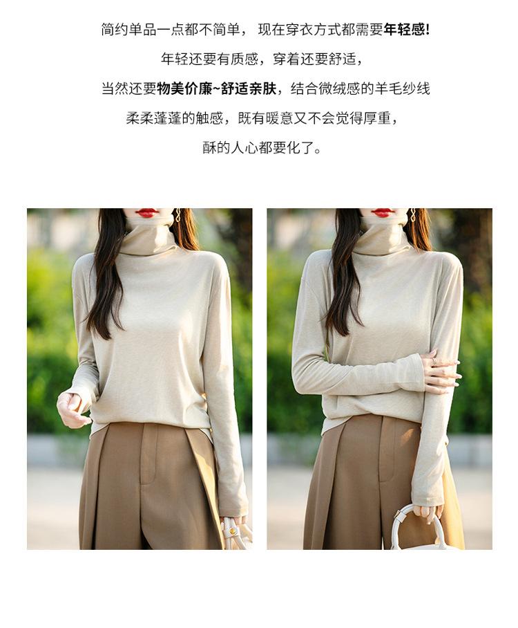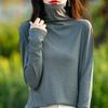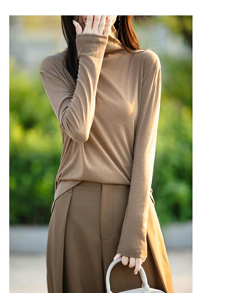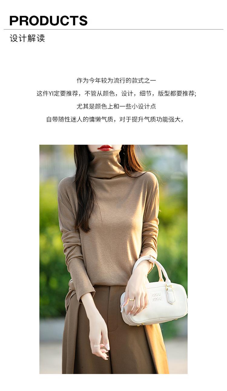 2024 Principios de Otoño Nuevo Tejido de Punto de Cuello Pile de Tencel Lyocell de Manga Larga para Mujer Color Puro Holgado Camiseta Base Top