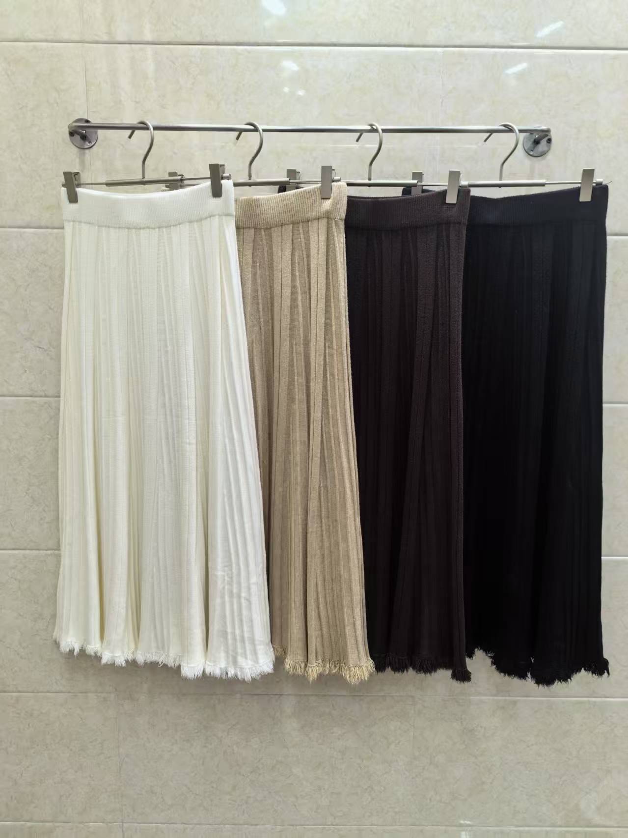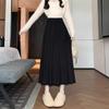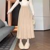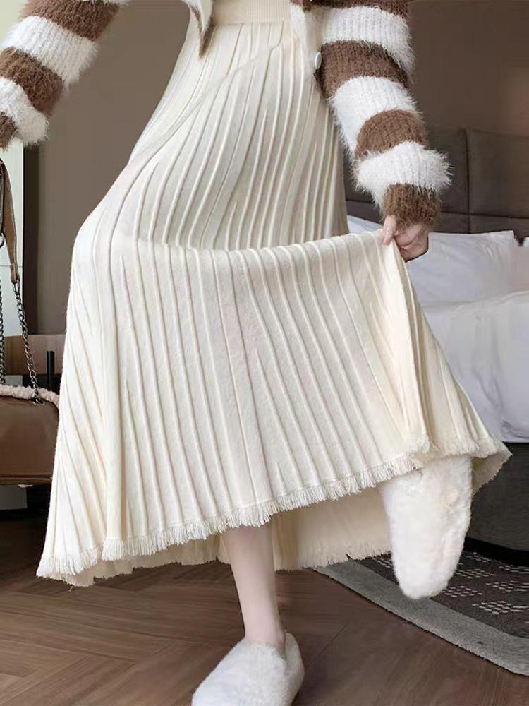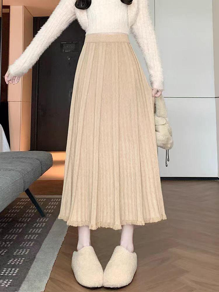 Falda de Punto de Lana Gruesa de Color Sólido para Mujer en Otoño e Invierno Cintura Alta Ajustada Largo Medio Flecos Línea A Dobladillo Amplio Falda Paraguas