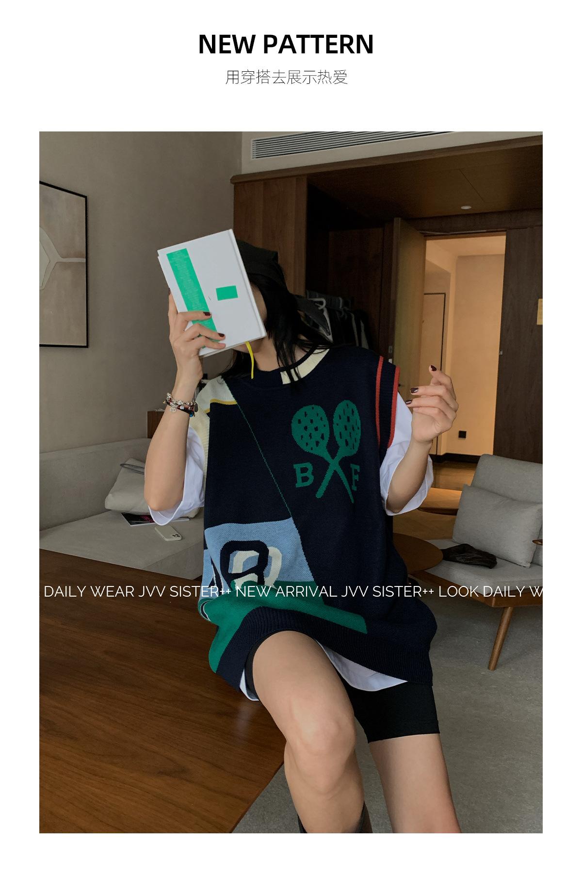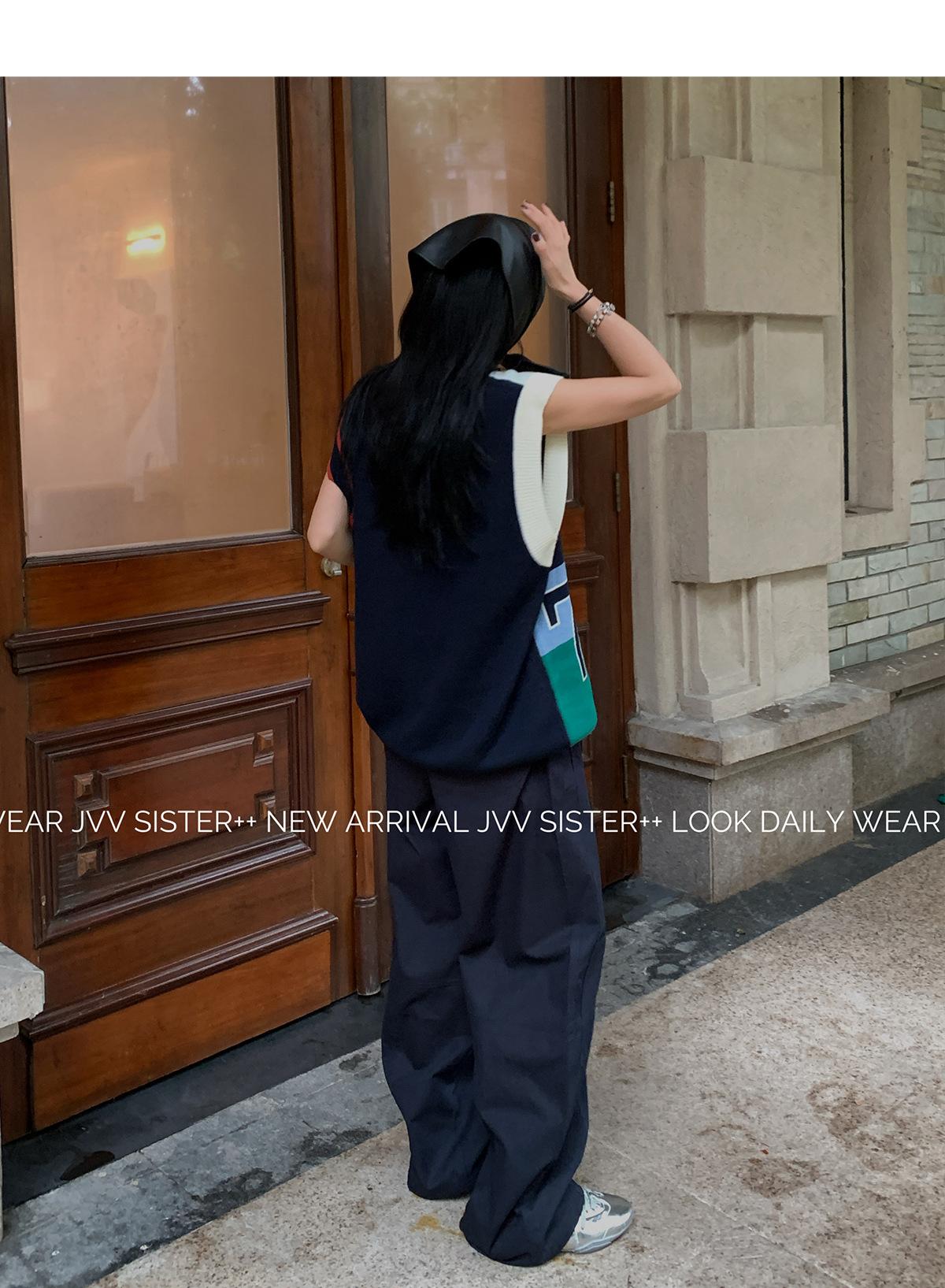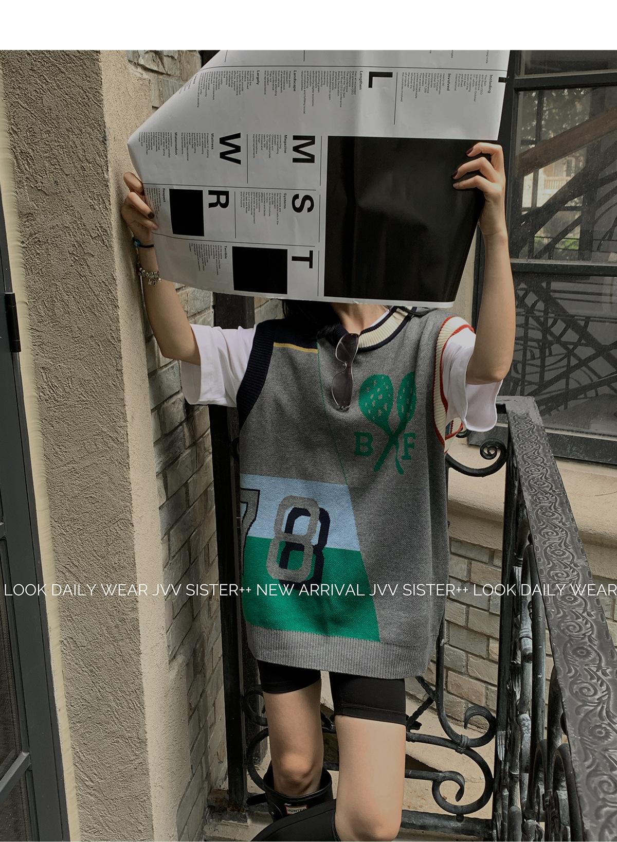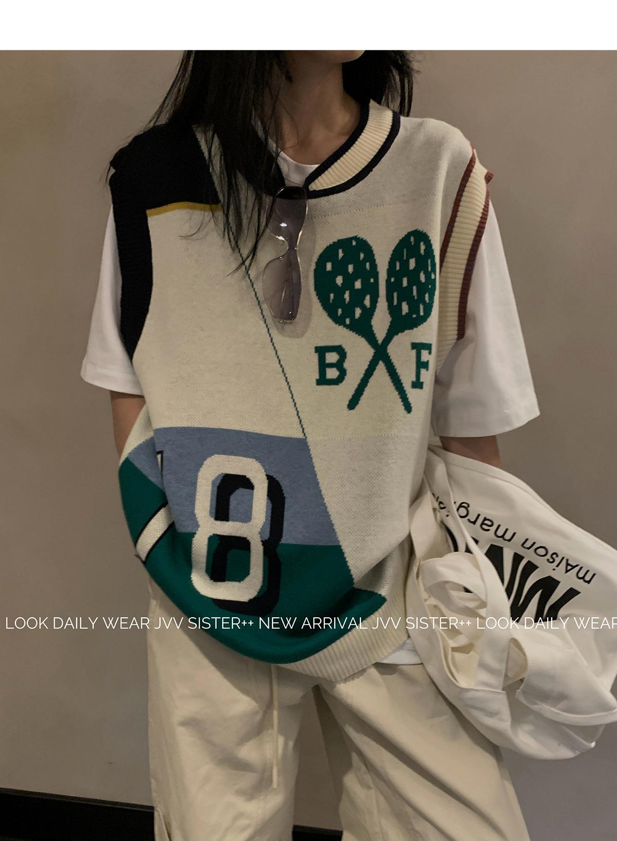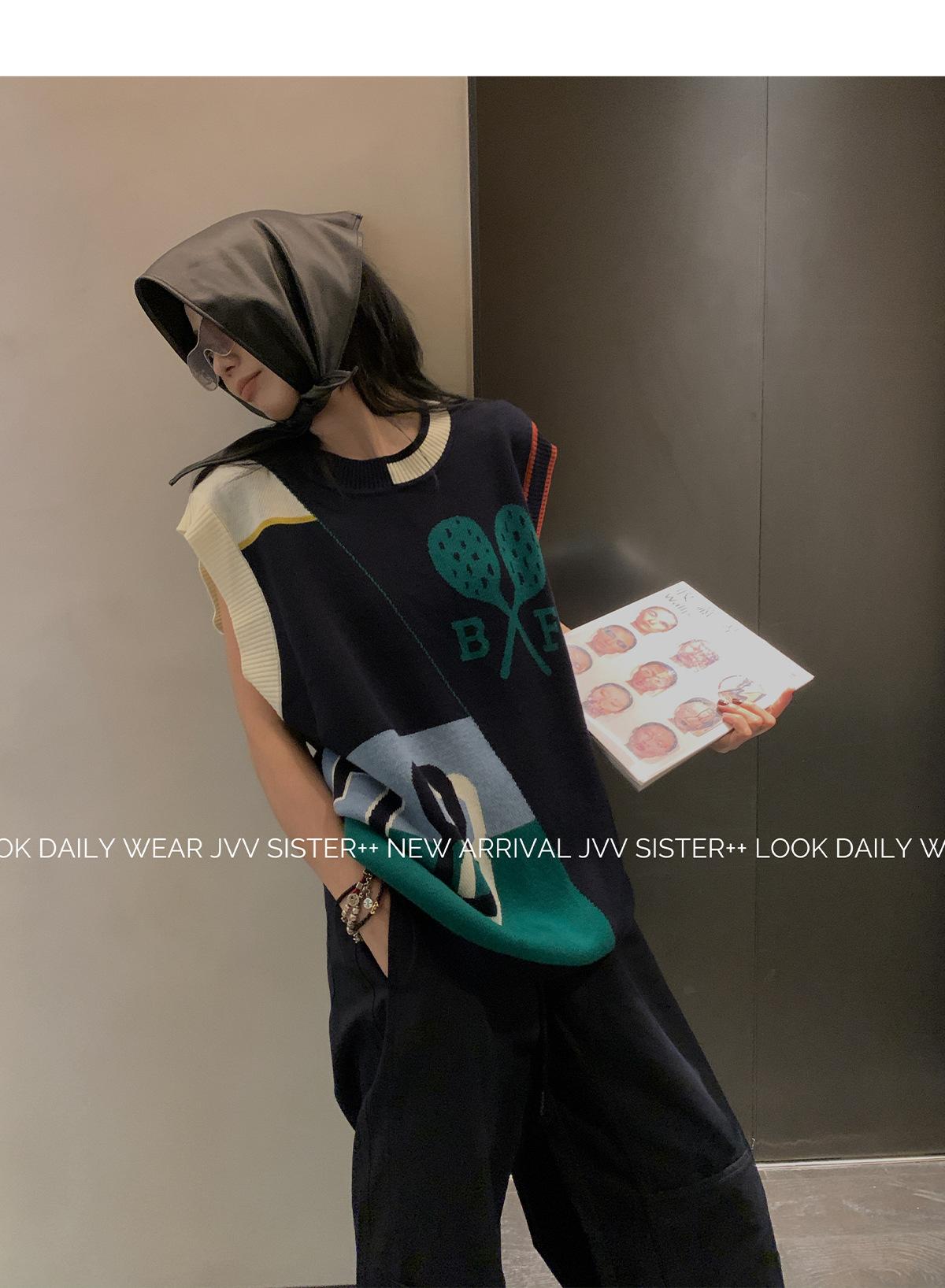 JVV Shisanhang 2025 Otoño Nueva Moda Bloque de Color Letra Casual Top sin Mangas Chaleco de Punto Mujer 90590