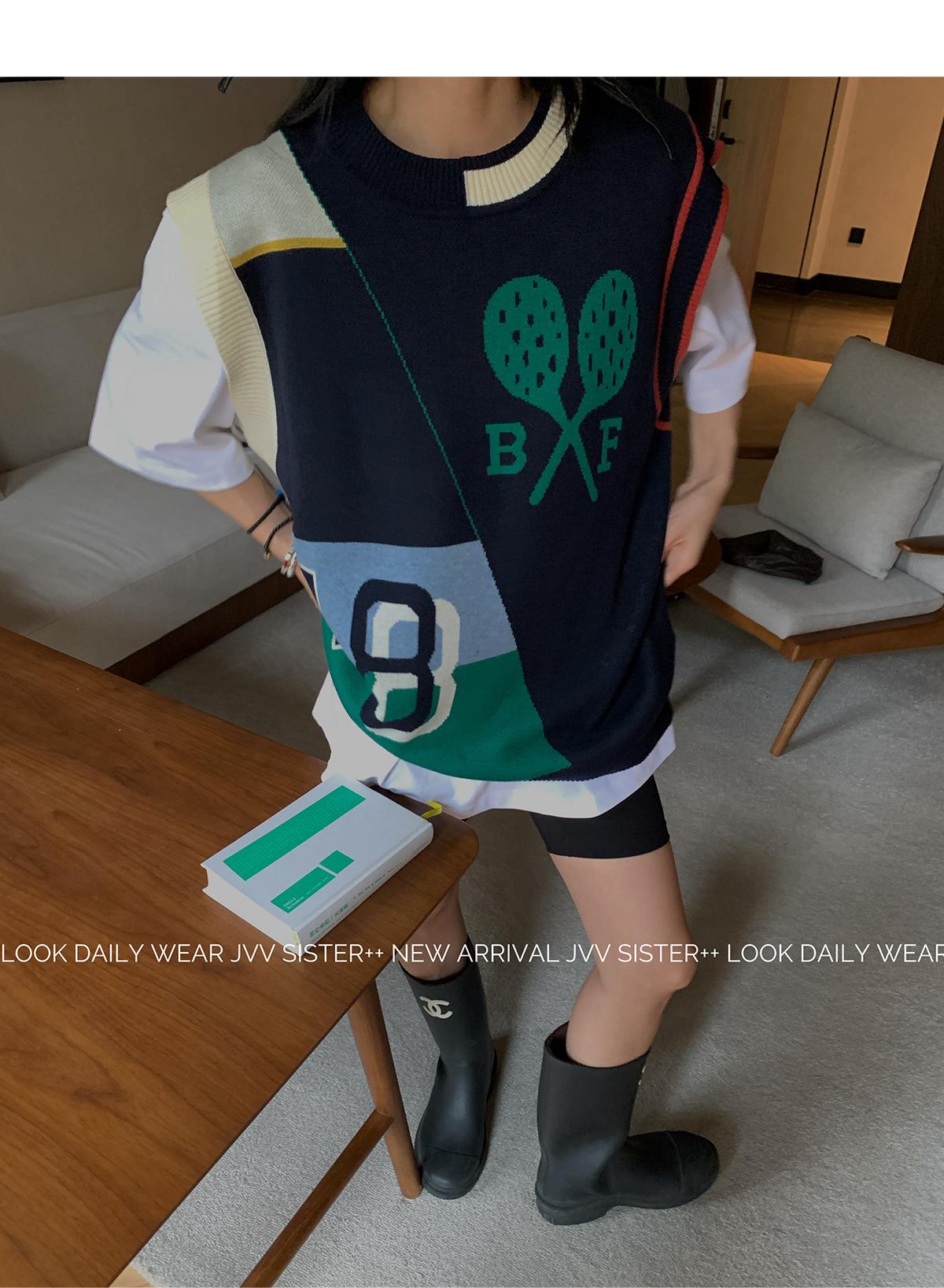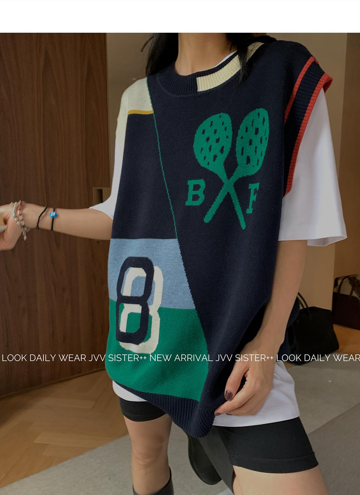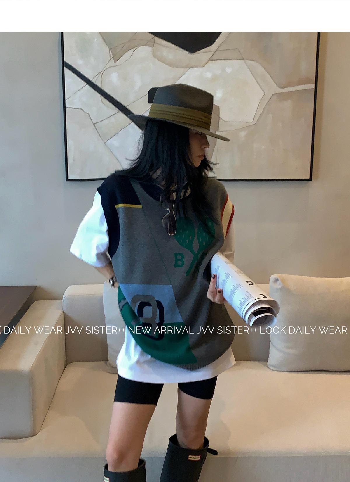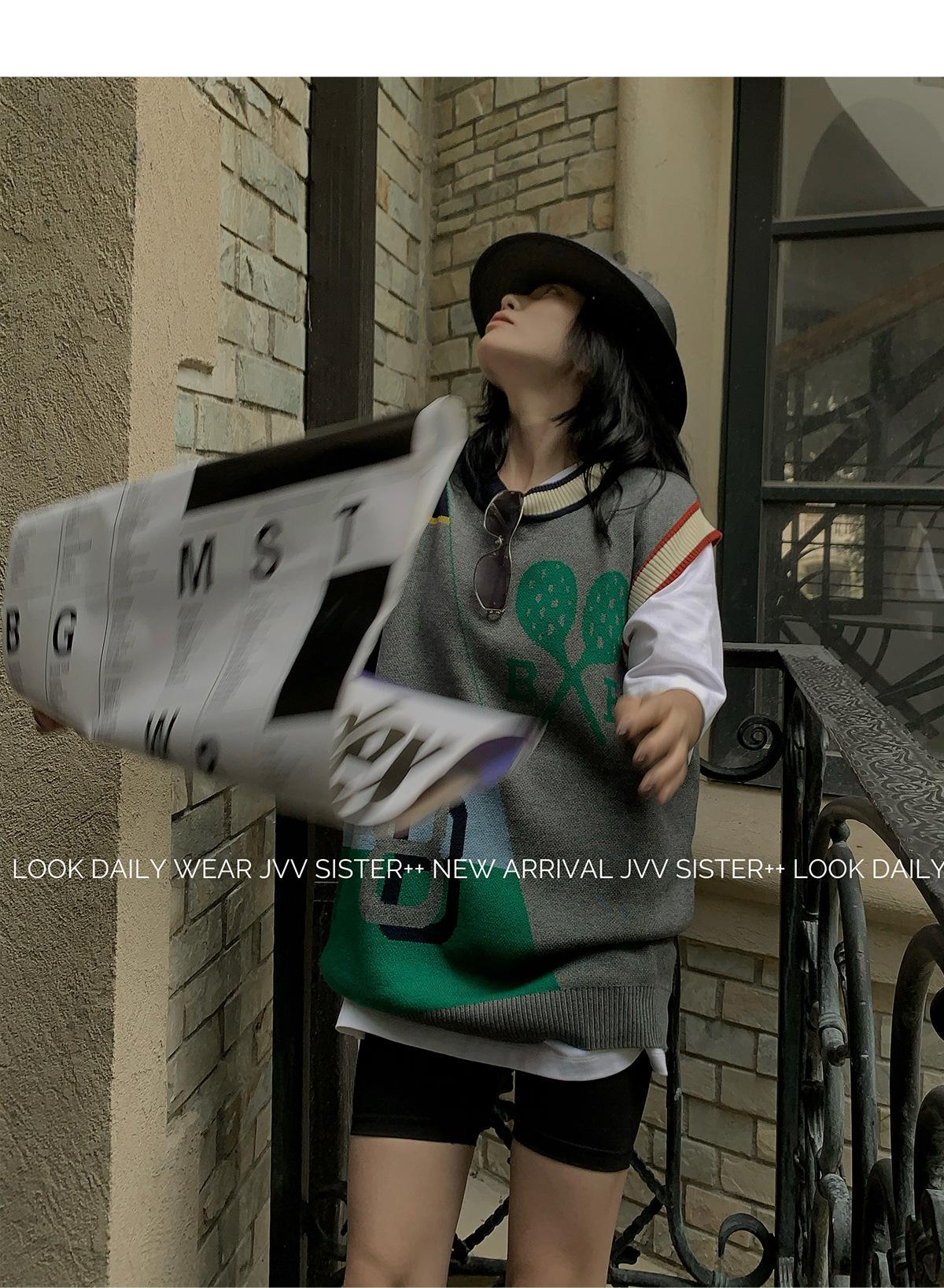JVV Shisanhang 2025 Otoño Nueva Moda Bloque de Color Letra Casual Top sin Mangas Chaleco de Punto Mujer 90590