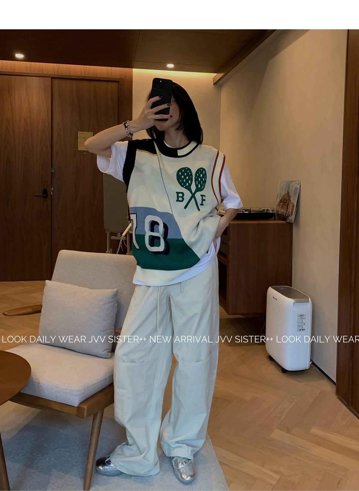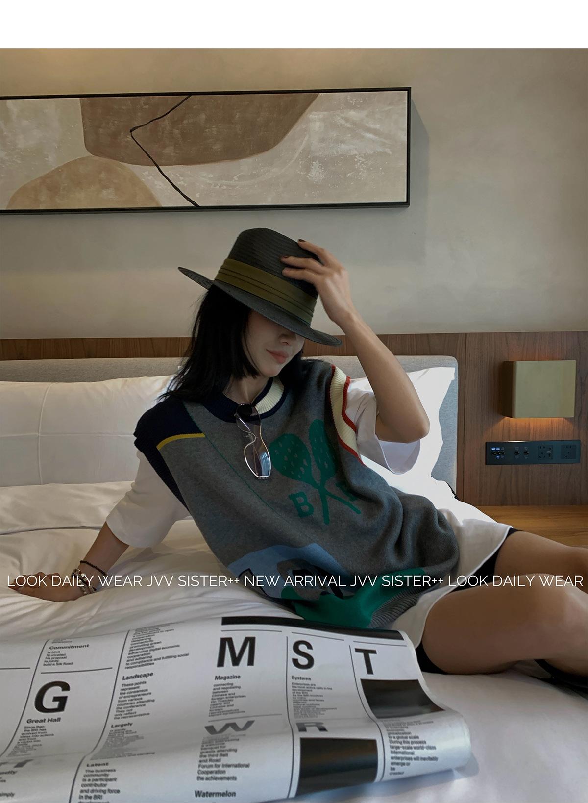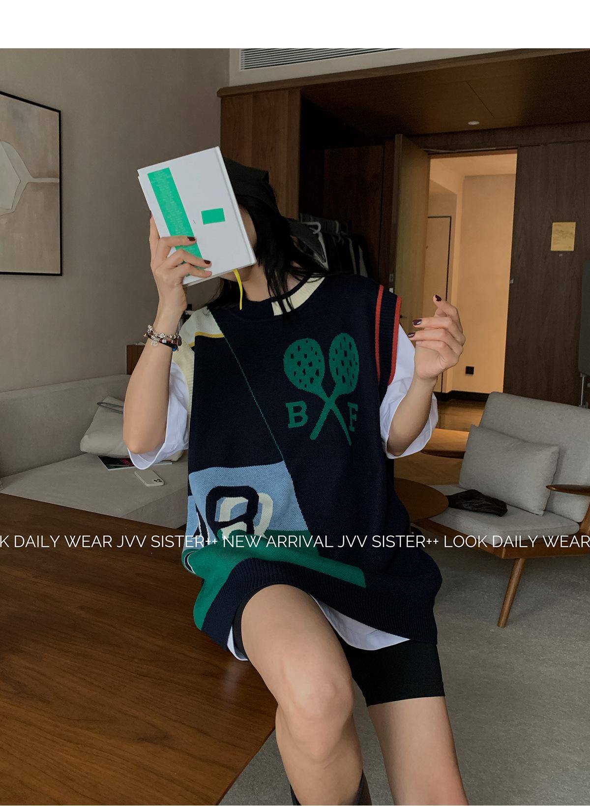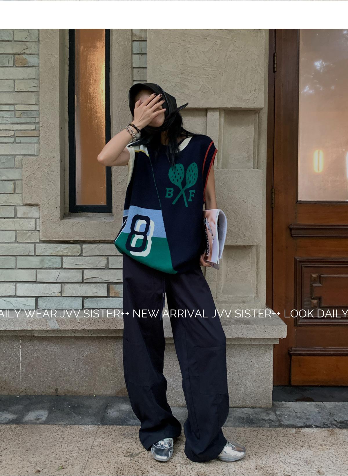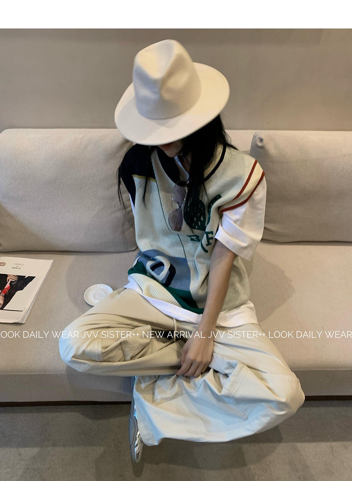 JVV Shisanhang 2025 Otoño Nueva Moda Bloque de Color Letra Casual Top sin Mangas Chaleco de Punto Mujer 90590