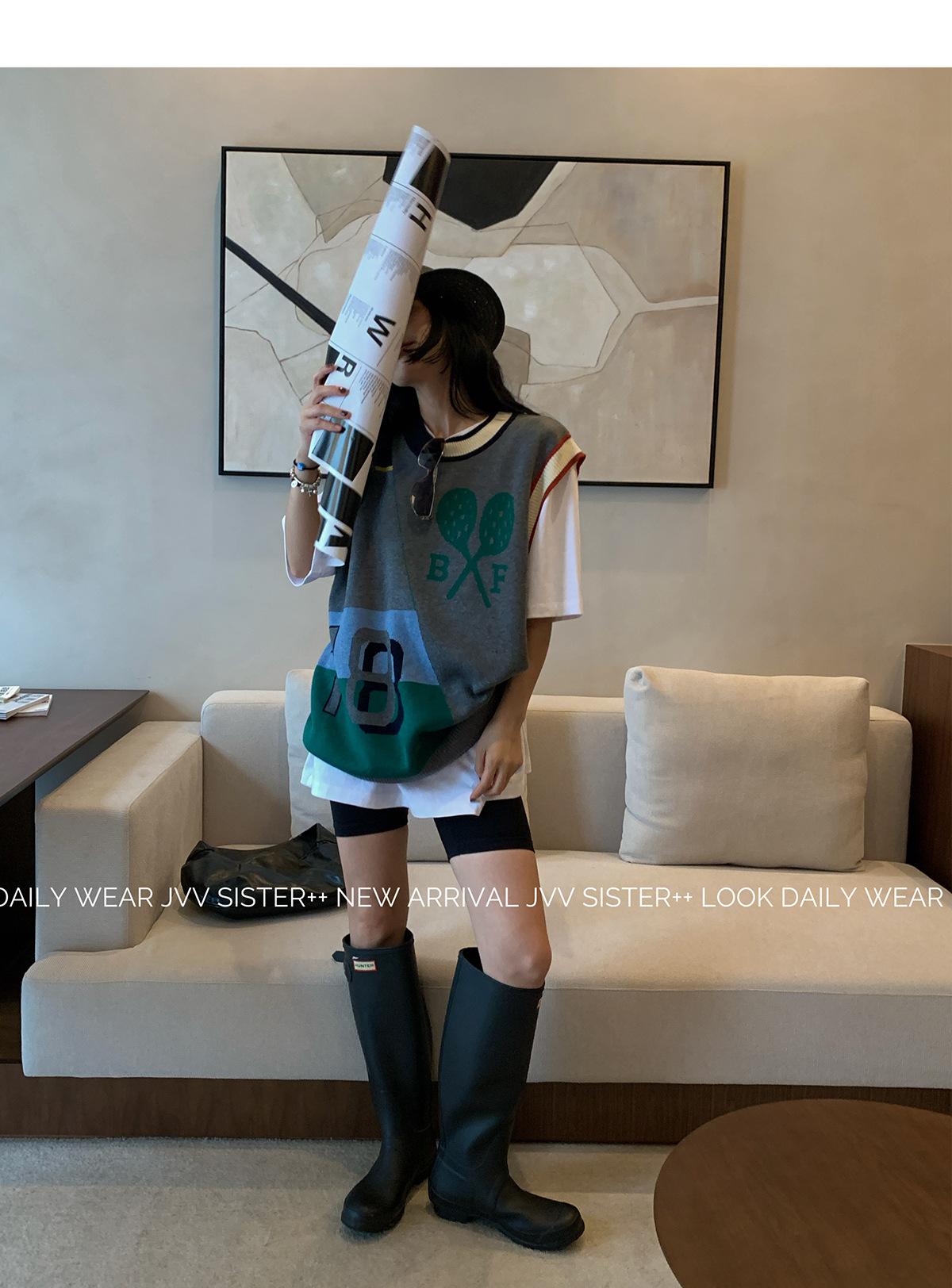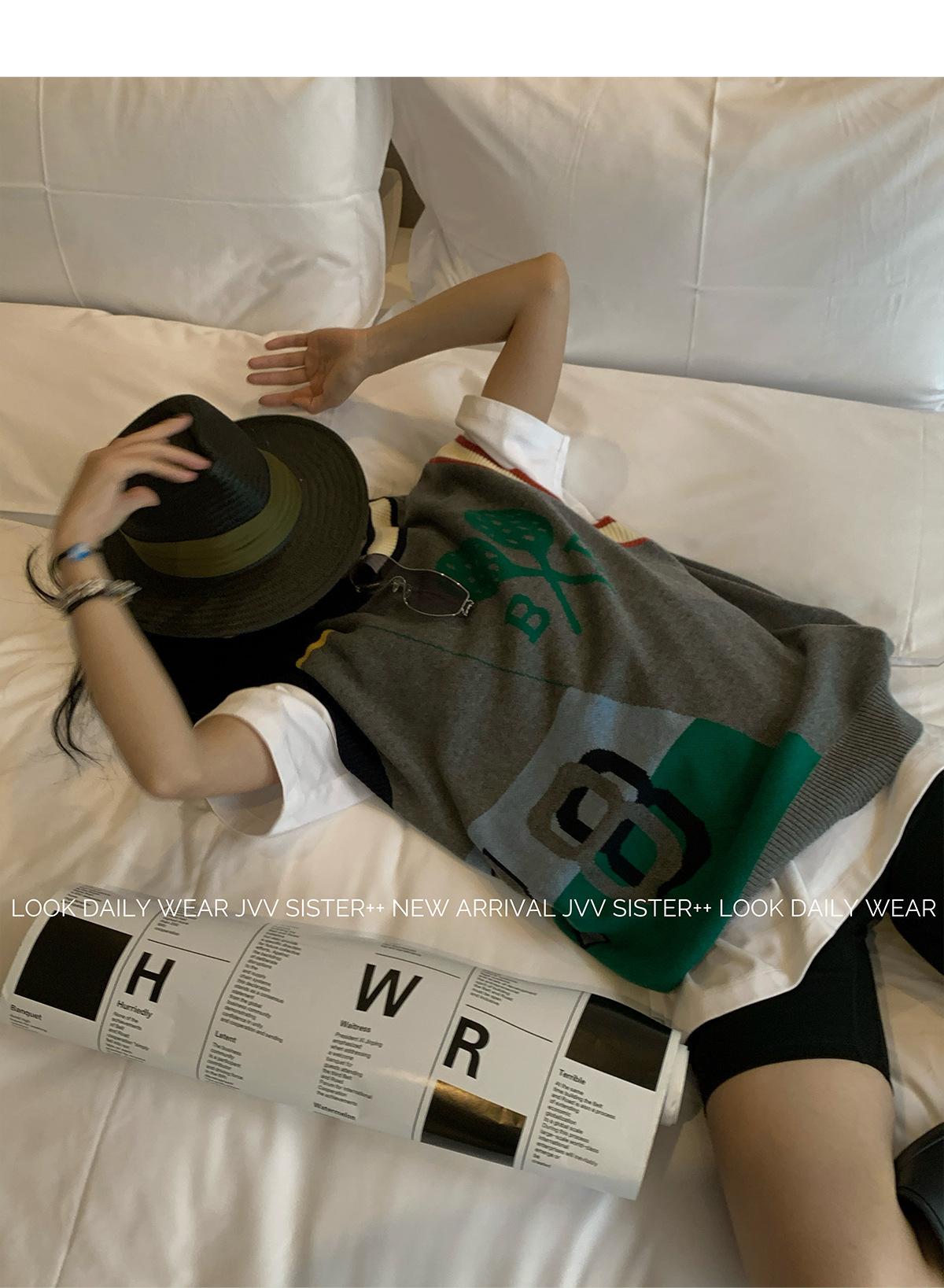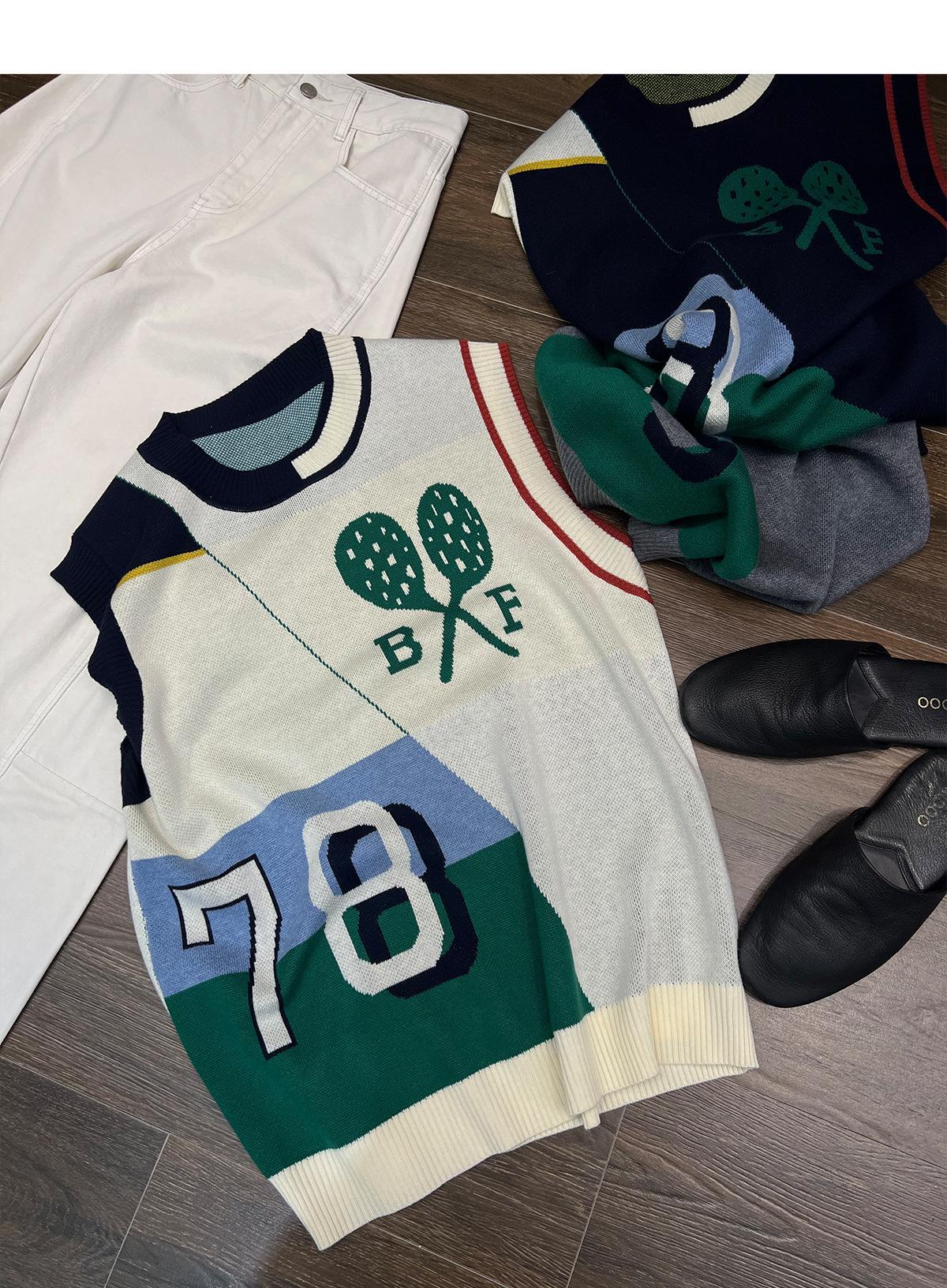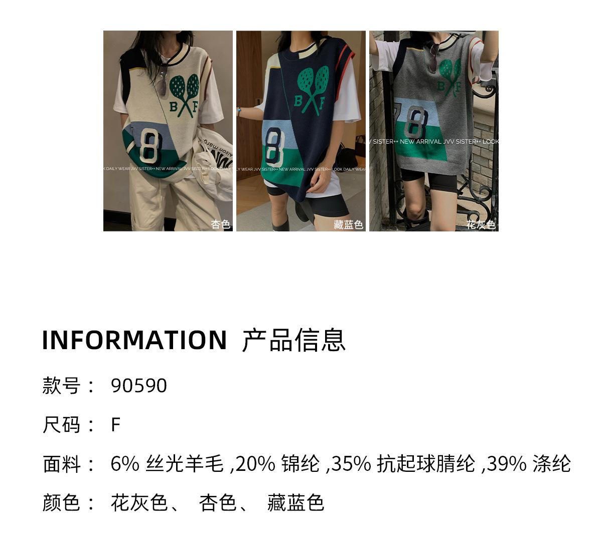 JVV Shisanhang 2025 Otoño Nueva Moda Bloque de Color Letra Casual Top sin Mangas Chaleco de Punto Mujer 90590