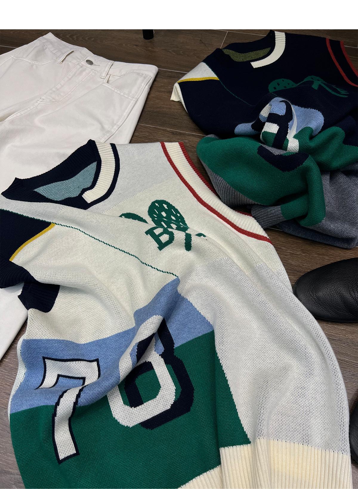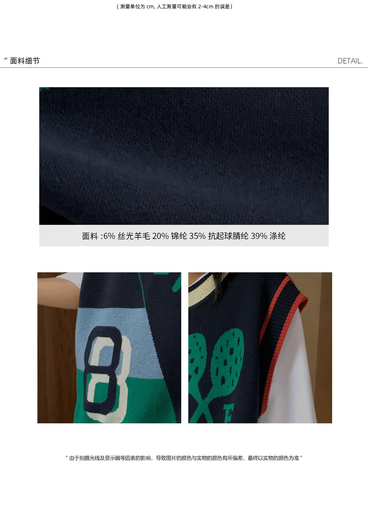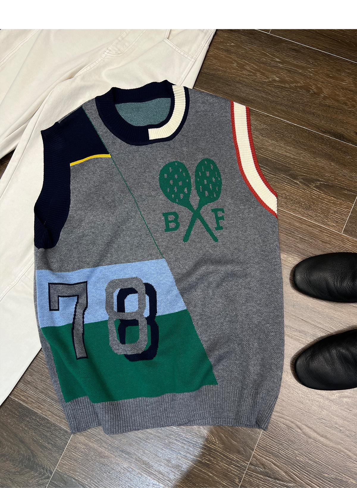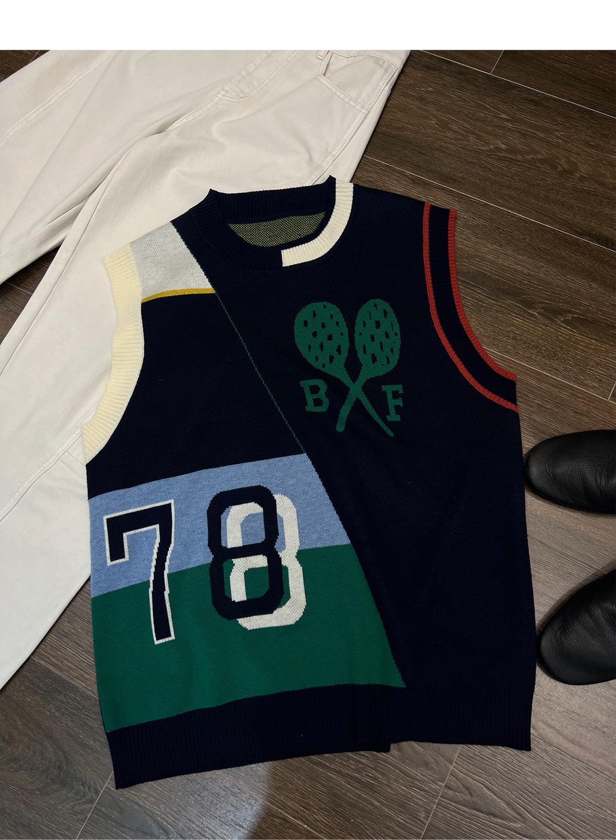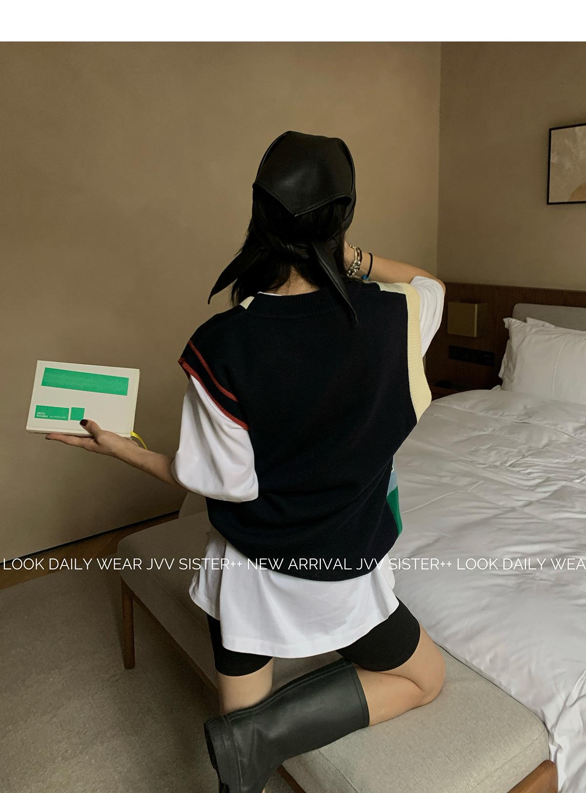 JVV Shisanhang 2025 Otoño Nueva Moda Bloque de Color Letra Casual Top sin Mangas Chaleco de Punto Mujer 90590