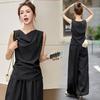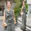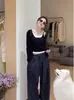 2025 Verano Nueva Moda Minimalista Romántico Versátil Elegante Estilo Occidental Estilo Coreano Traje de Cuello en V Grande