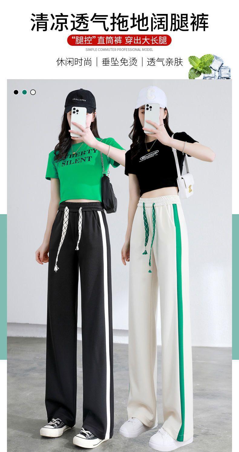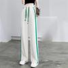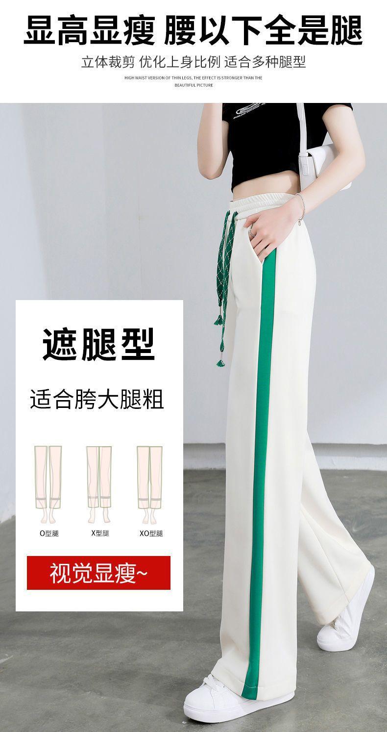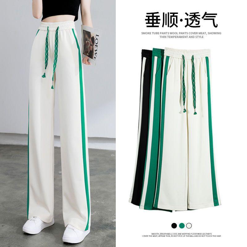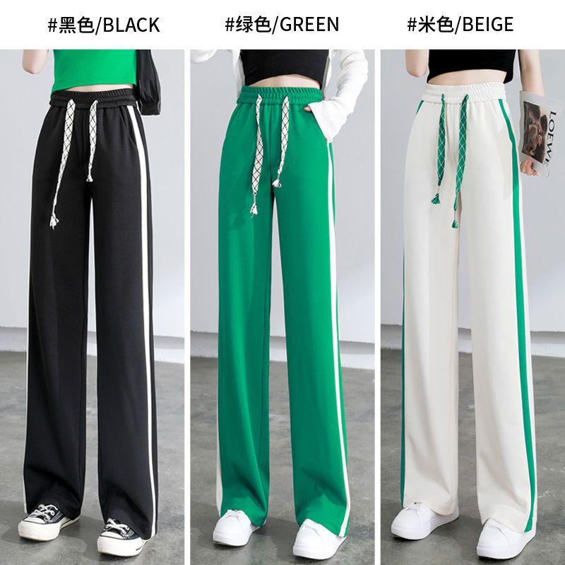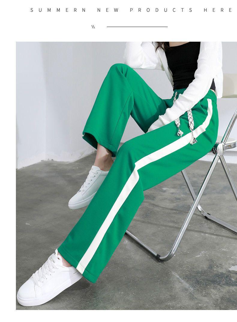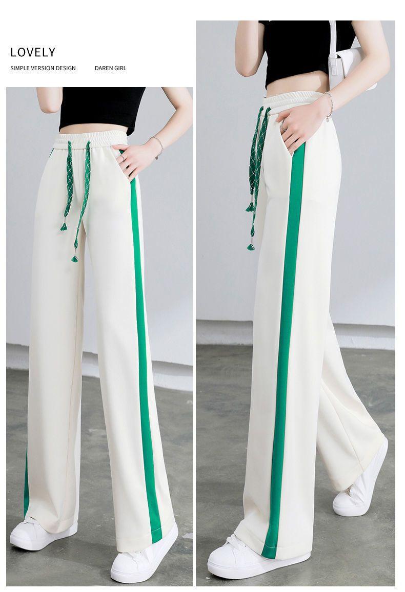 Pantalones de Pierna Ancha con Bloque de Color para Mujer Verano 2025 Estilo Coreano Adelgazantes de Cintura Alta Pantalones Casuales Moda Nuevo Pantalones Deportivos de Pierna Recta