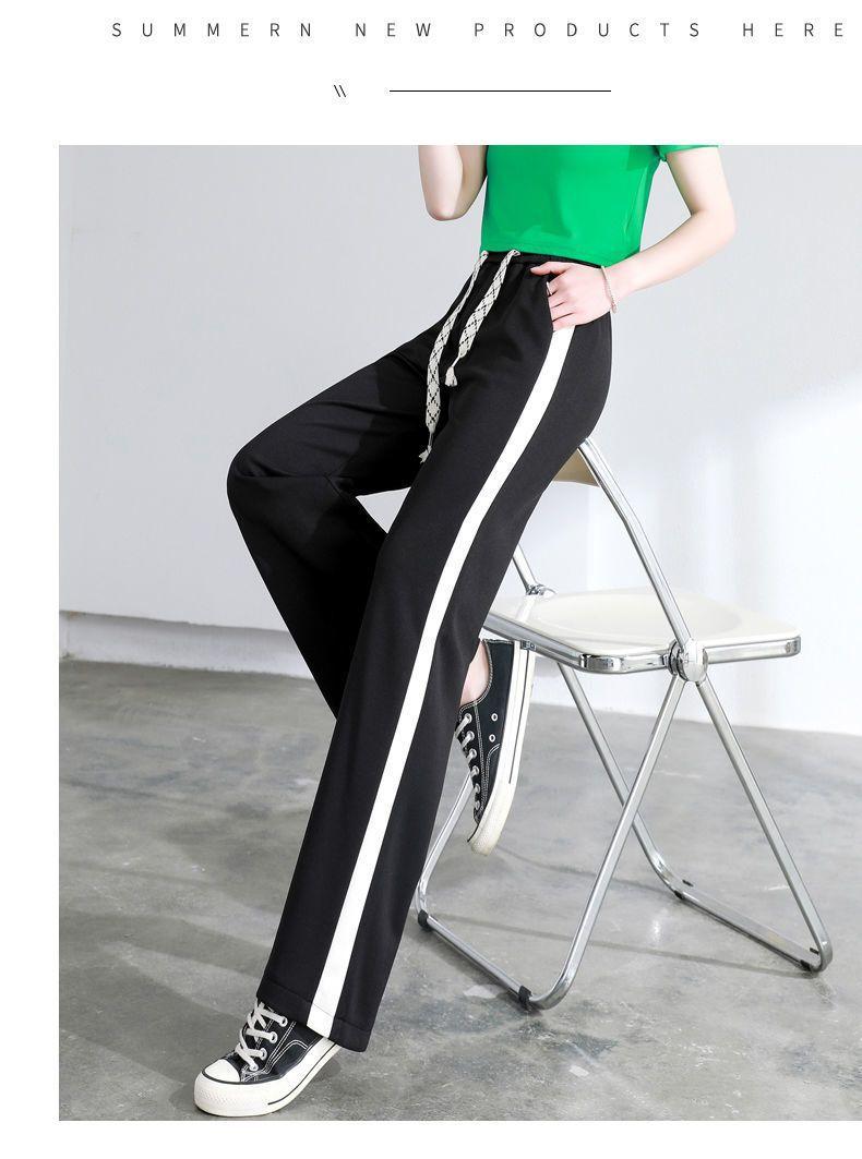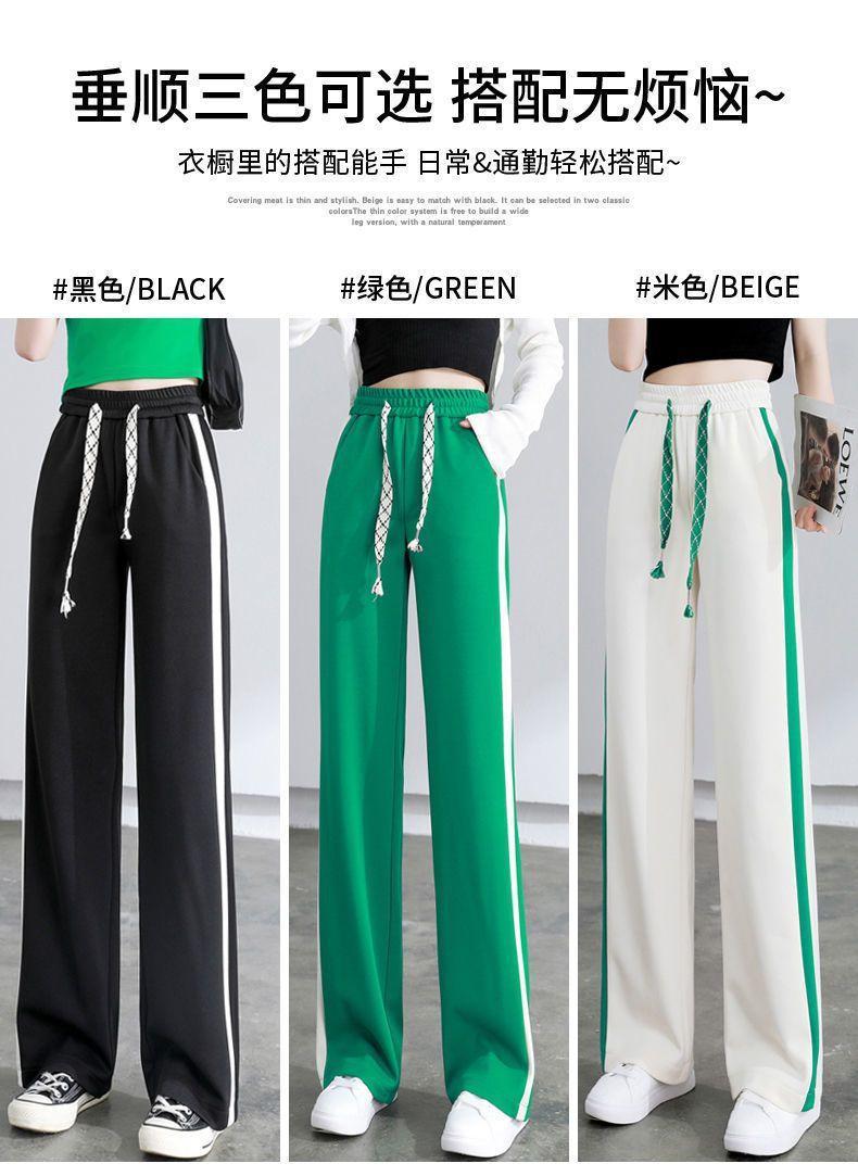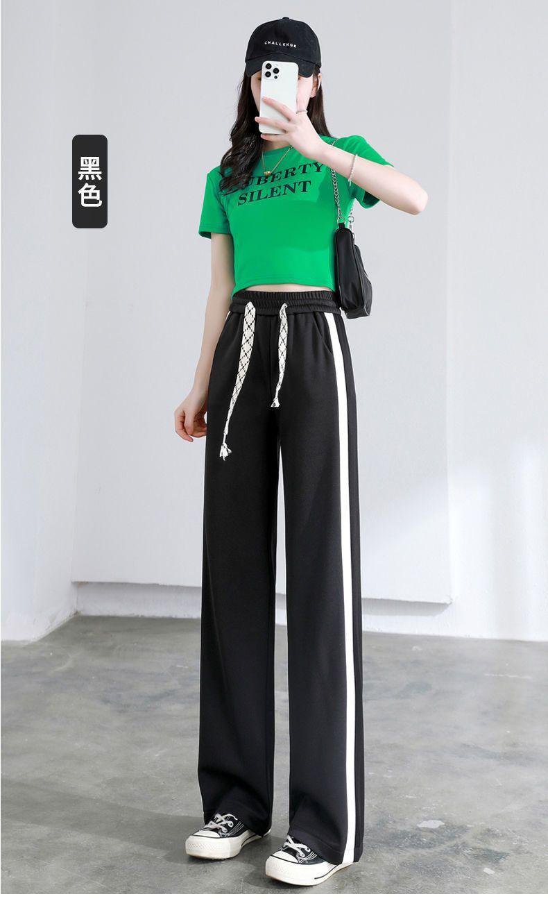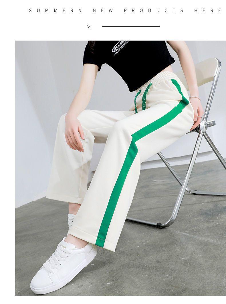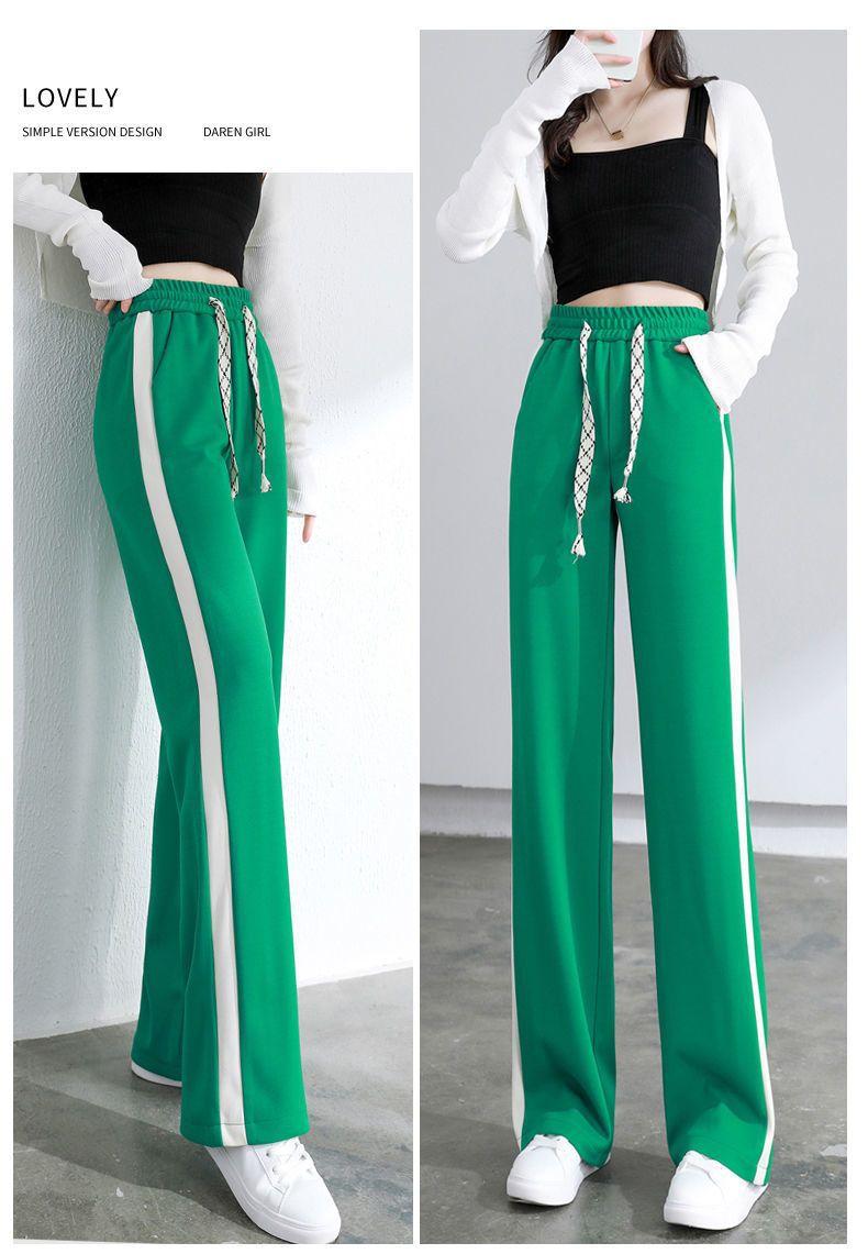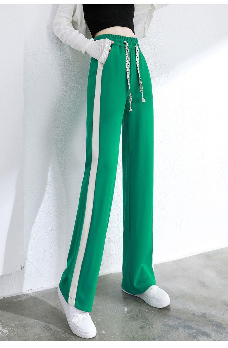 Pantalones de Pierna Ancha con Bloque de Color para Mujer Verano 2025 Estilo Coreano Adelgazantes de Cintura Alta Pantalones Casuales Moda Nuevo Pantalones Deportivos de Pierna Recta