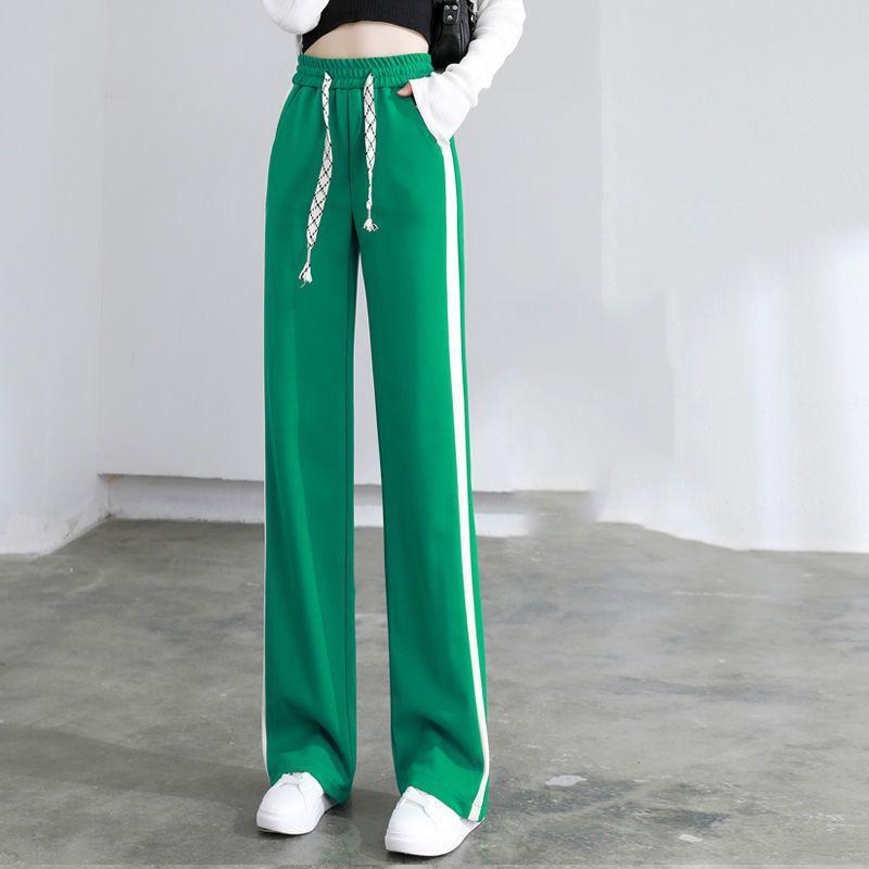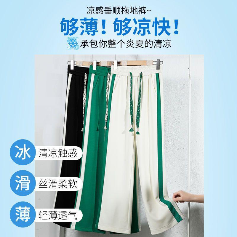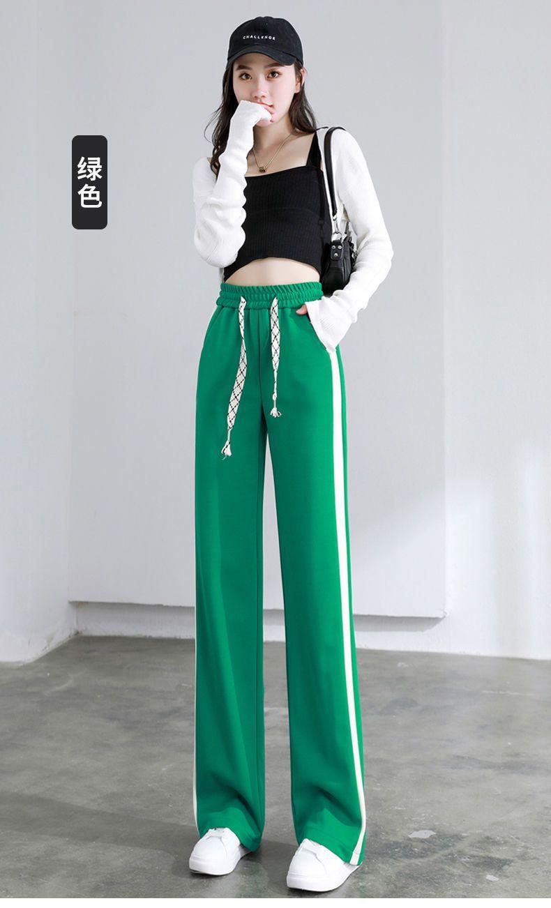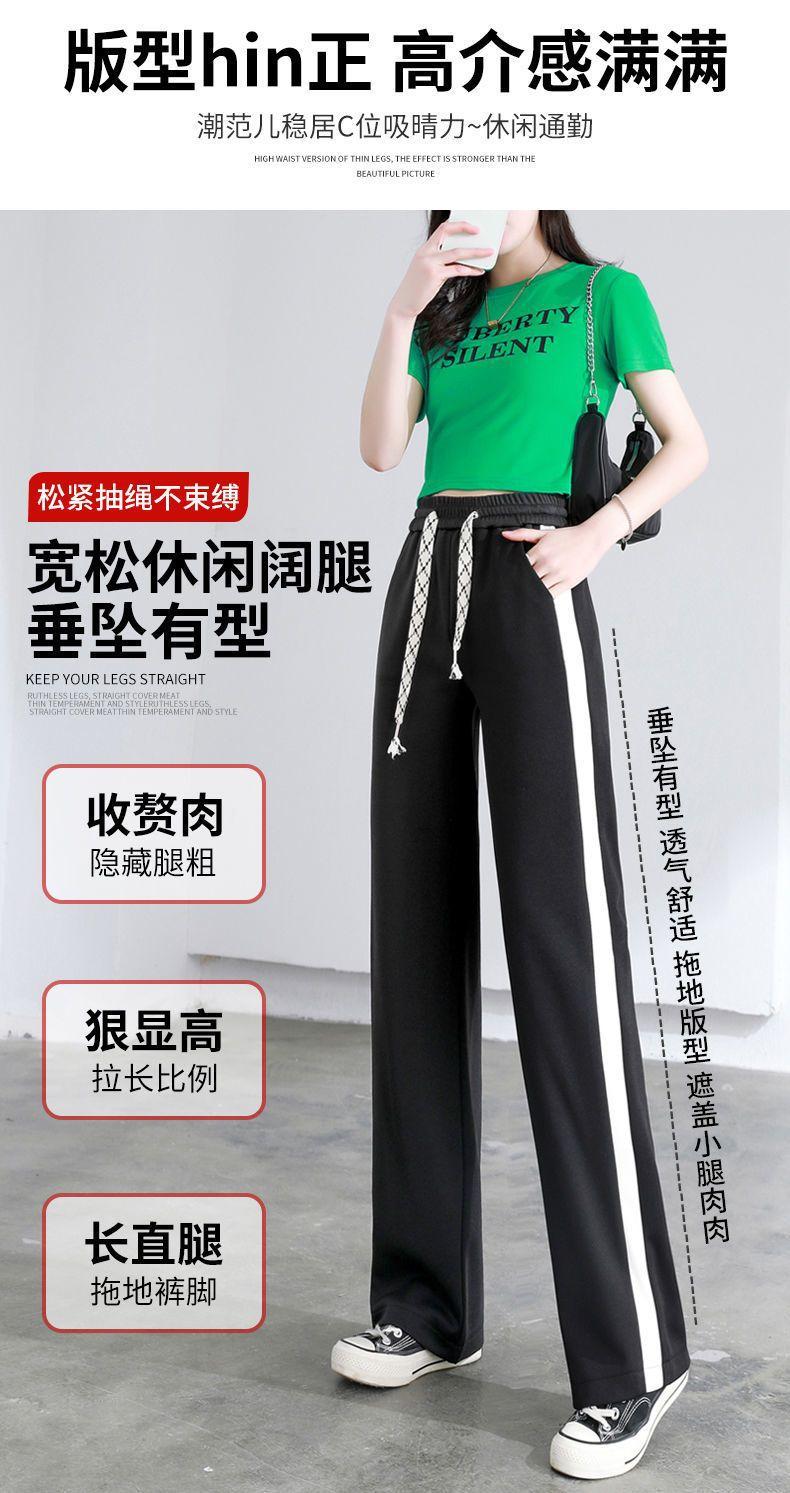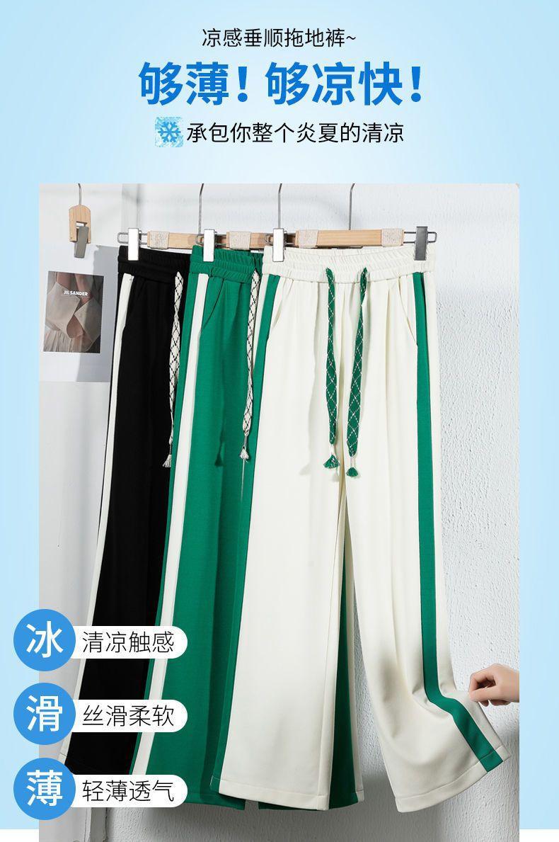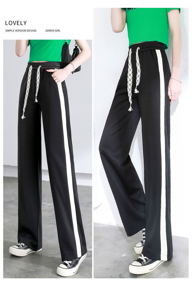 Pantalones de Pierna Ancha con Bloque de Color para Mujer Verano 2025 Estilo Coreano Adelgazantes de Cintura Alta Pantalones Casuales Moda Nuevo Pantalones Deportivos de Pierna Recta