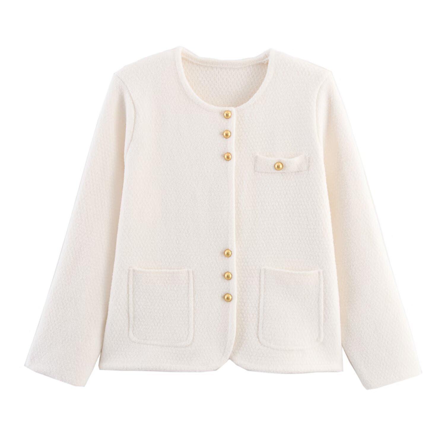 Otoño 2025 Ropa Nueva para Mujer Estilo Europeo y Americano Cuello Redondo con Tres Botones Suéter Cárdigan de Punto de Manga Larga