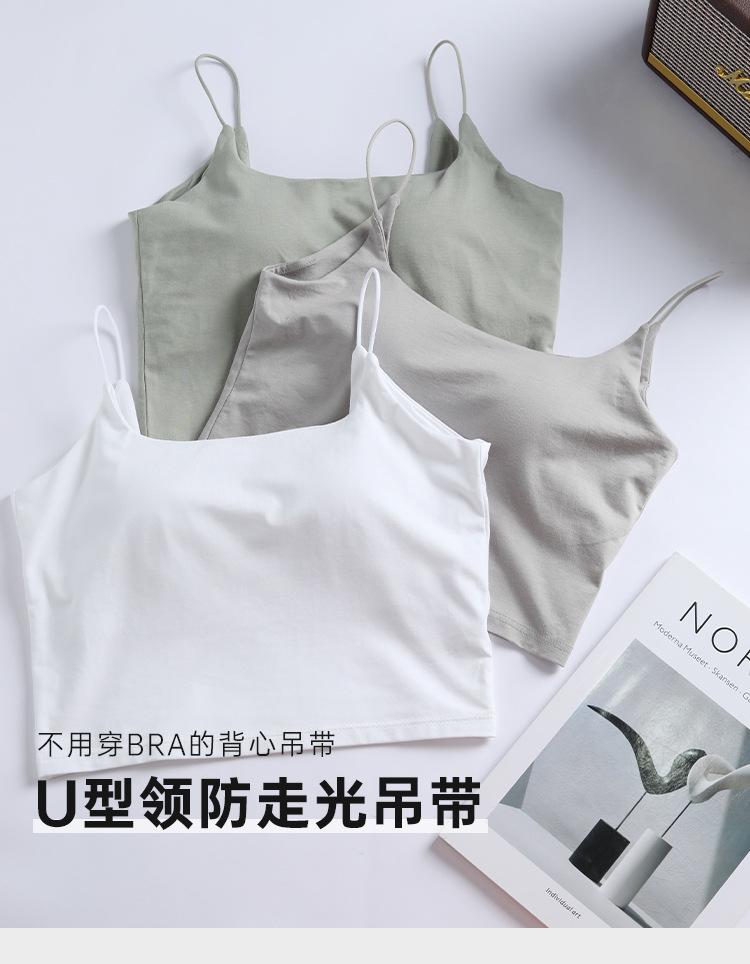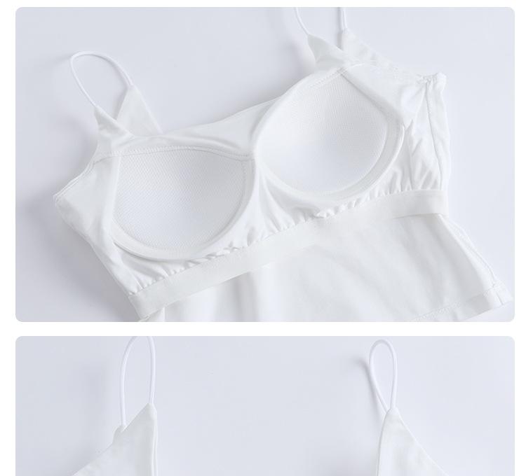 Tirante Blanco con Almohadilla en el Pecho Chaleco Corto Pequeño Ropa Exterior de Verano para Mujer Top Básico de Una Pieza con Sujetador de Espalda Hermosa en Forma de U