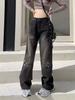 Jeans Rectos de Cintura Alta Retro Americanos para Mujer Primavera Nuevo Bordado de Estrella High Street Holgados Adelgazantes Pantalones de Pierna Ancha