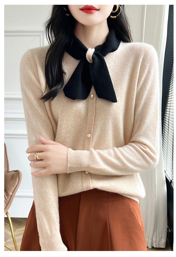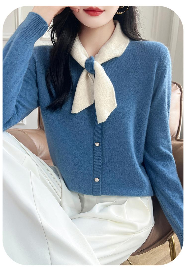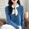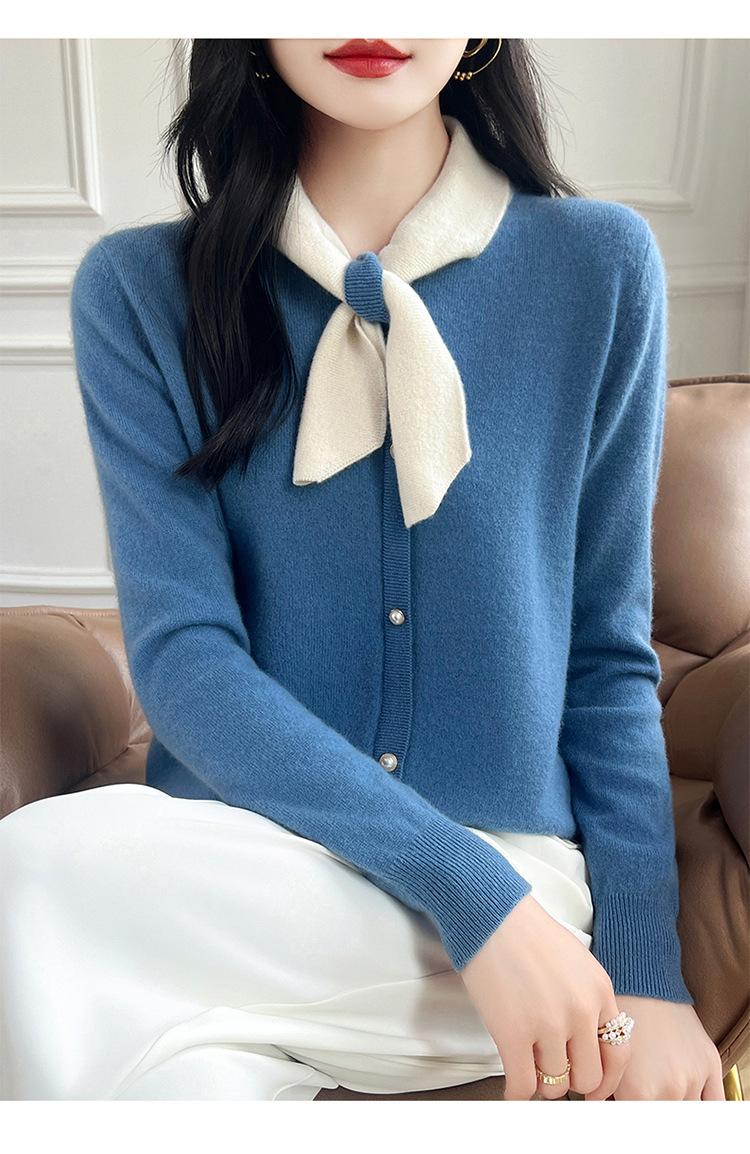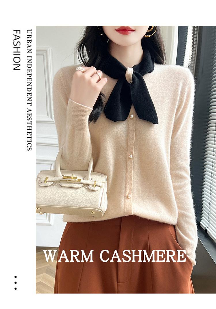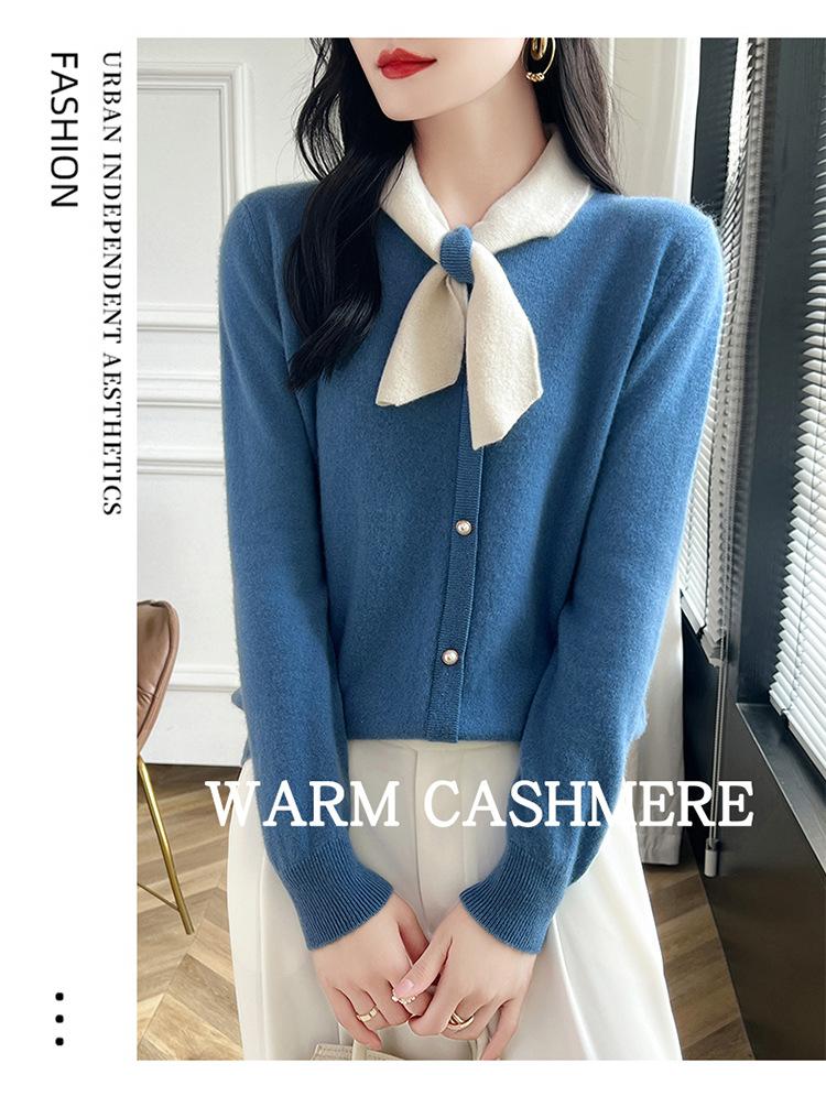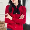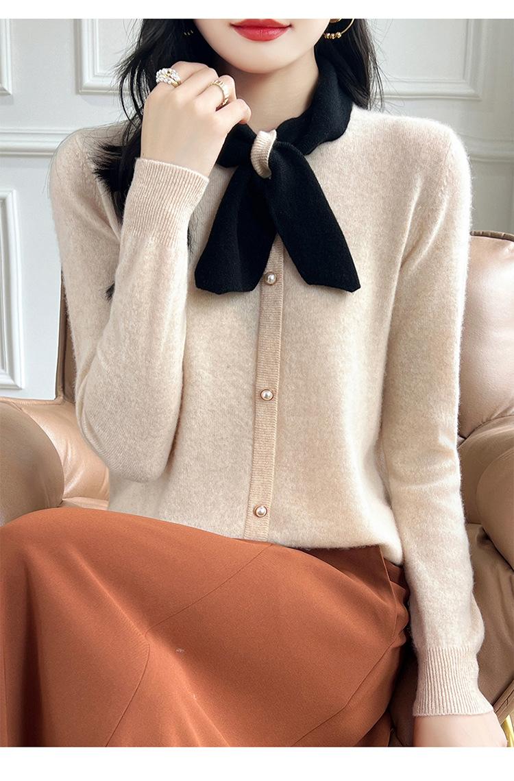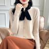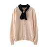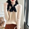 Suéter Tejido con Cuello de Lazo Otoño e Invierno Nuevo Estilo Suave y Perezoso Suéter de Cachemira Elegante Sentido del Diseño Abrigo Suéter Mujer