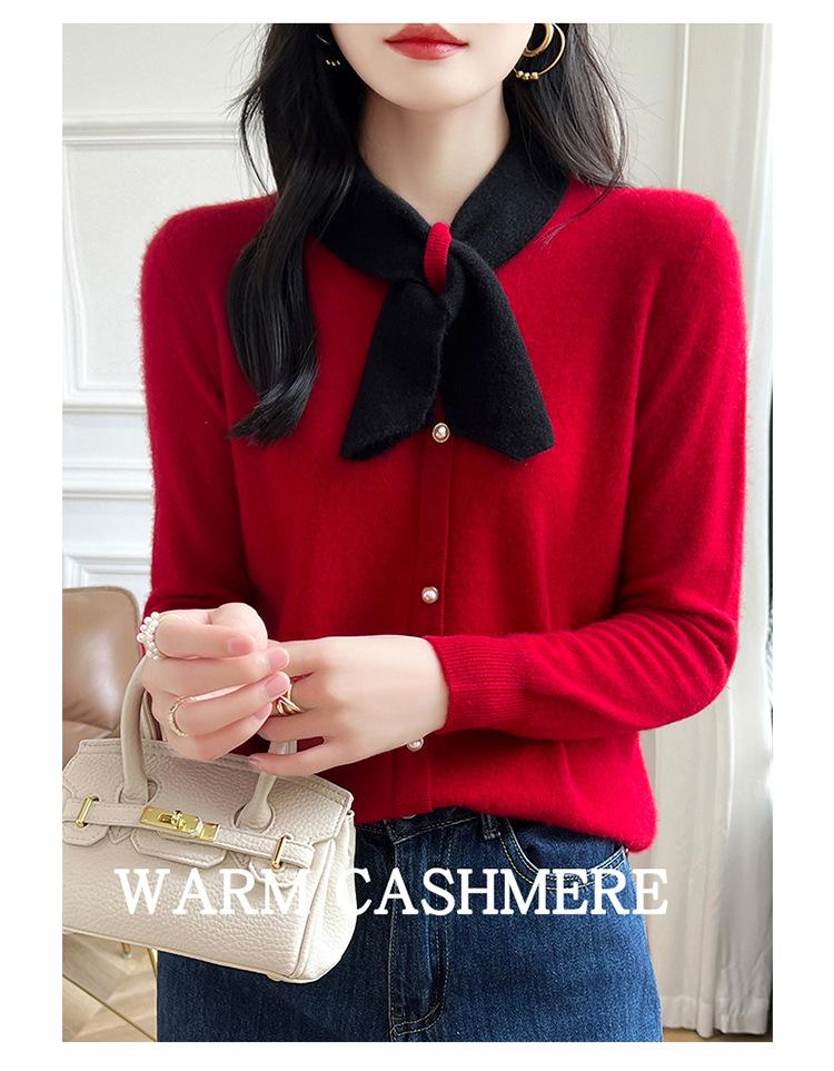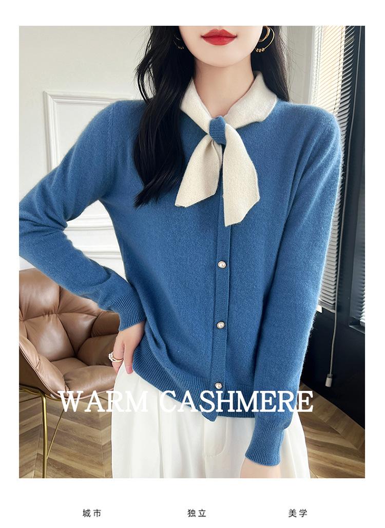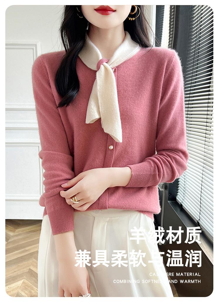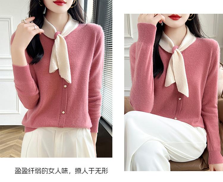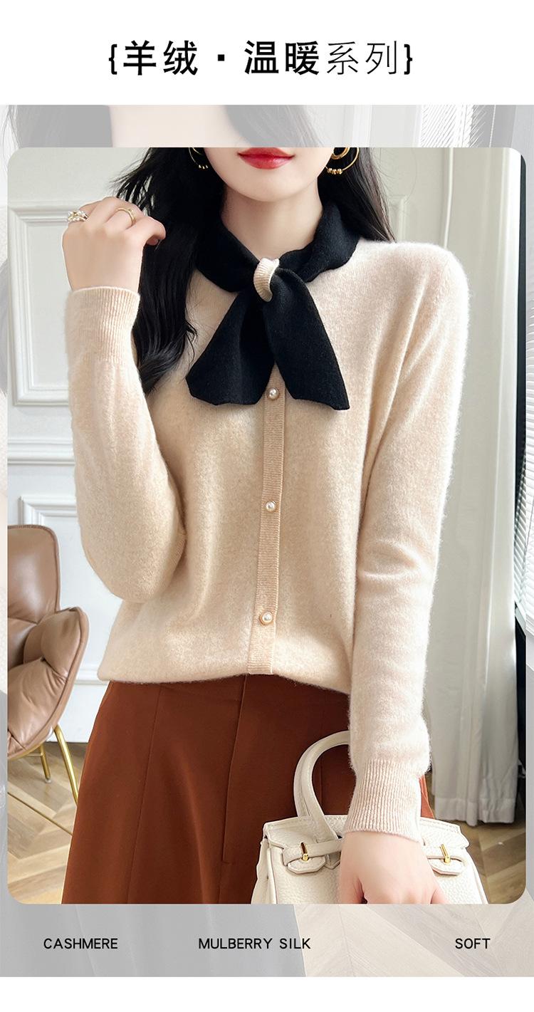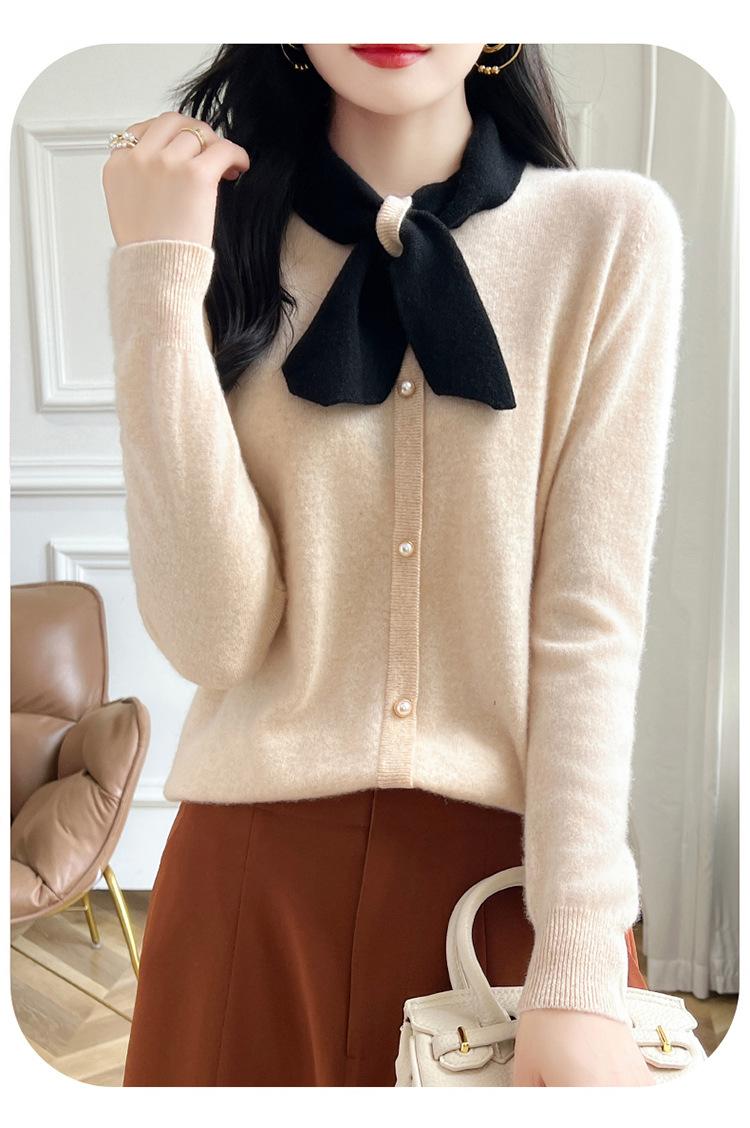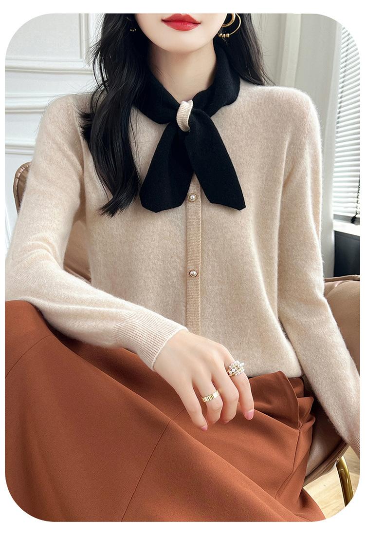 Suéter Tejido con Cuello de Lazo Otoño e Invierno Nuevo Estilo Suave y Perezoso Suéter de Cachemira Elegante Sentido del Diseño Abrigo Suéter Mujer