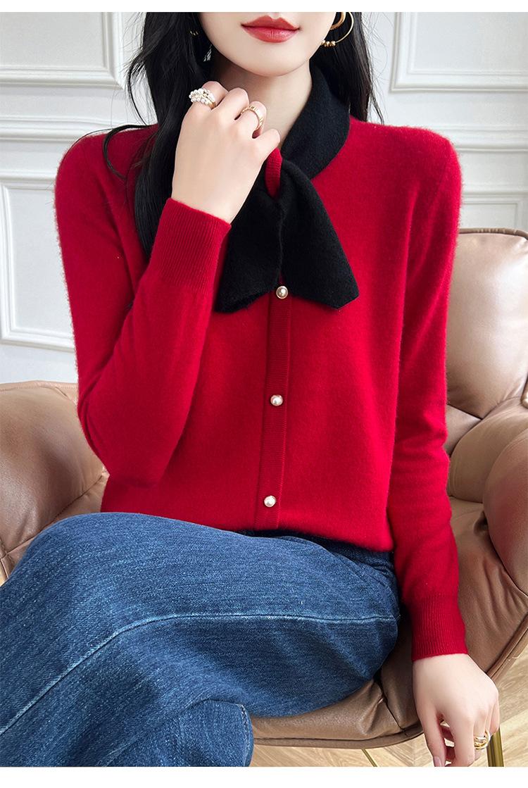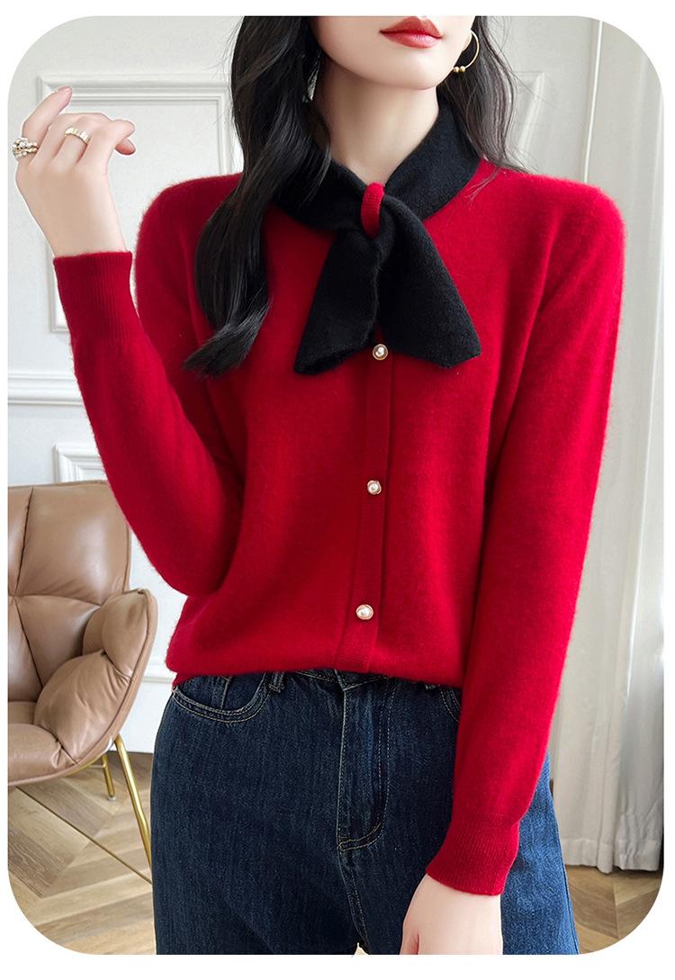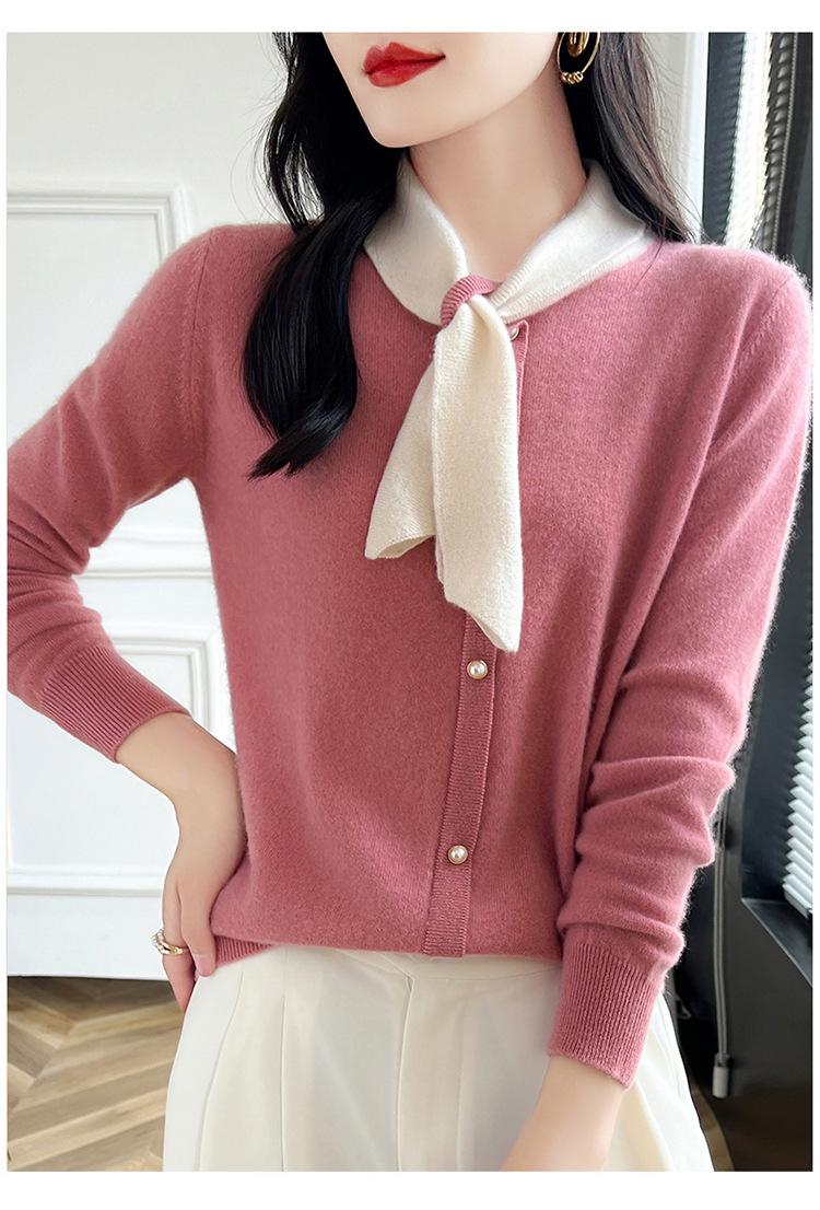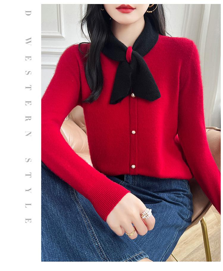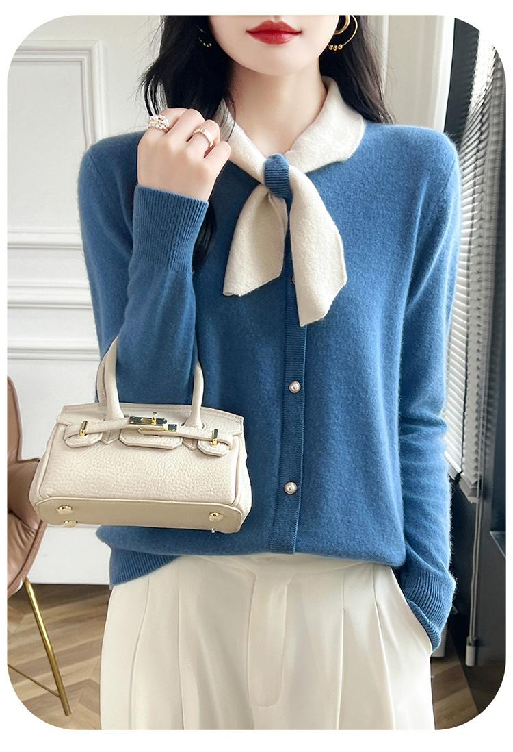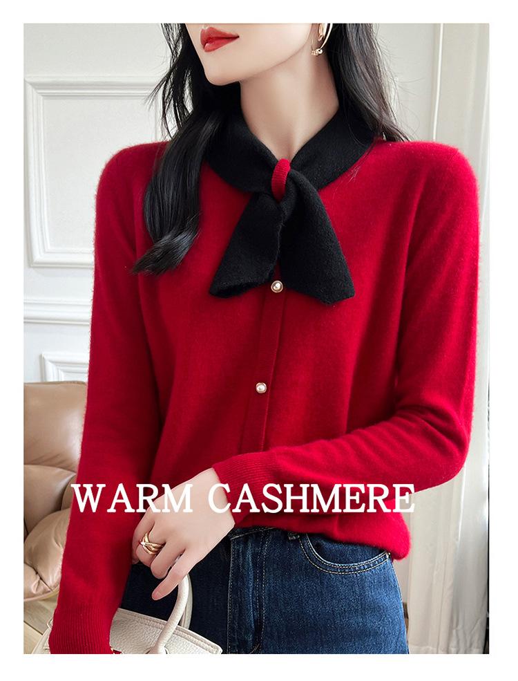 Suéter Tejido con Cuello de Lazo Otoño e Invierno Nuevo Estilo Suave y Perezoso Suéter de Cachemira Elegante Sentido del Diseño Abrigo Suéter Mujer