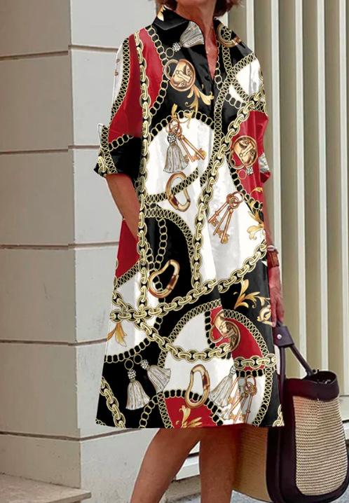 2024 Amazon transfronterizo nueva moda estampado cuello de camisa largo ropa de mujer