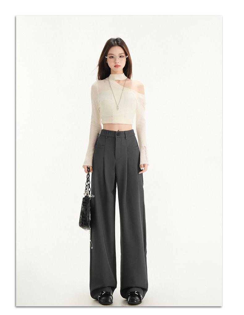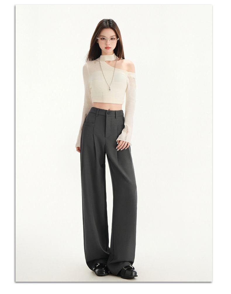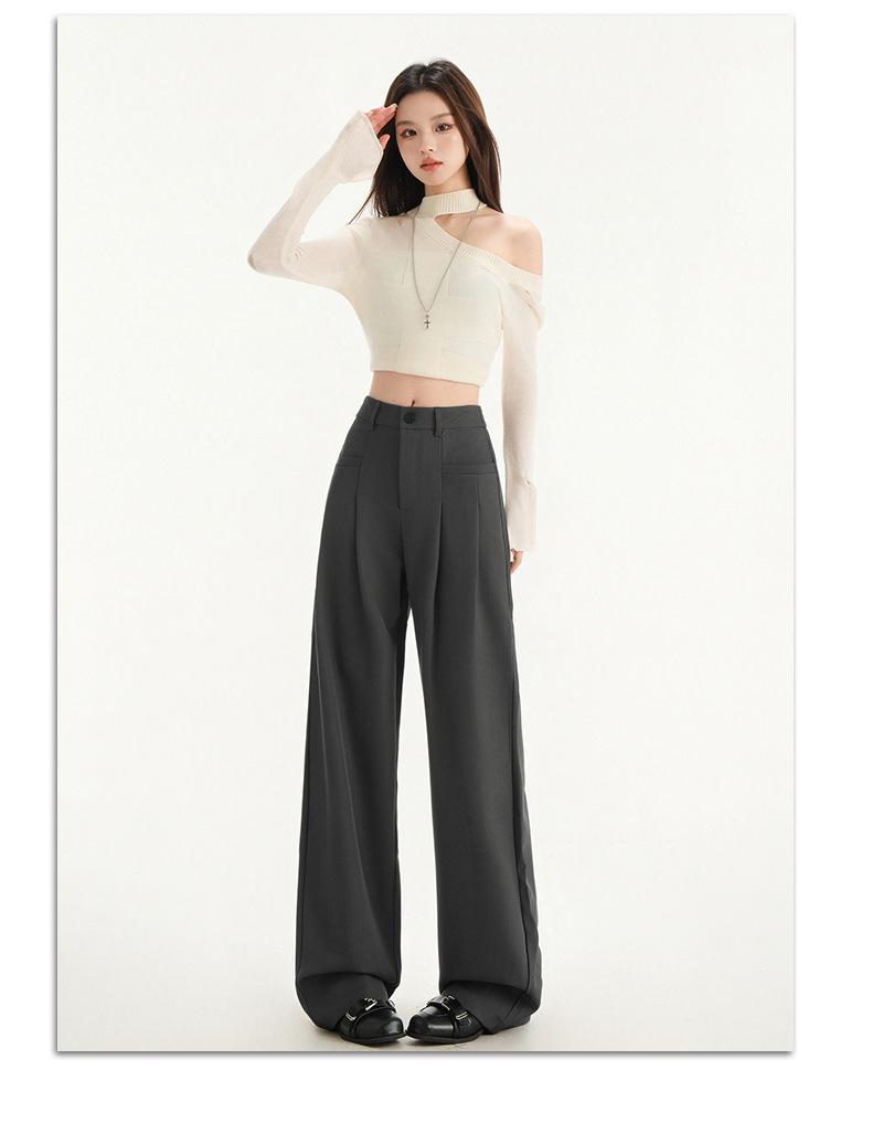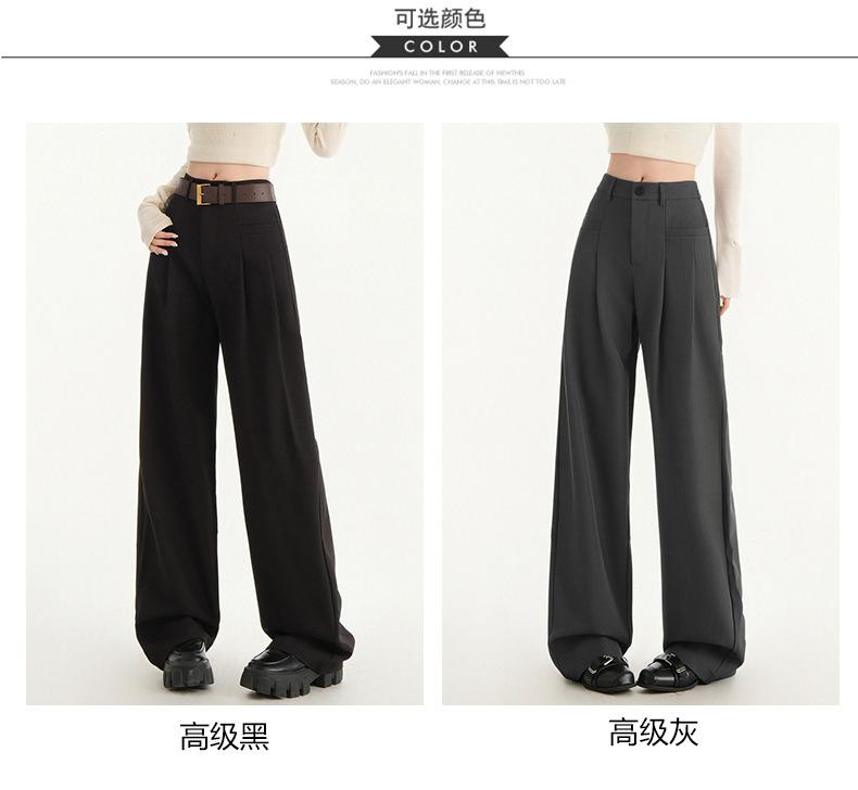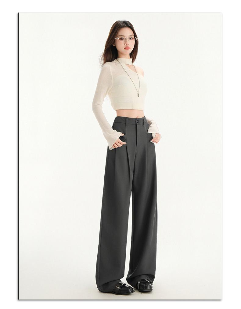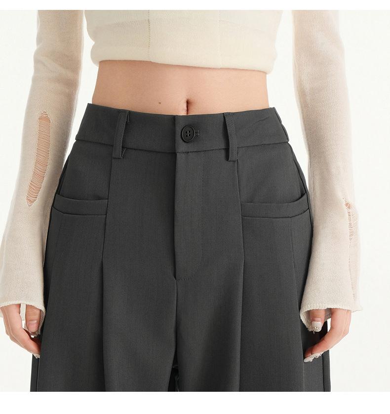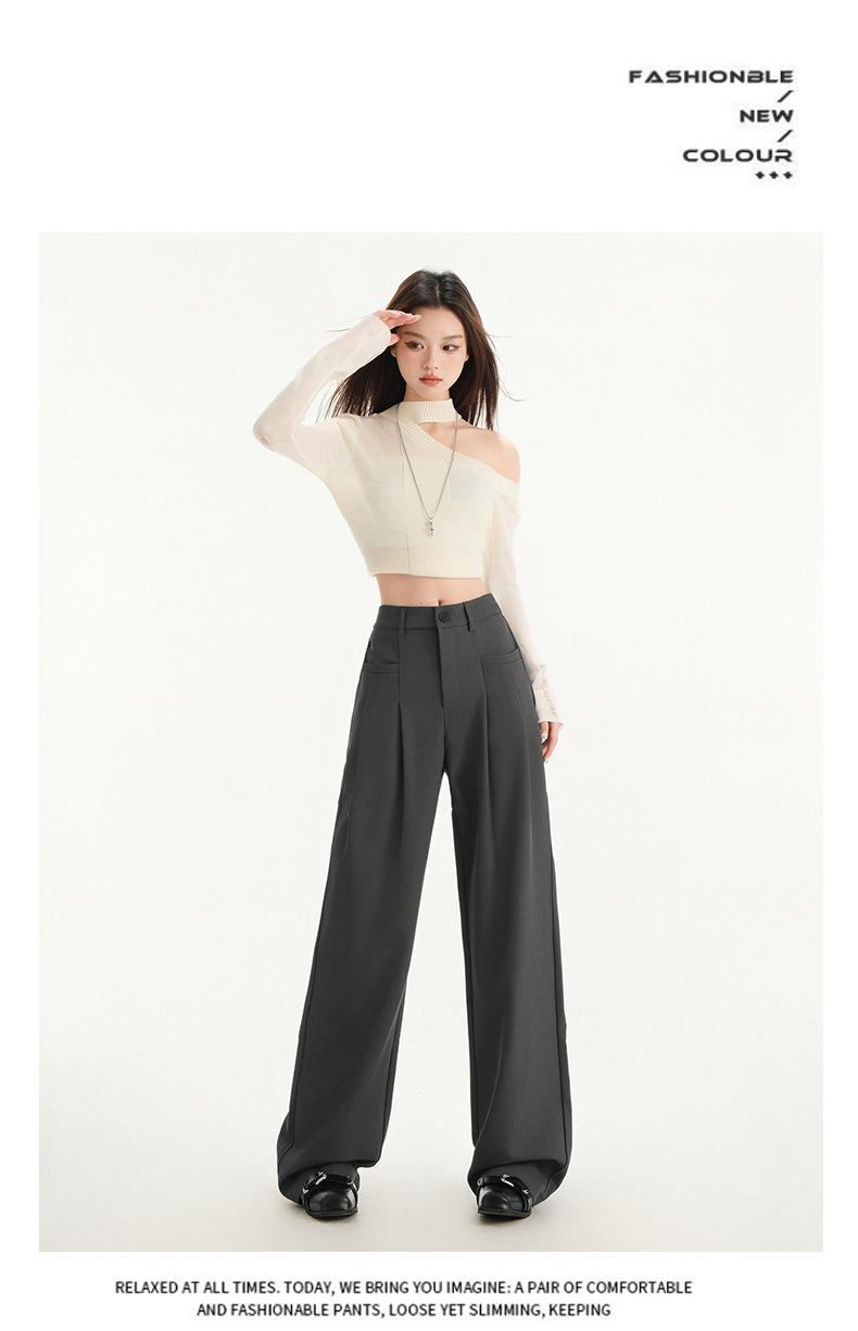 Pantalones de traje gris de alta gama para mujer, pantalones drapeados de primavera y verano 2025, nuevos pantalones rectos pequeños, pantalones de pierna ancha estrechos