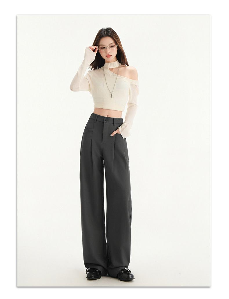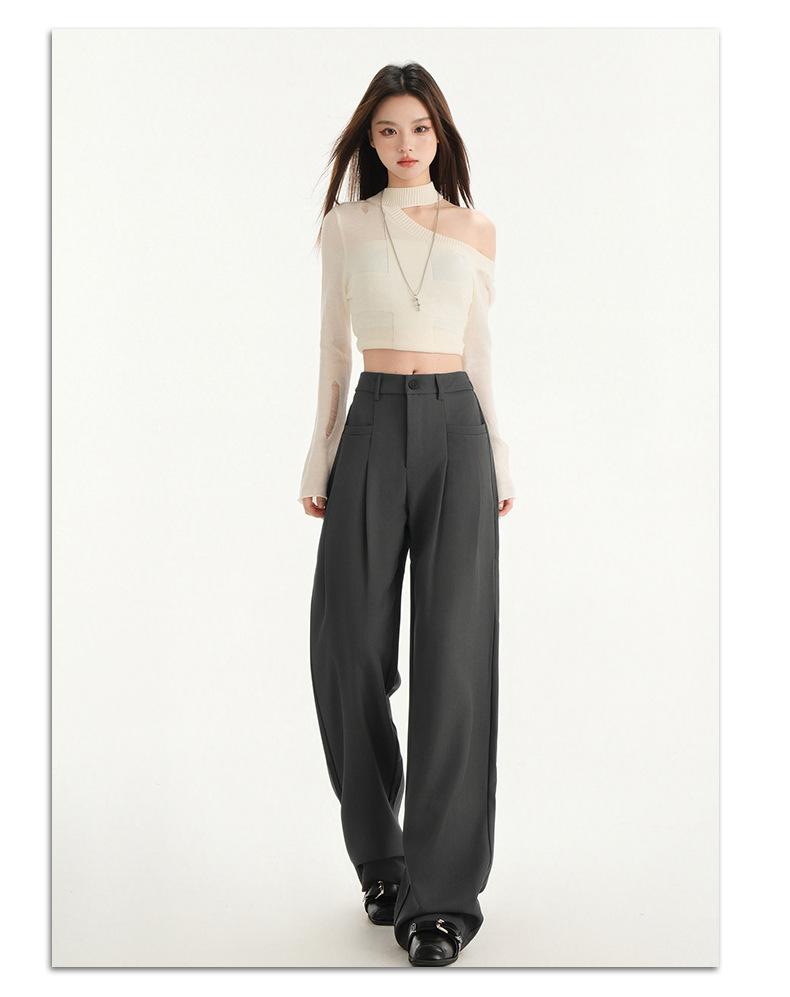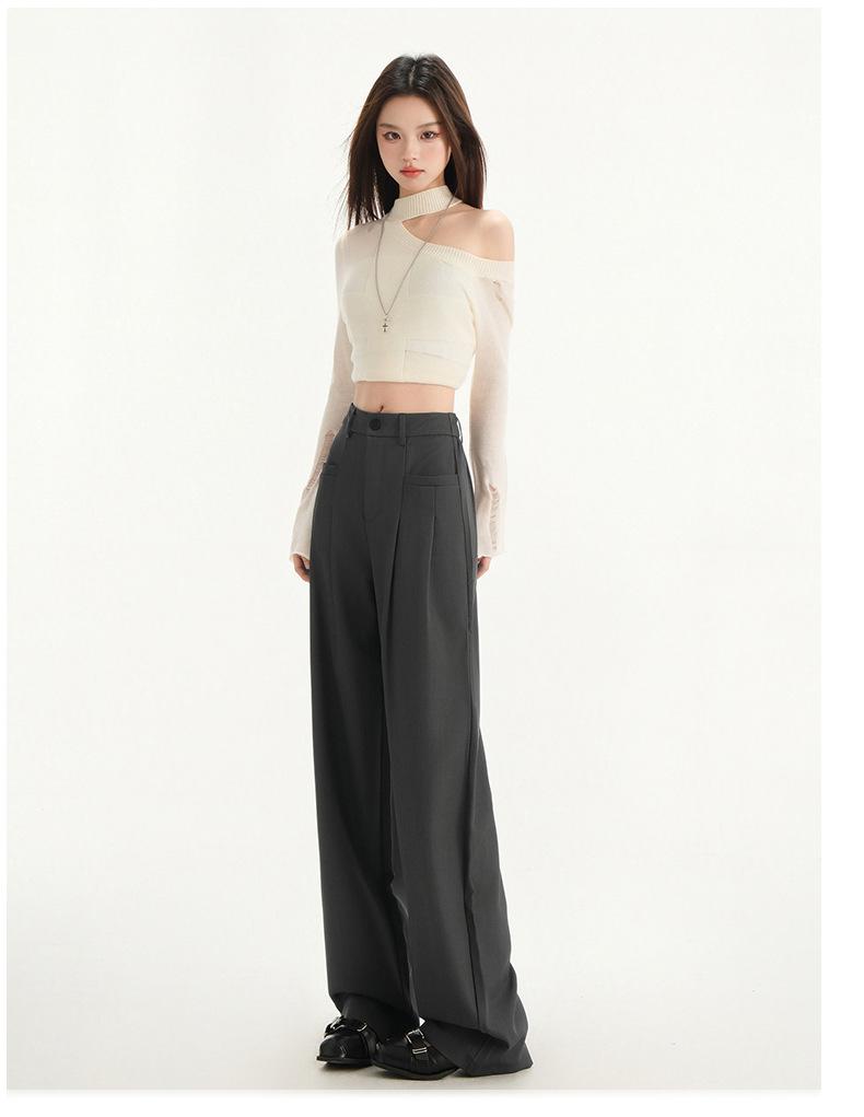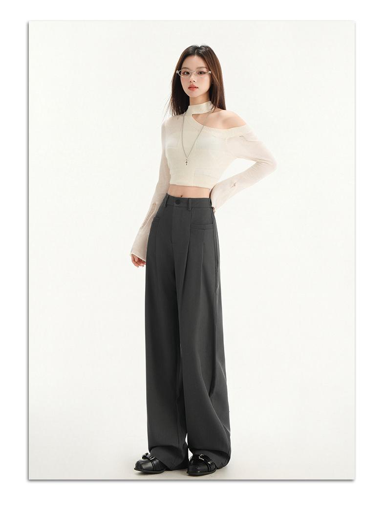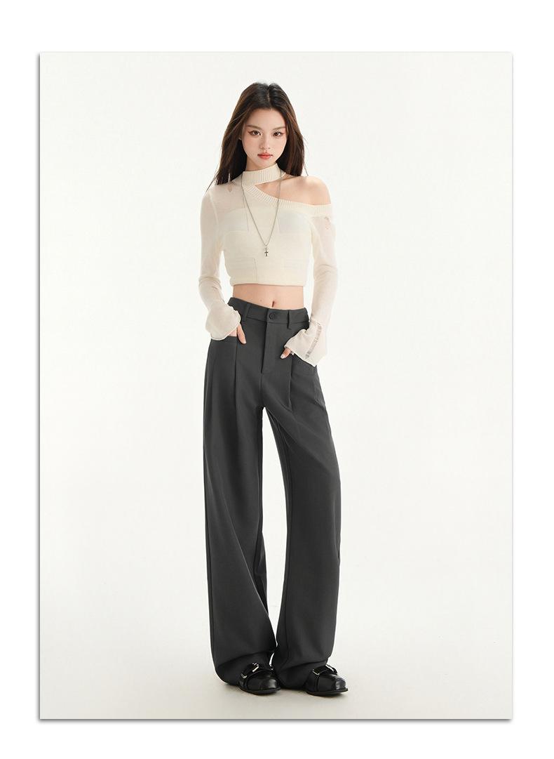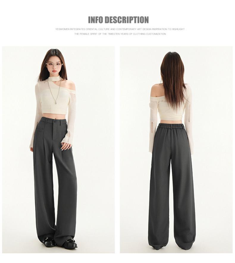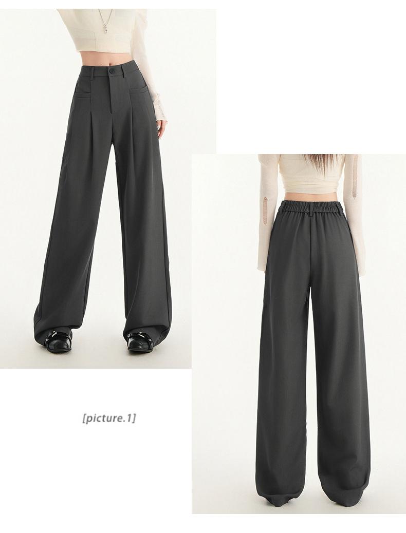 Pantalones de traje gris de alta gama para mujer, pantalones drapeados de primavera y verano 2025, nuevos pantalones rectos pequeños, pantalones de pierna ancha estrechos