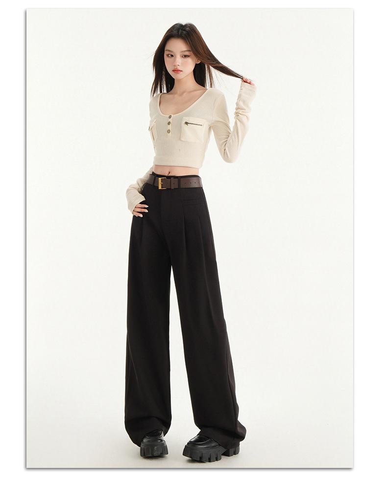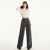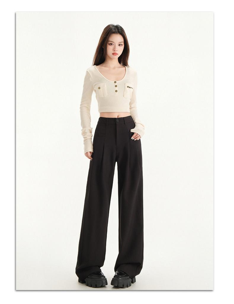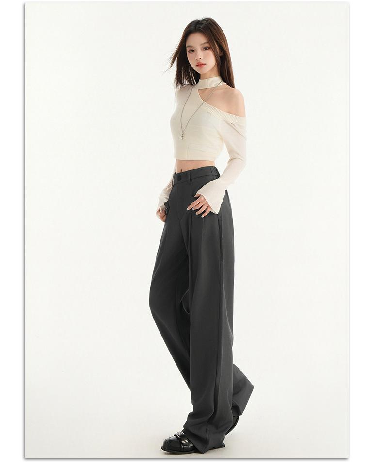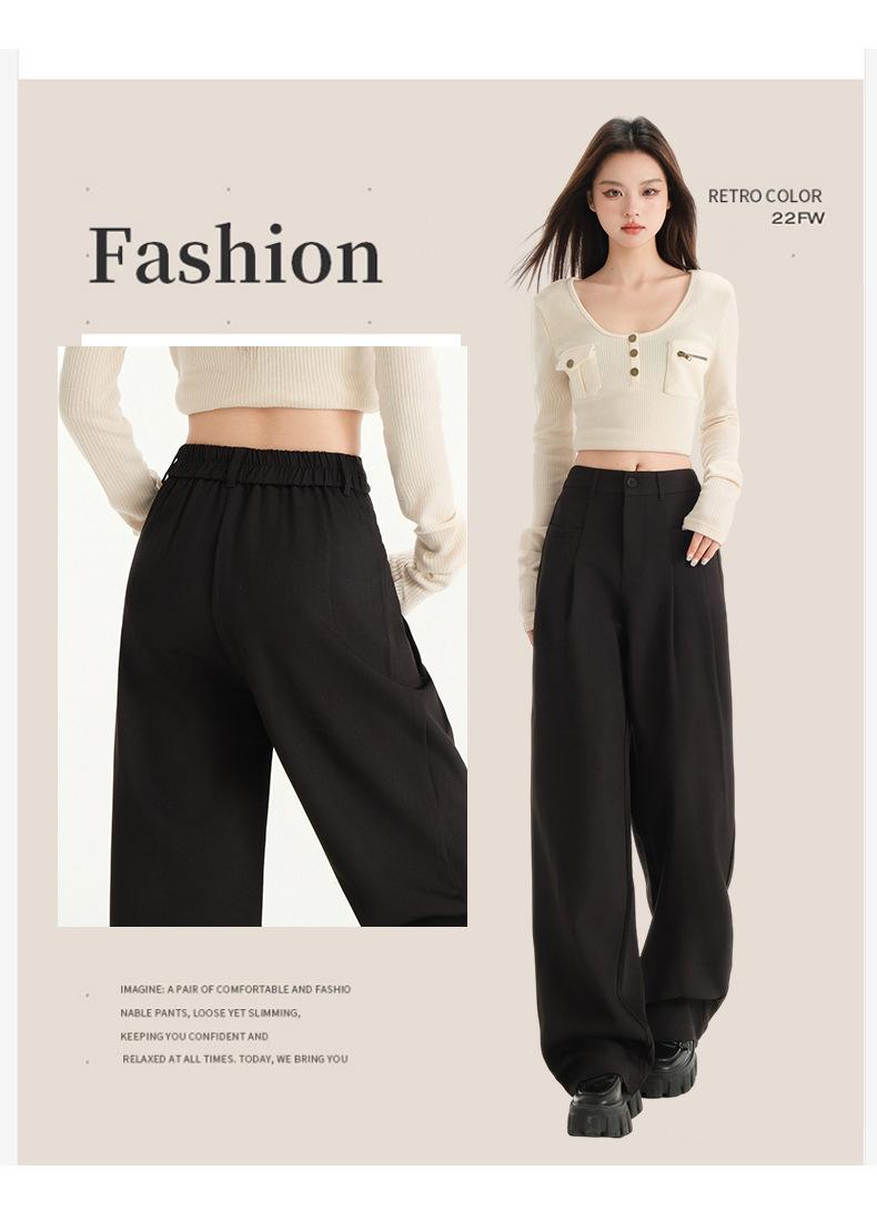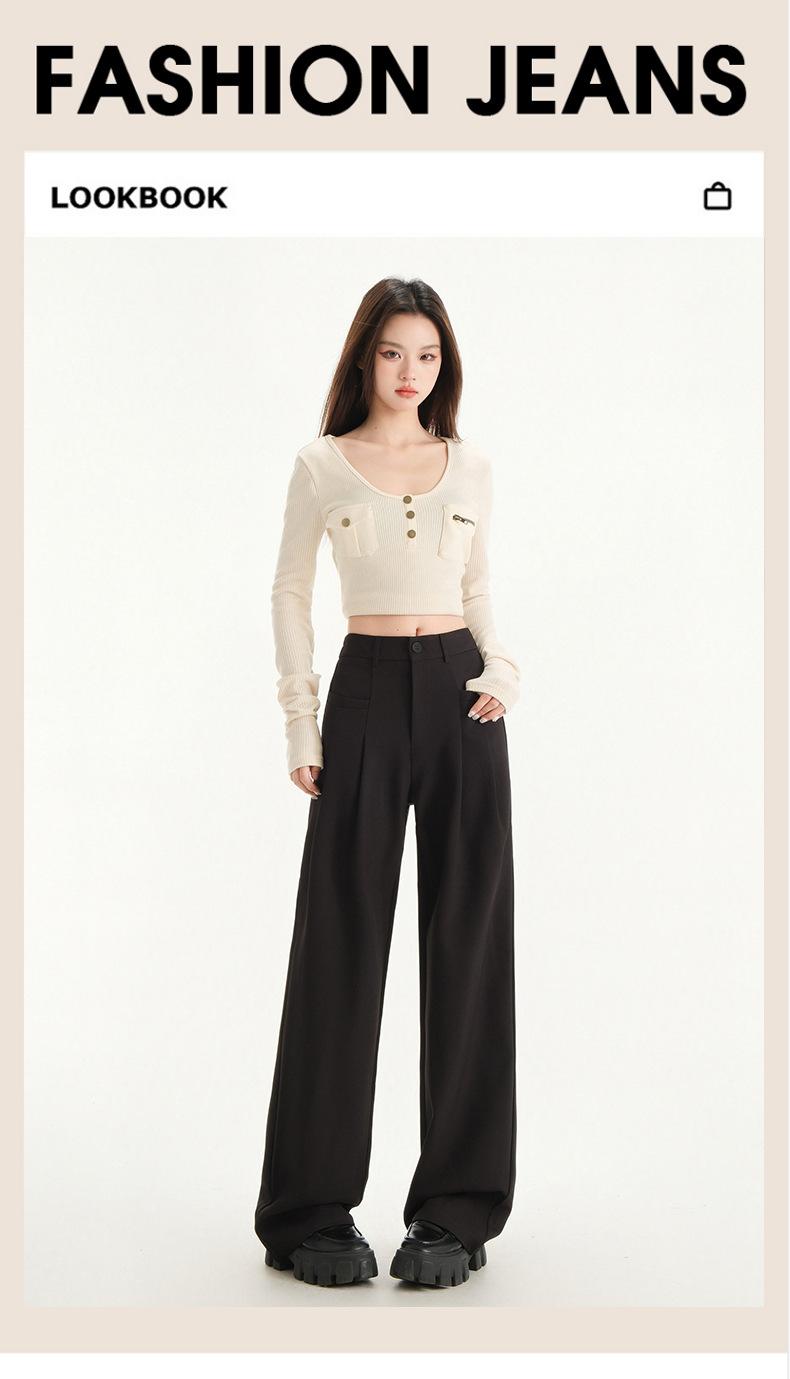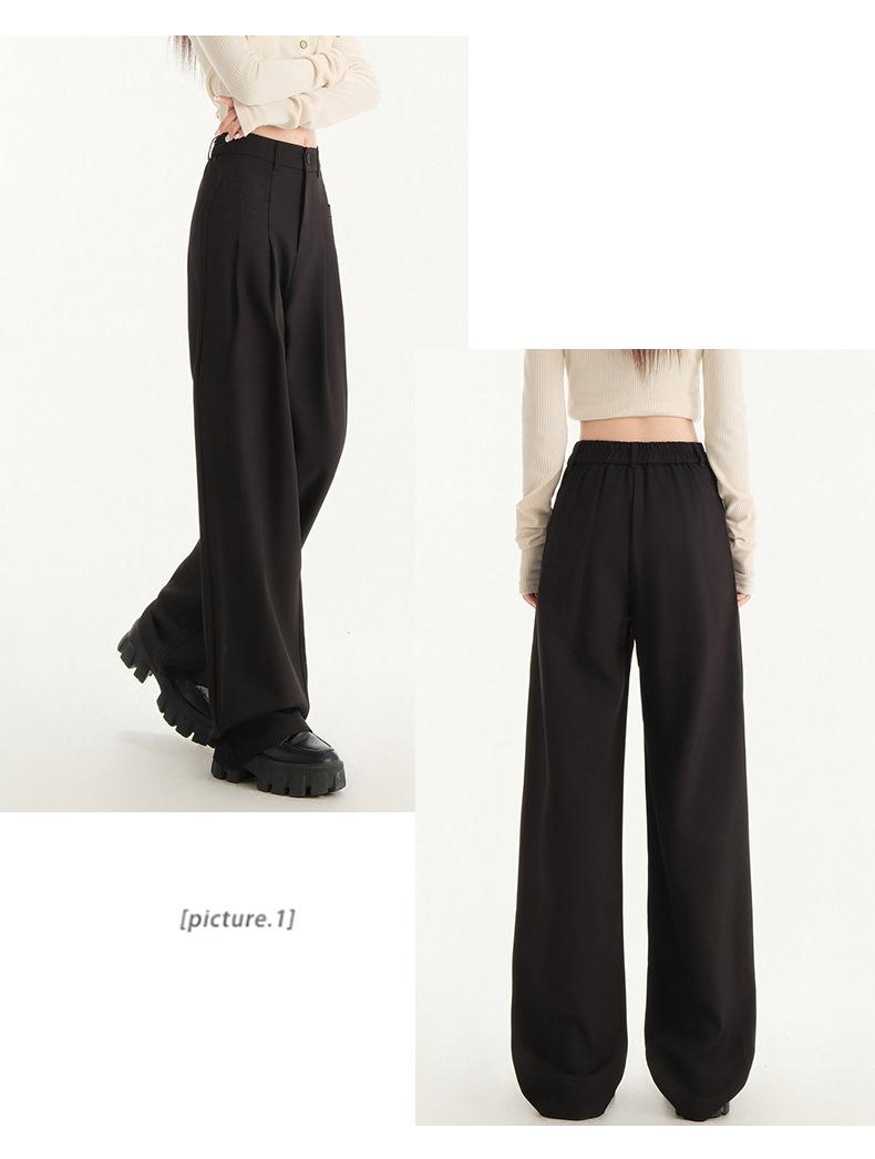 Pantalones de traje gris de alta gama para mujer, pantalones drapeados de primavera y verano 2025, nuevos pantalones rectos pequeños, pantalones de pierna ancha estrechos