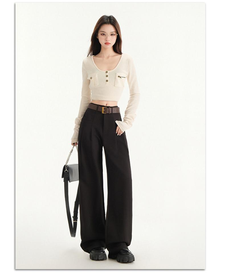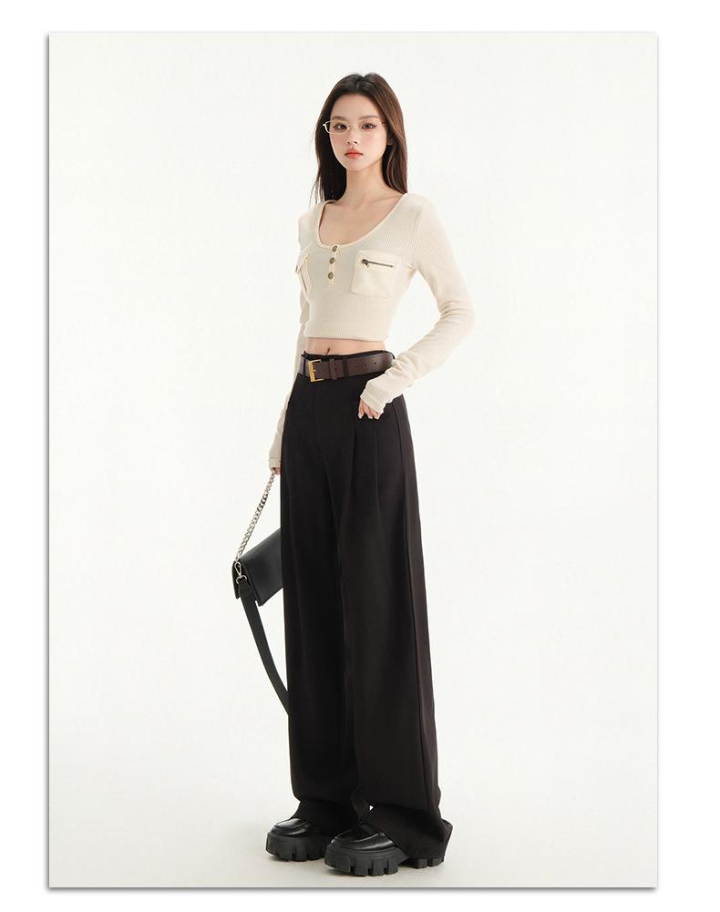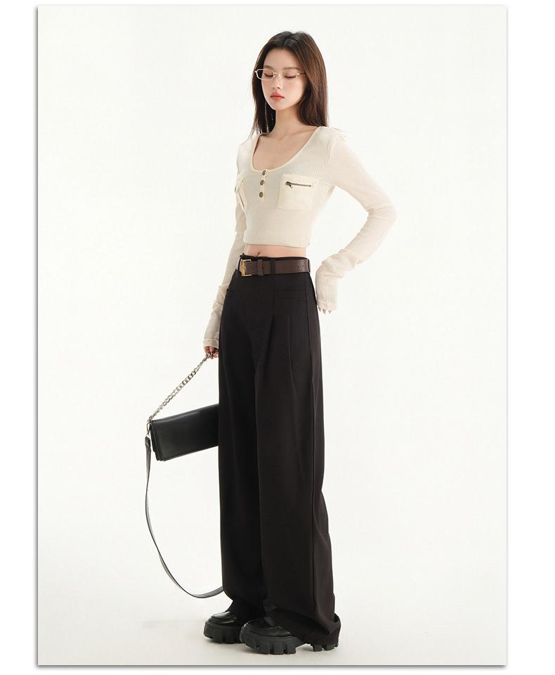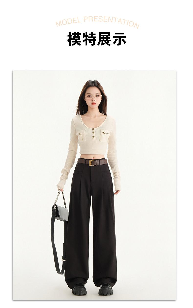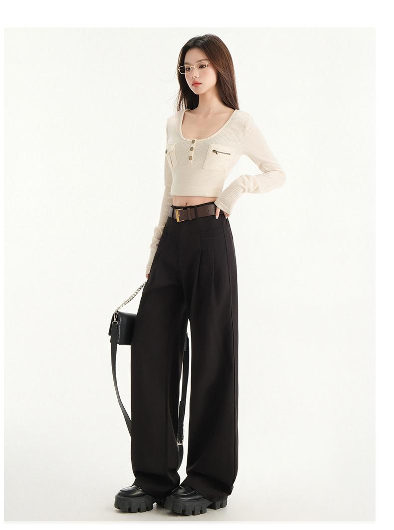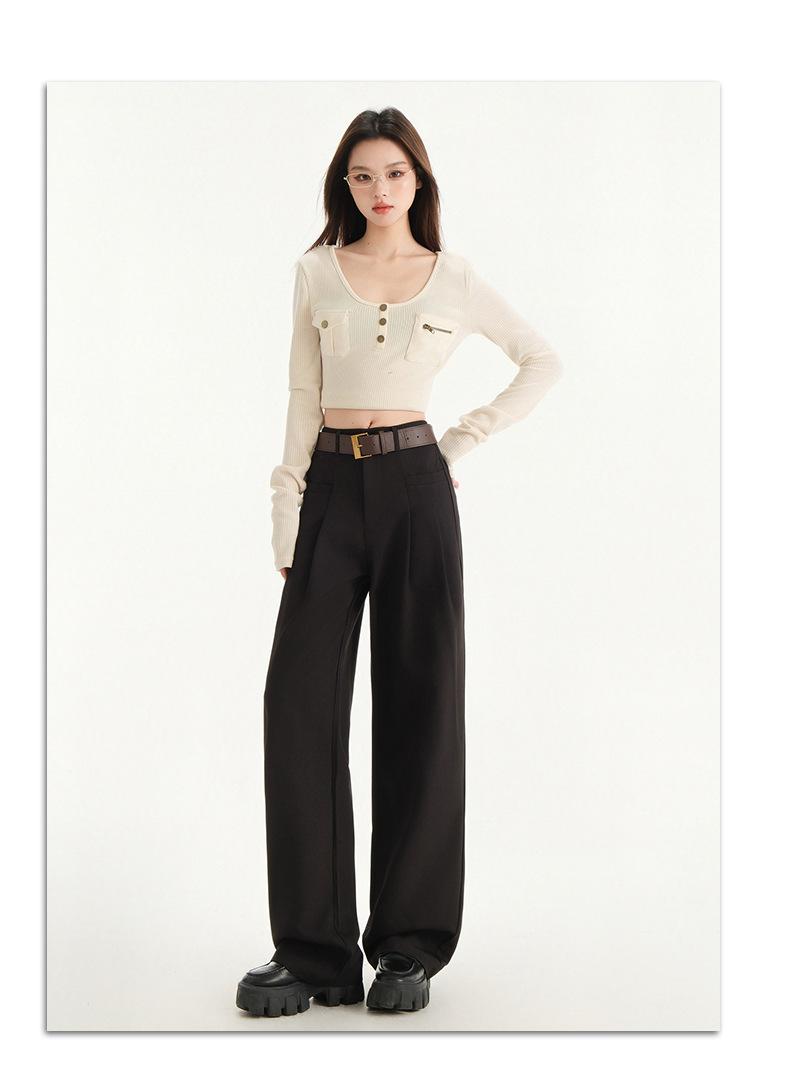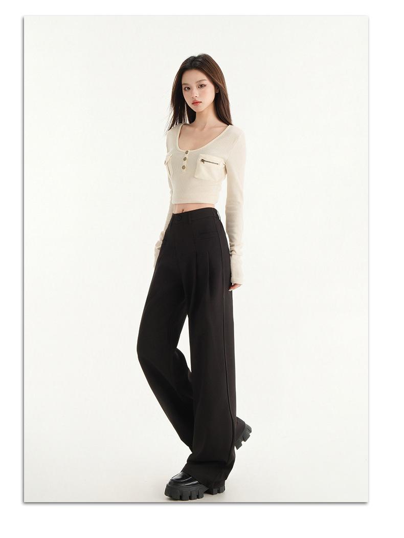 Pantalones de traje gris de alta gama para mujer, pantalones drapeados de primavera y verano 2025, nuevos pantalones rectos pequeños, pantalones de pierna ancha estrechos