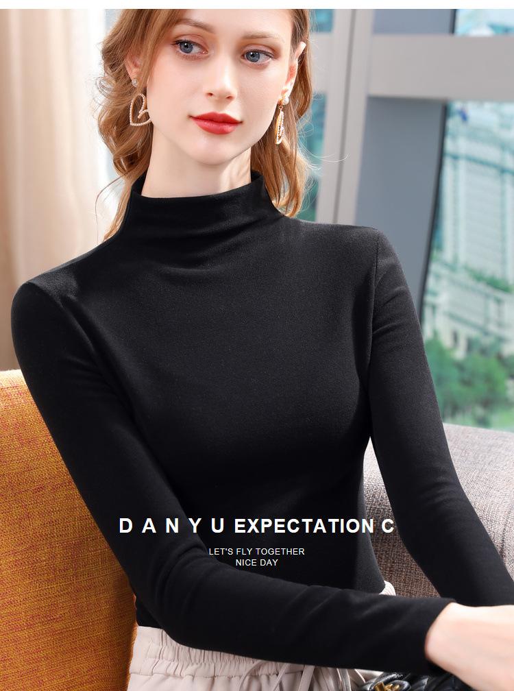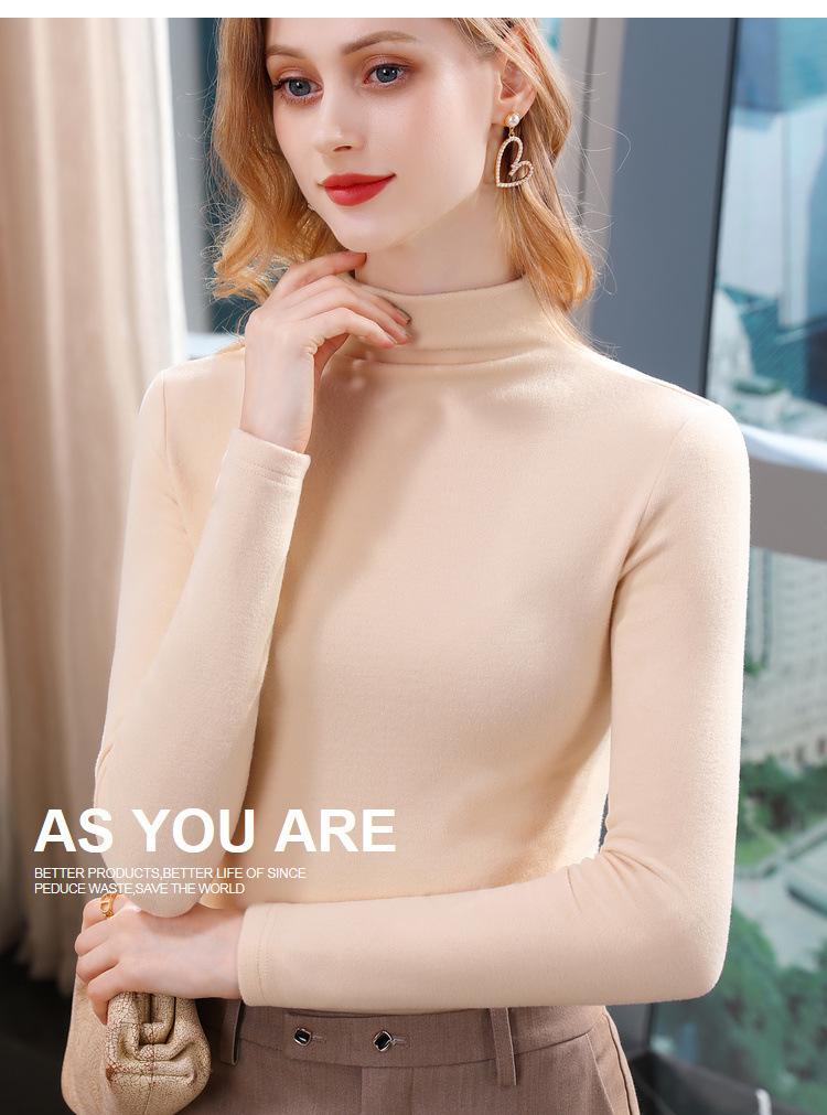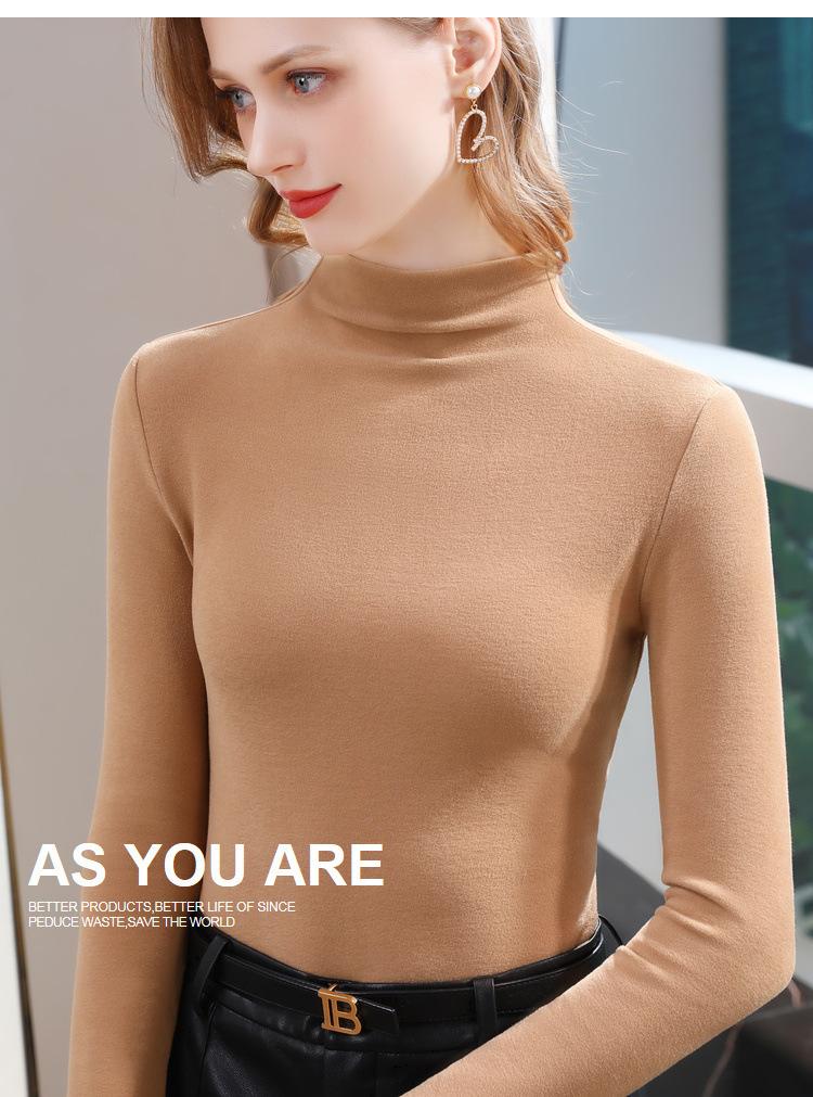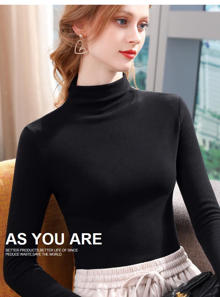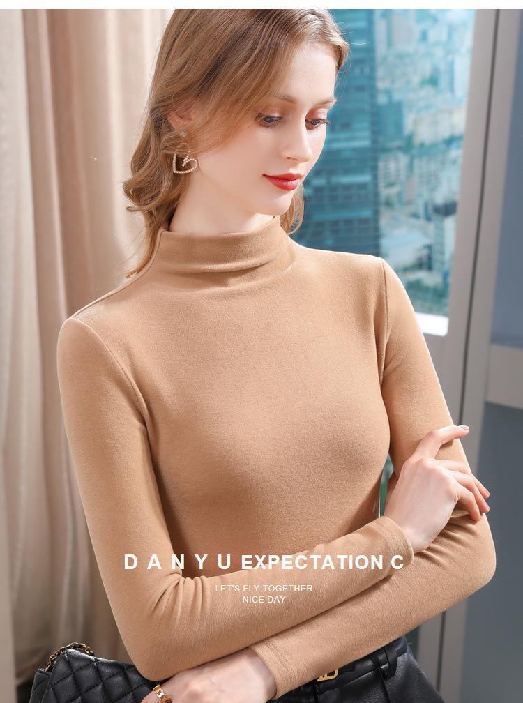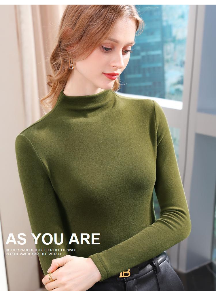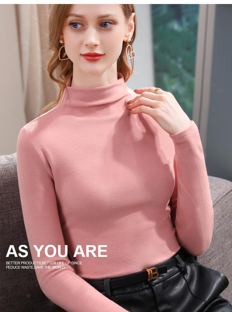 Camiseta de Fondo de Terciopelo Alto de Doble Cara con Cuello Medio Tortuga para Mujer, Camiseta de Manga Larga Cálida y Gruesa de Moda Otoño e Invierno 2022