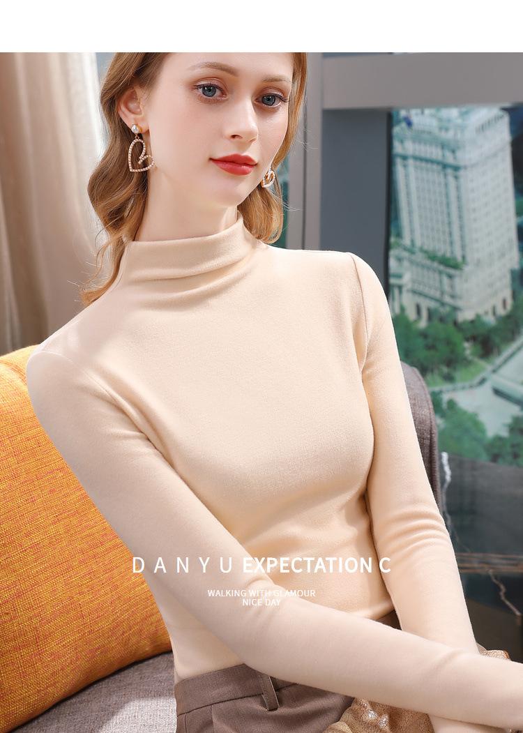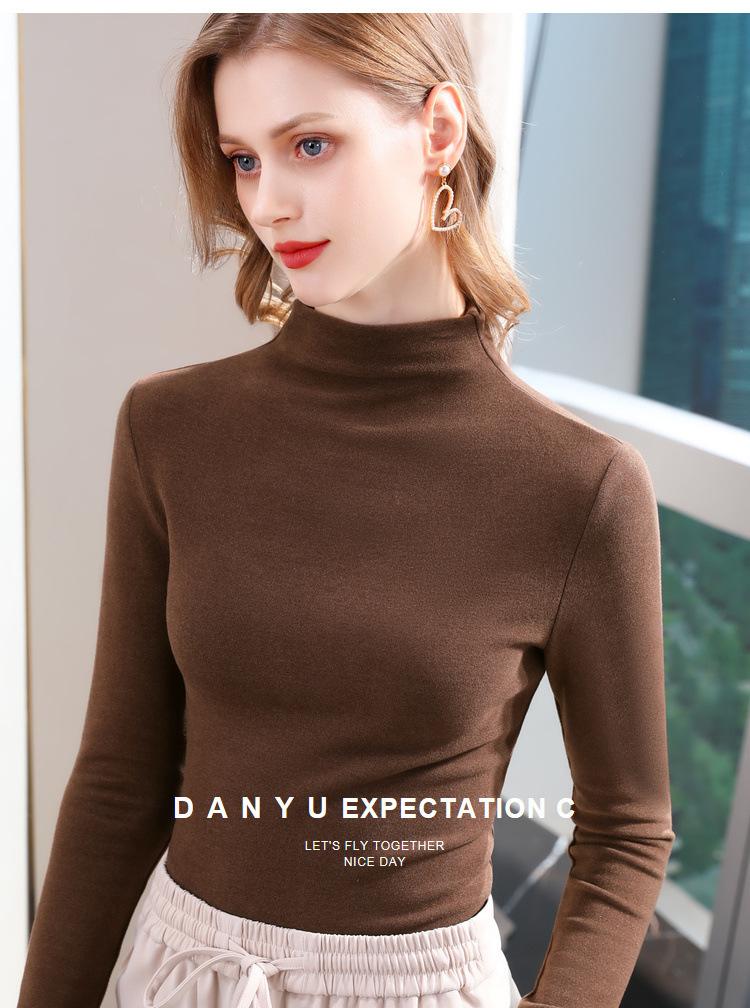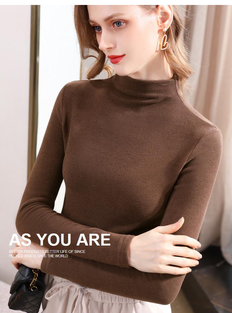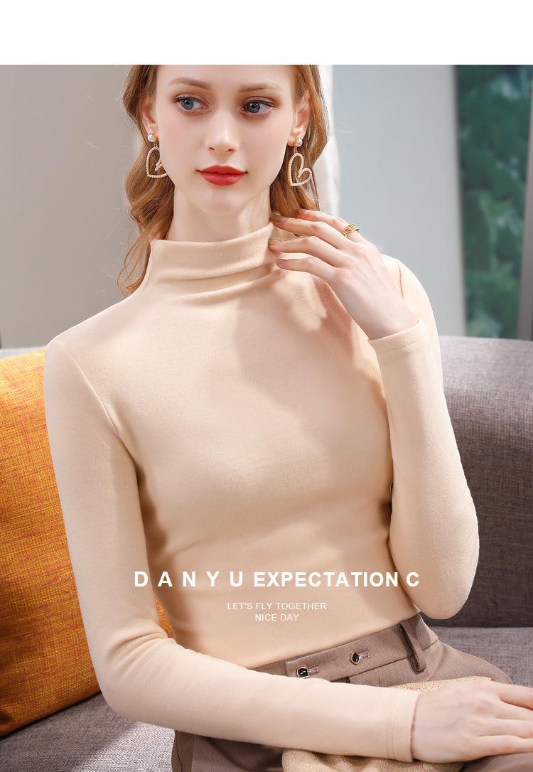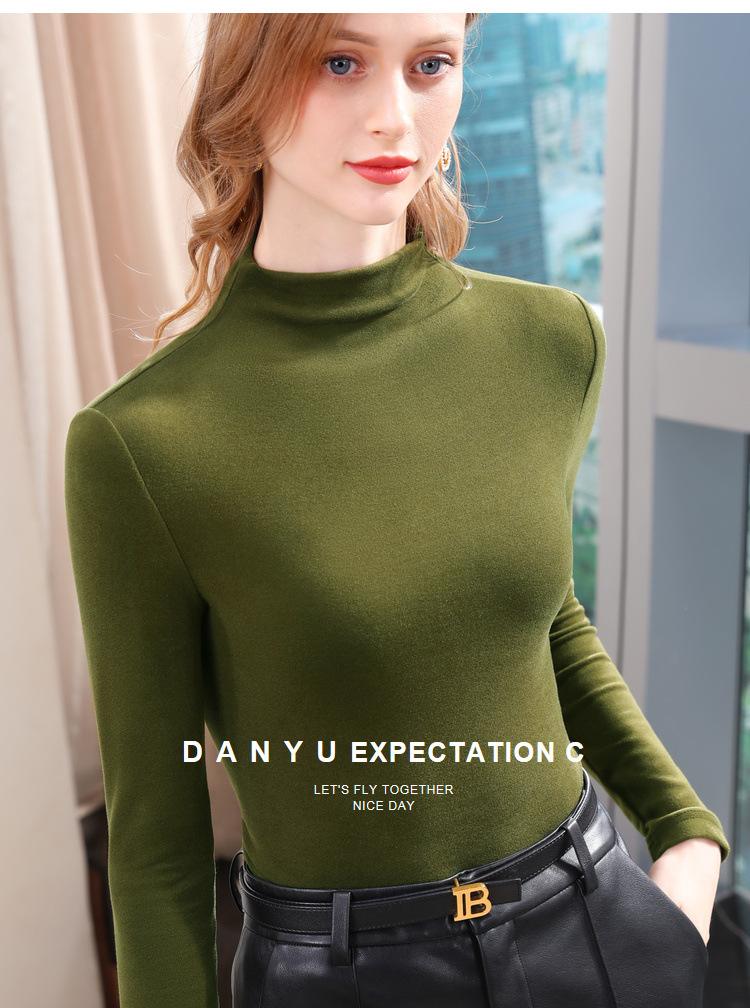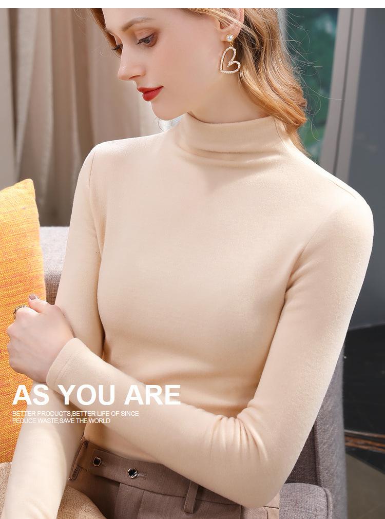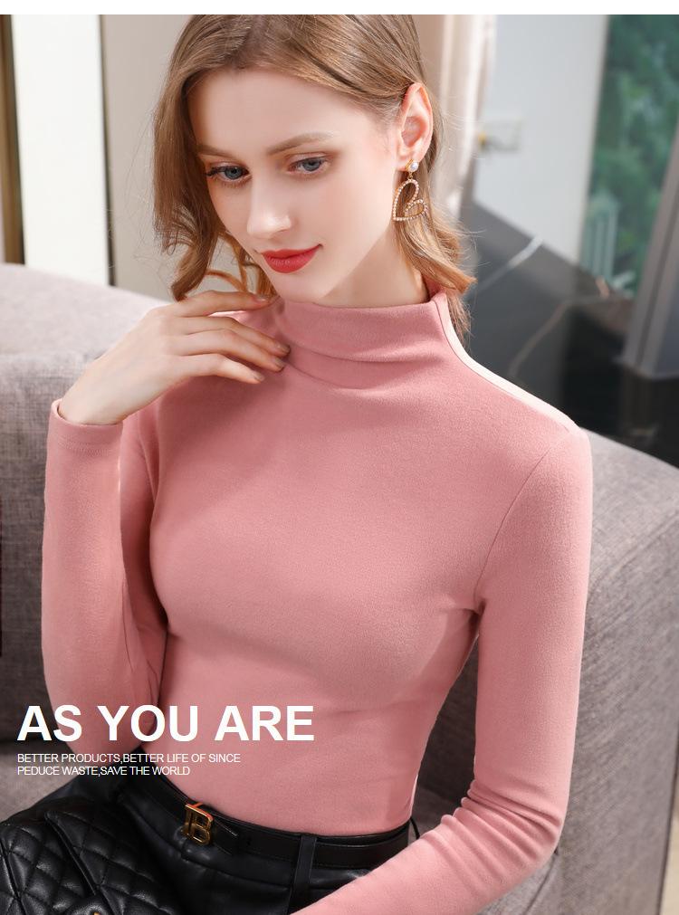 Camiseta de Fondo de Terciopelo Alto de Doble Cara con Cuello Medio Tortuga para Mujer, Camiseta de Manga Larga Cálida y Gruesa de Moda Otoño e Invierno 2022