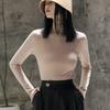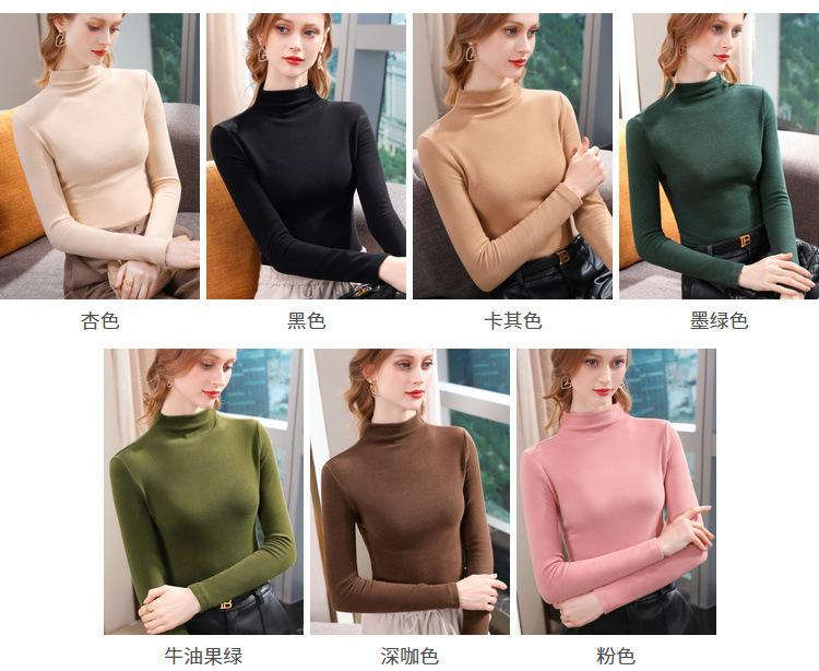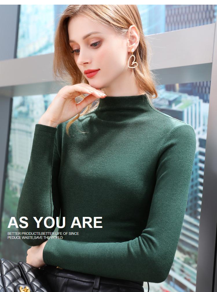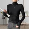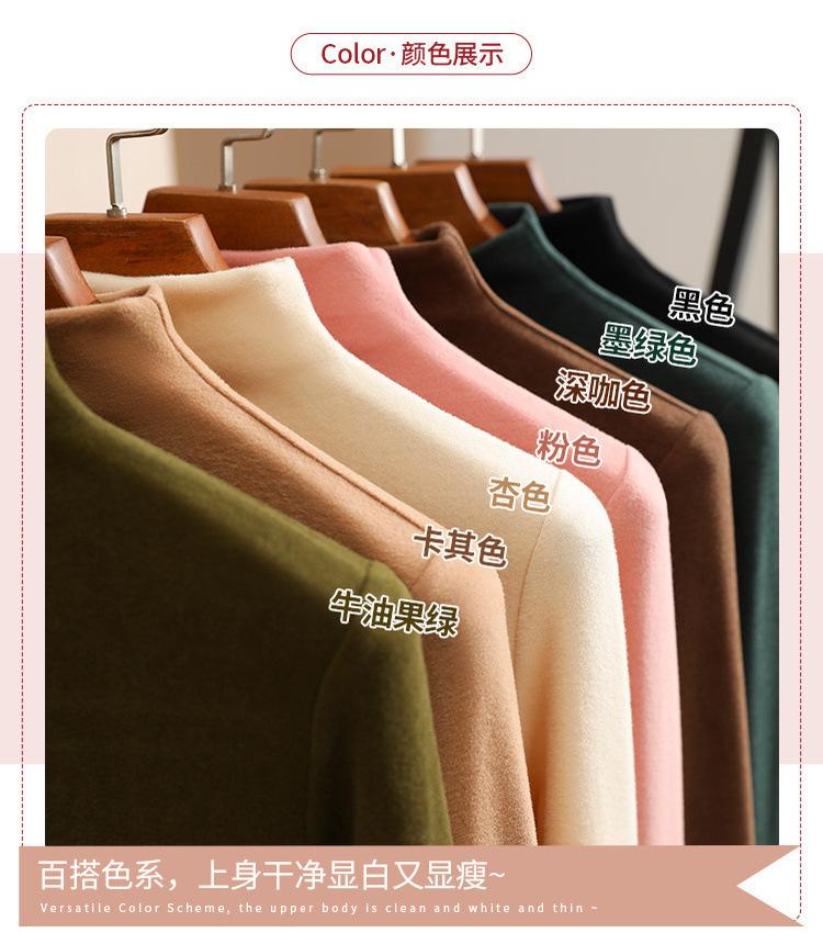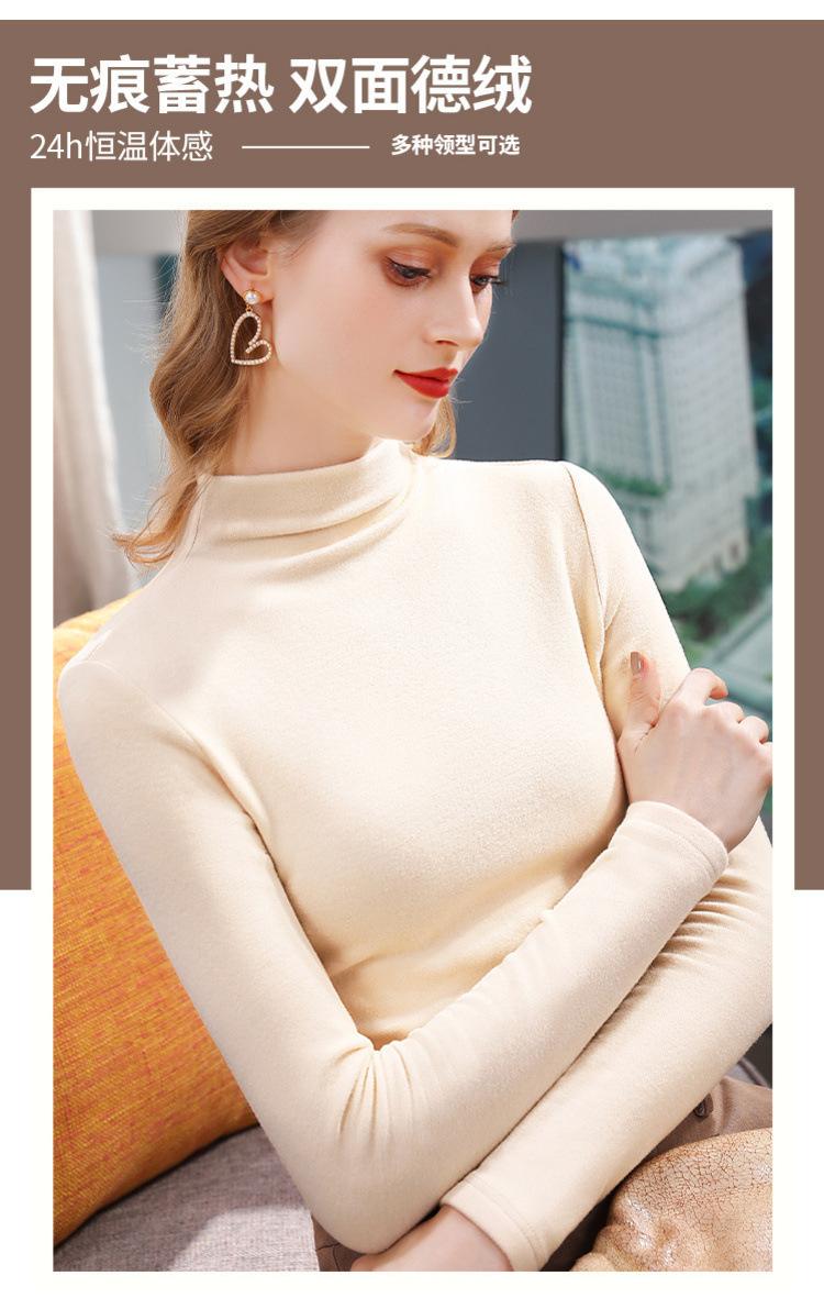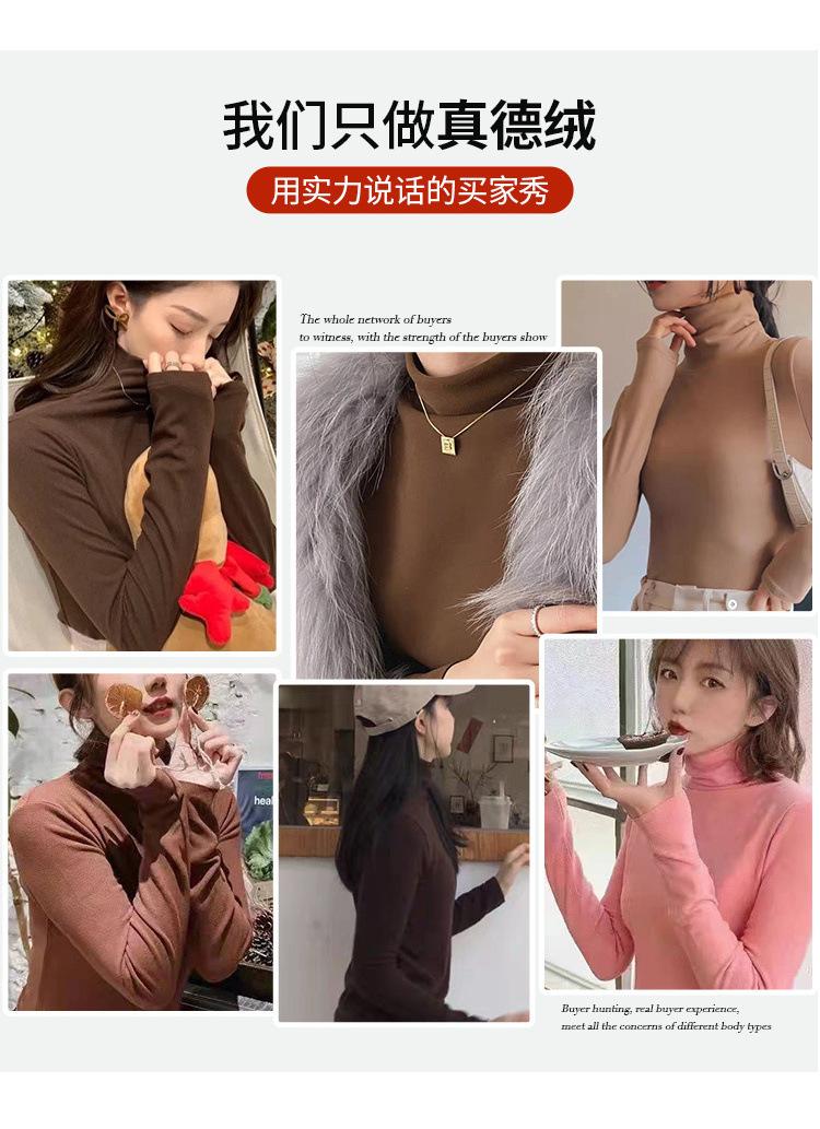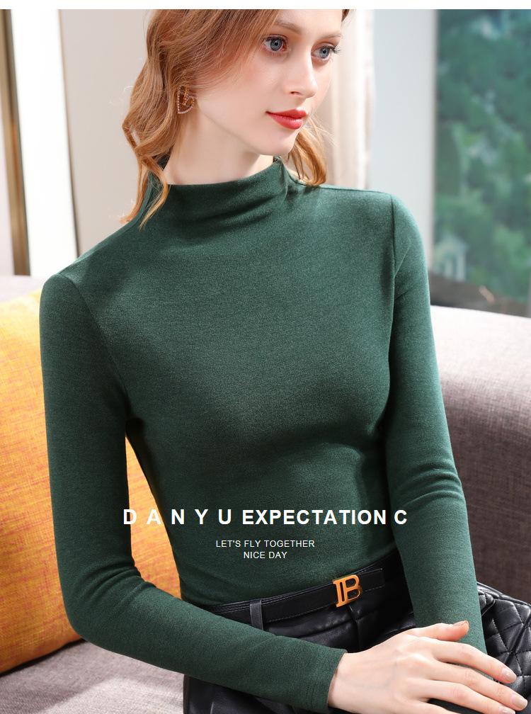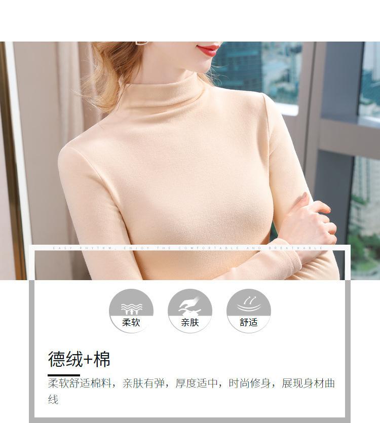 Camiseta de Fondo de Terciopelo Alto de Doble Cara con Cuello Medio Tortuga para Mujer, Camiseta de Manga Larga Cálida y Gruesa de Moda Otoño e Invierno 2022