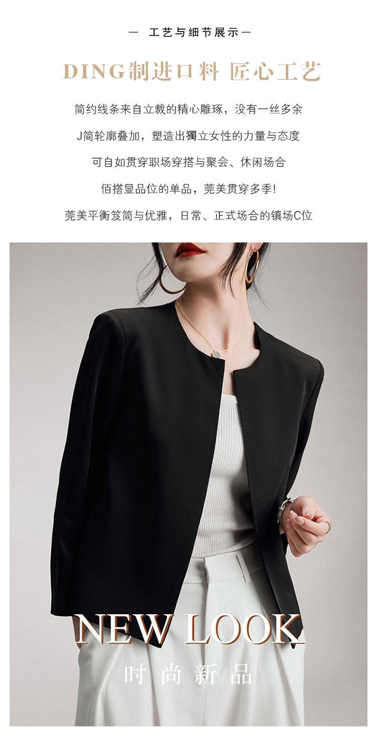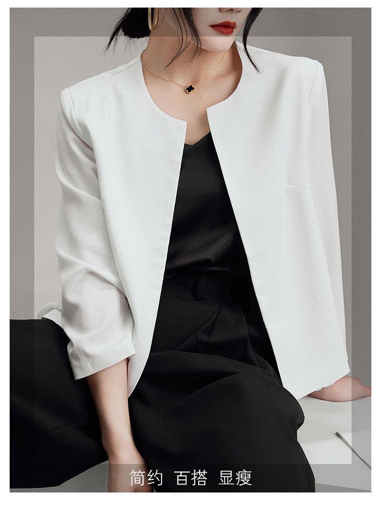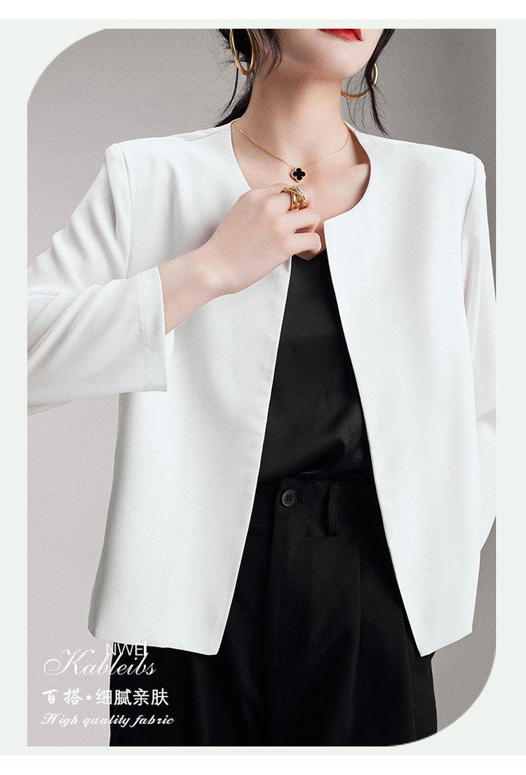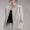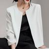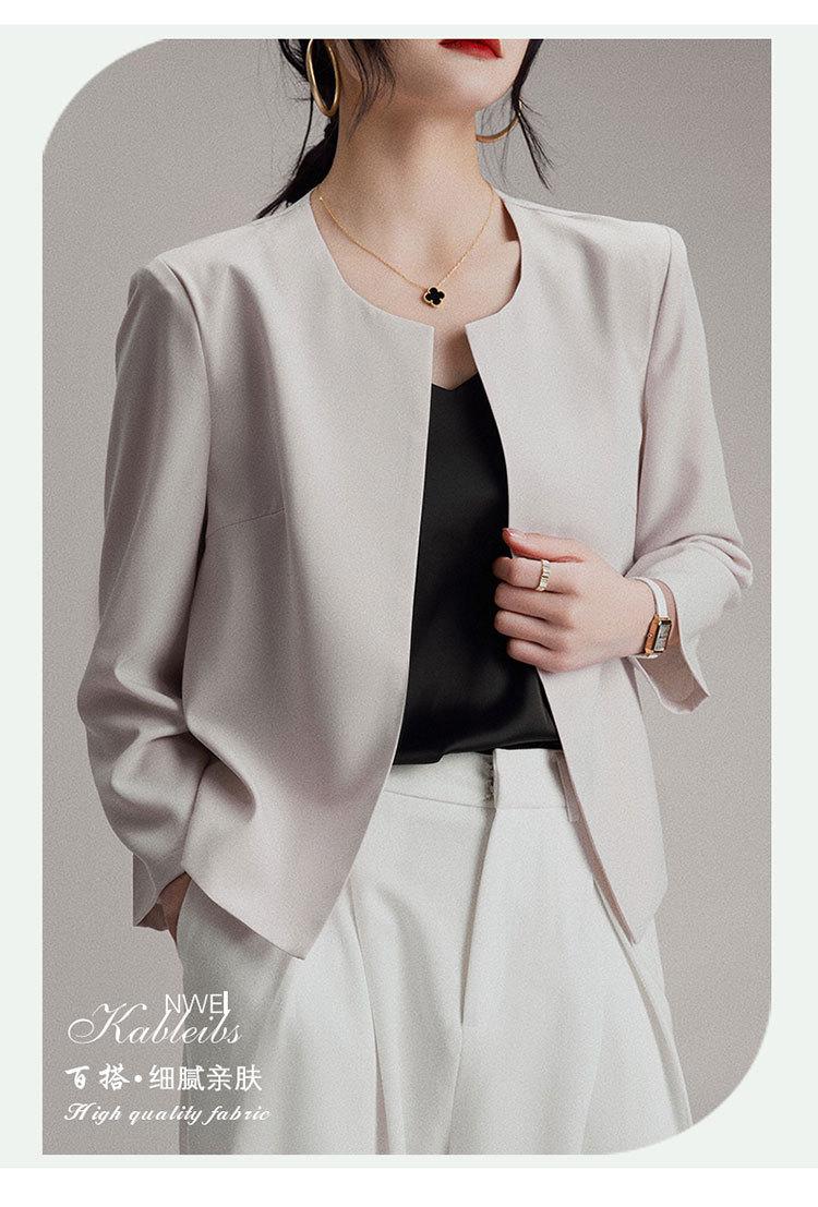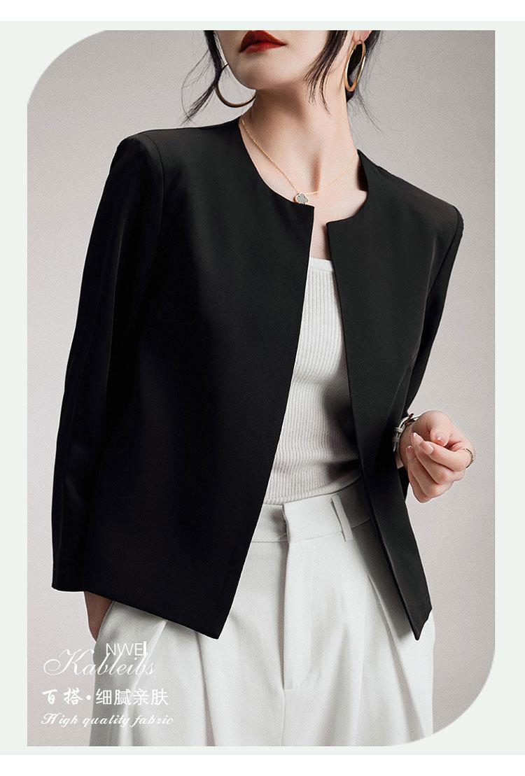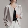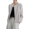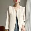 2025 Primavera y Verano Nuevo Traje Pequeño de Color Sólido con Cuello Redondo de Manga Larga para Mujer Color Sólido Suelto Combinable Chaqueta Top sin Hebilla