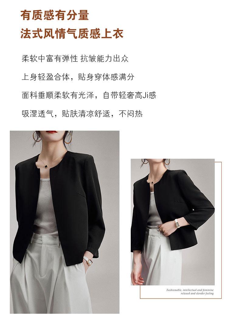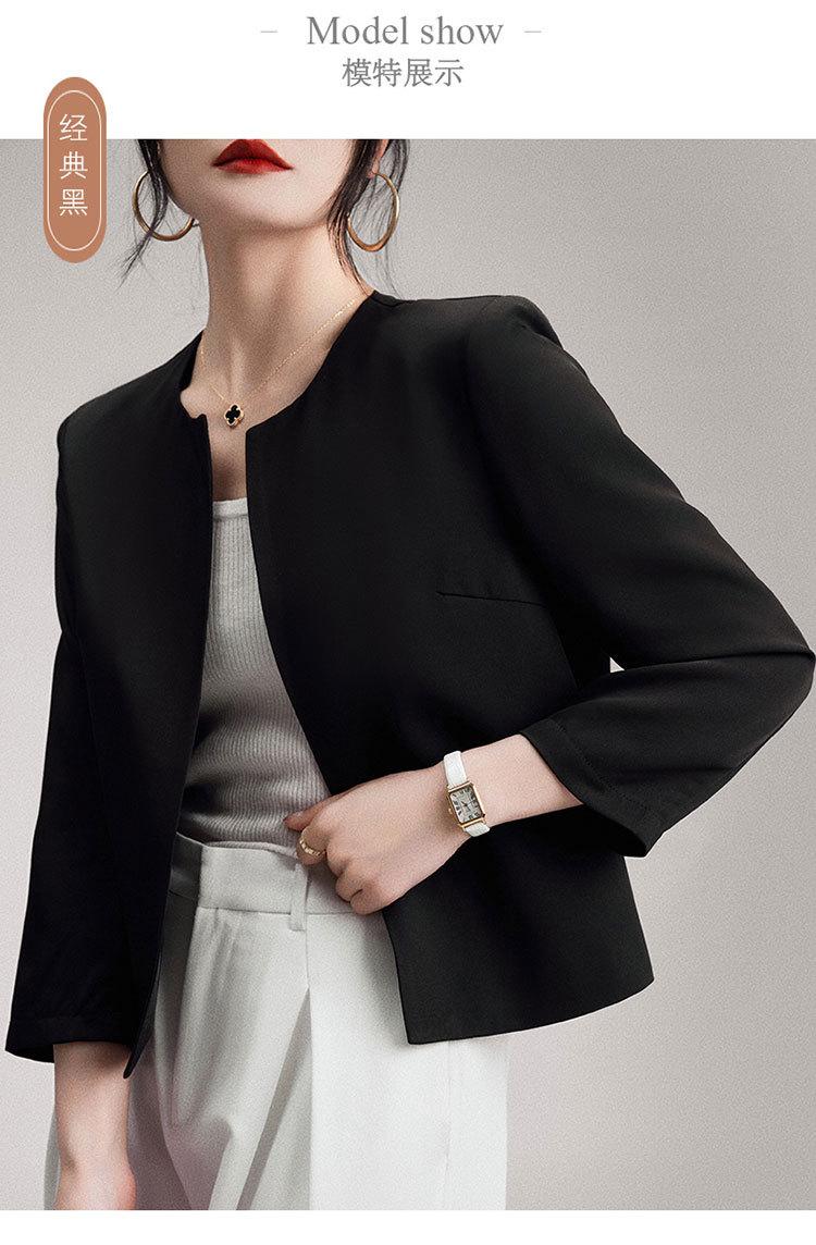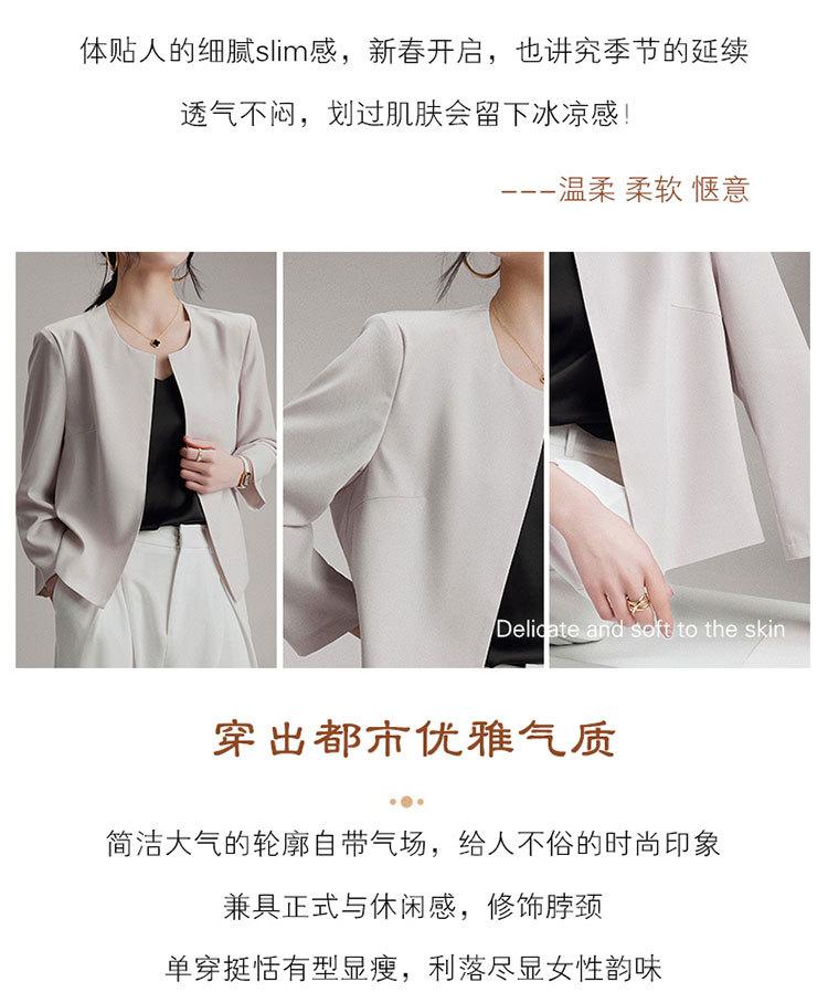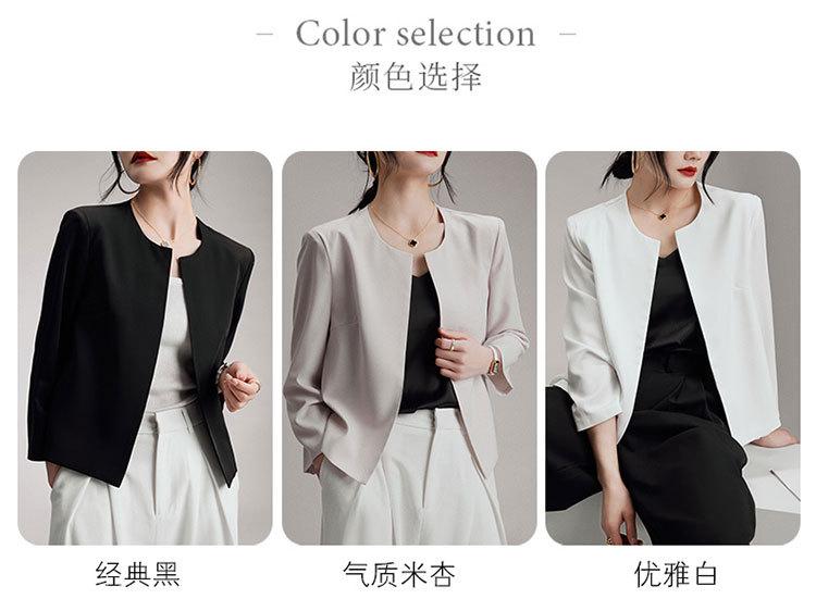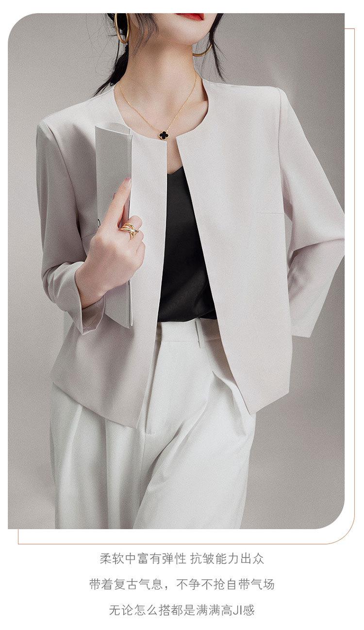 2025 Primavera y Verano Nuevo Traje Pequeño de Color Sólido con Cuello Redondo de Manga Larga para Mujer Color Sólido Suelto Combinable Chaqueta Top sin Hebilla